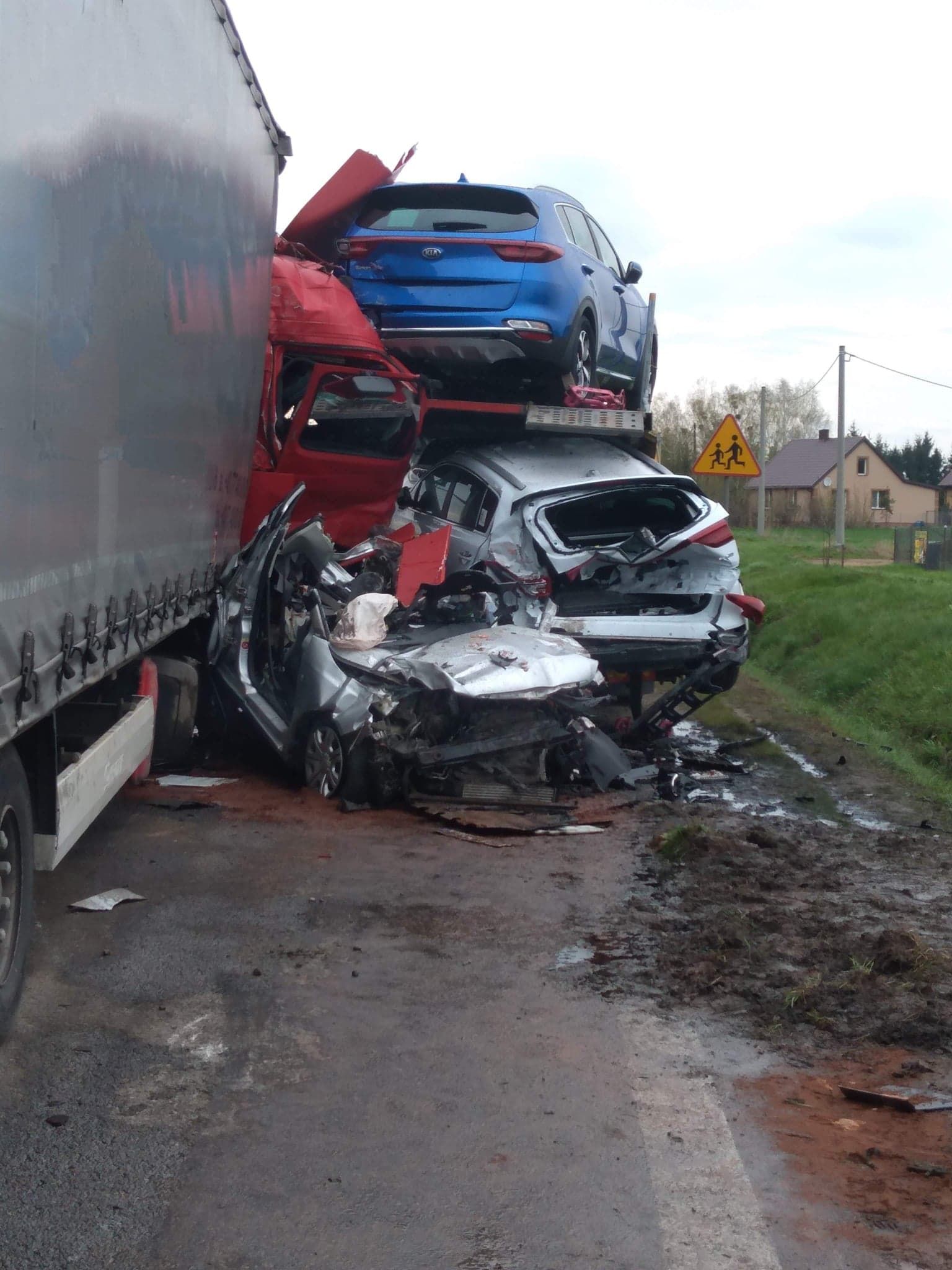 5 maja 2021 roku o godzinie 14:18 Stanowisko Kierowania Komendanta Miejskiego PSP w Łomży otrzymało zgłoszenie o zderzeniu samochodu ciężarowego z osobowym na drodze krajowej nr 61 w miejscowości Kisielnica, gmina Piątnica. Po dojeździe na miejsce zdarzenia zastępów straży pożarnej okazało się, że samochód ciężarowy z ogromną siłą uderzył w samochód osobowy, który wjechał w kolejny samochód ciężarowy z lawetą przewożącą nowe auta.