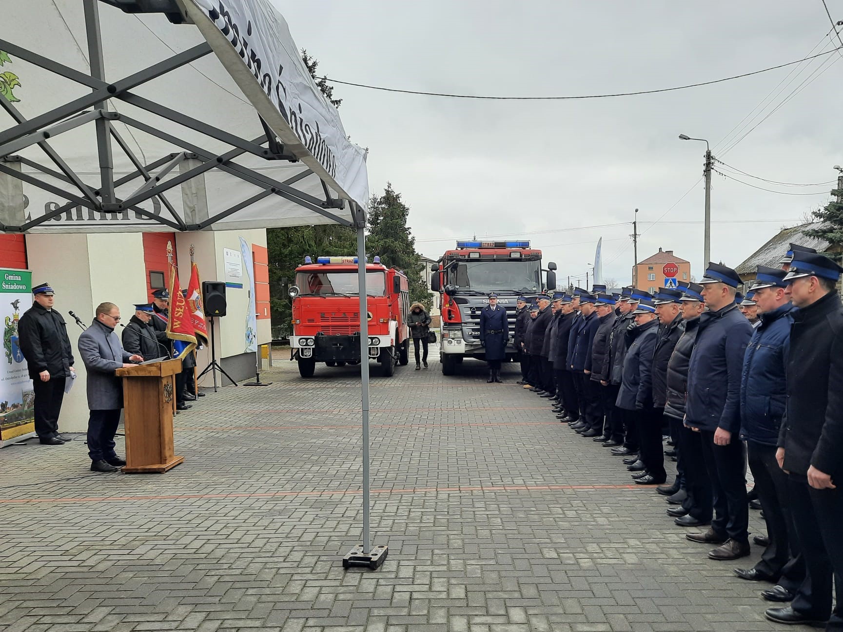 26 lutego 2023 roku na placu przed remizą Ochotniczej Straży Pożarnej w Śniadowie odbyła się uroczystość przekazania dwóch samochodów pożarniczych - ciężkiego samochodu ratowniczo-gaśniczego GCBA 5/32 SCANIA z zasobów Komendy Miejskiej PSP w Łomży dla OSP KSRG w Śniadowie oraz średniego samochodu ratowniczo-gaśniczego GBA 2,5/16 STAR z OSP KSRG Śniadowo dla OSP Stare Konopki.