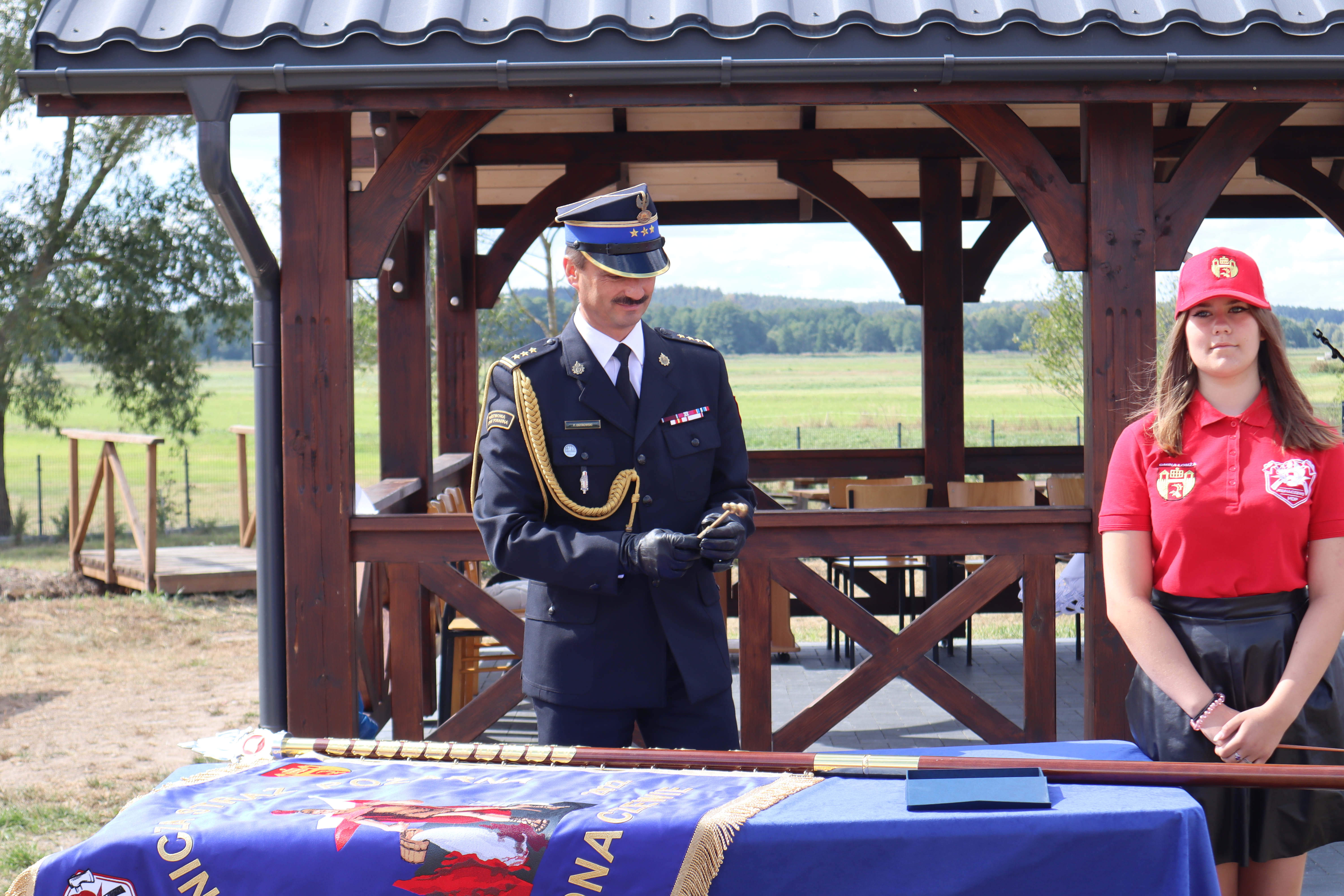 Sztandar i odznaczenie za zasługi dla pożarnictwa otrzymała jednostka Ochotniczej Straży Pożarnej w Jednaczewie z okazji swego 70-lecia podczas uroczystości, które odbyły się 3 września 2022 r.