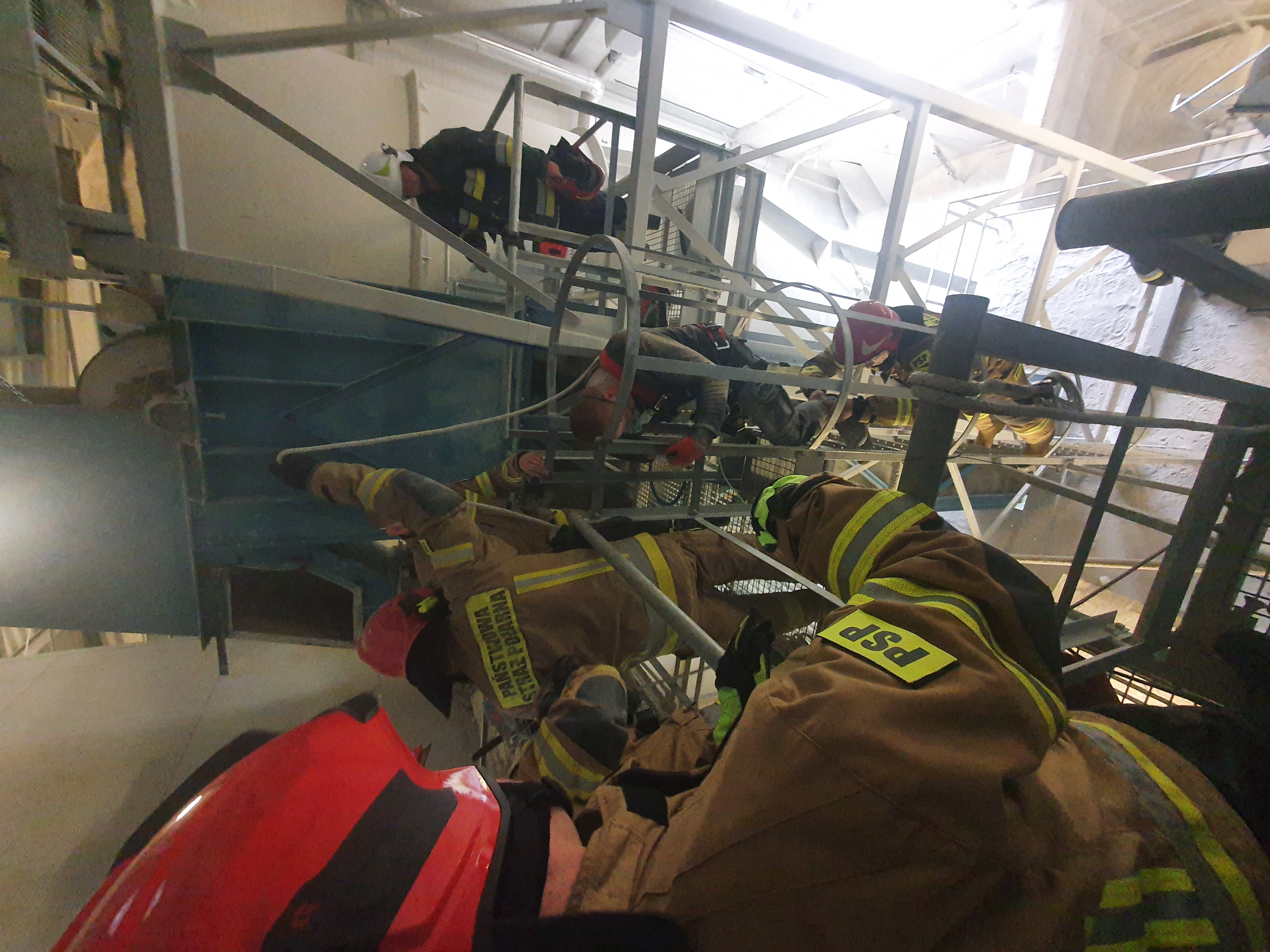 29 września 2022 r. o godzinie o godz.11.40 wpłynęło zgłoszenie dotyczące uwięzienia głowy pracownika w maszynie podczas wykonywania prac na terenie zakładu produkcyjnego w miejscowości Śniadowo. Po przybyciu na miejsce zdarzenia stwierdzono, że w jednym z pomieszczeń zakładu, na wysokości ok. 8m w transporterze kubełkowym do mieszanki piaskowo-wapiennej, uwięziona została głowa mężczyzny, osoba poszkodowana była przytomna. Działania ratowników Straży Pożarnej polegały na zabezpieczeniu miejsca zdarzenia oraz wspólnie z pracownikami zakładu na zablokowaniu części ruchomych urządzenia, w którym znajdował się poszkodowany mężczyzna. Jednocześnie ratownicy udzielali pomocy medycznej, poprzez podawanie tlenu i udzielaniu wsparcia psychicznego poszkodowanemu. Dalsze działania polegały na uwolnieniu głowy mężczyzny przy użyciu sprzętu hydraulicznego i mechanicznego oraz przekazaniu przytomnego pracownika zakładu pod opiekę zespołu ratownictwa medycznego.