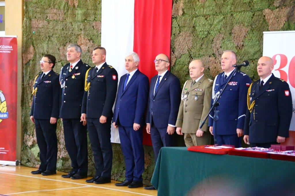 Podczas uroczystości funkcjonariuszom oraz pracownikom cywilnym jednostek organizacyjnych Państwowej Straży Pożarnej województwa podlaskiego wręczono szereg odznaczeń i awansów.