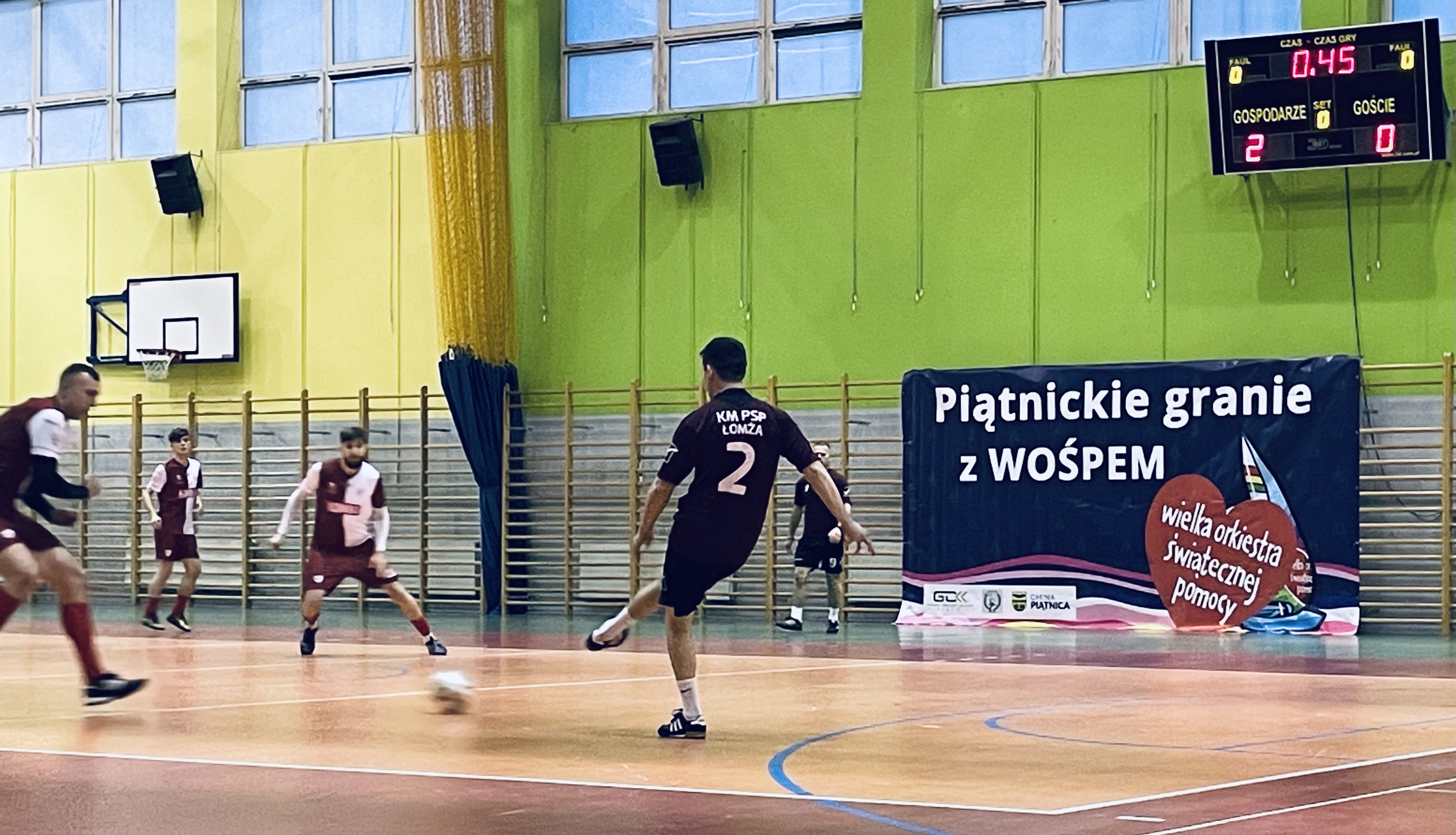 26 stycznia 2024 r., w Gminnej Hali Sportowej w Piątnicy łomżyńscy strażacy wzięli udział w Wojskowym Graniu w turnieju piłki nożnej.