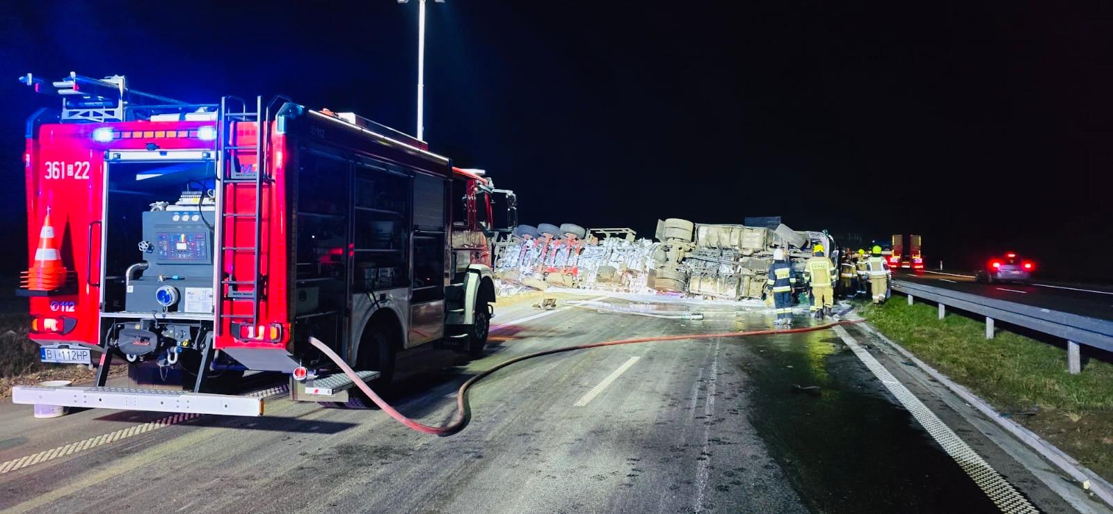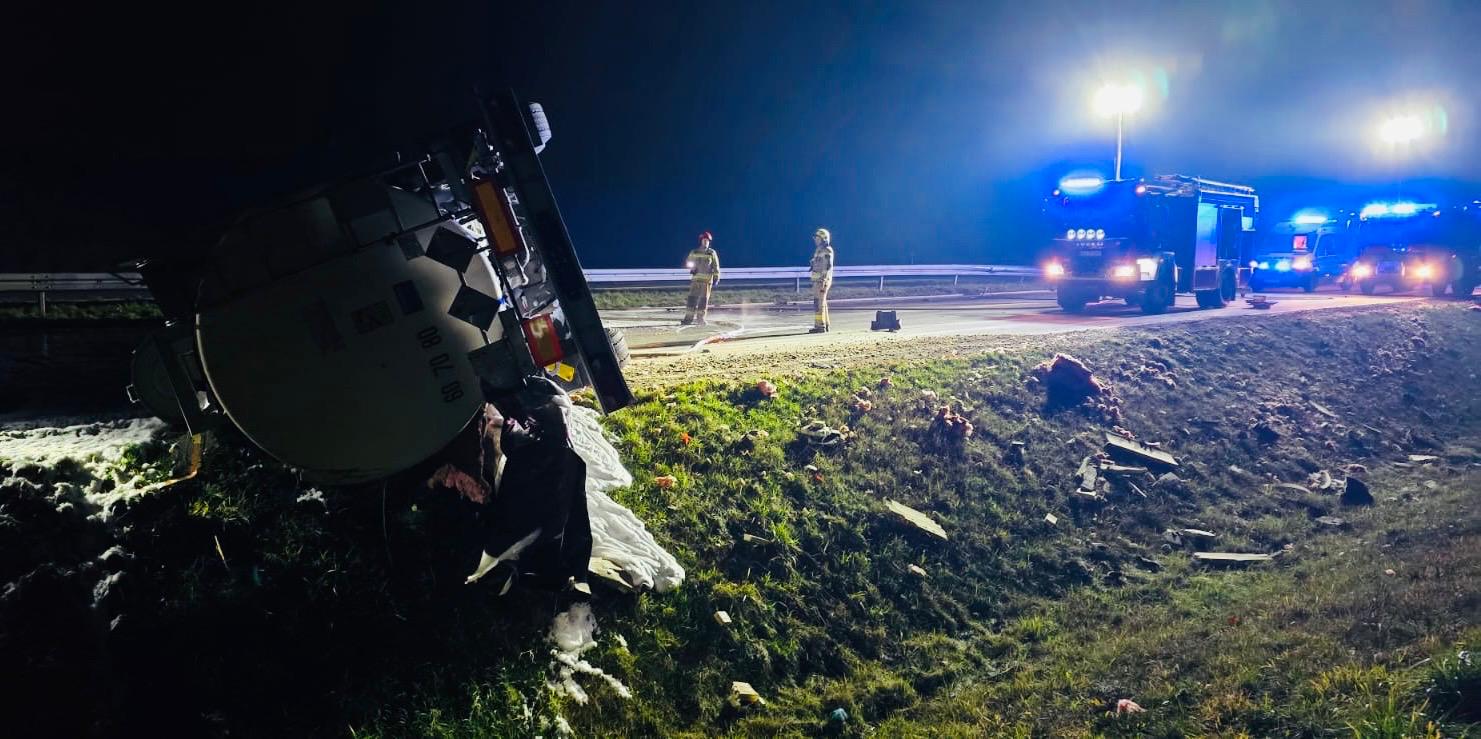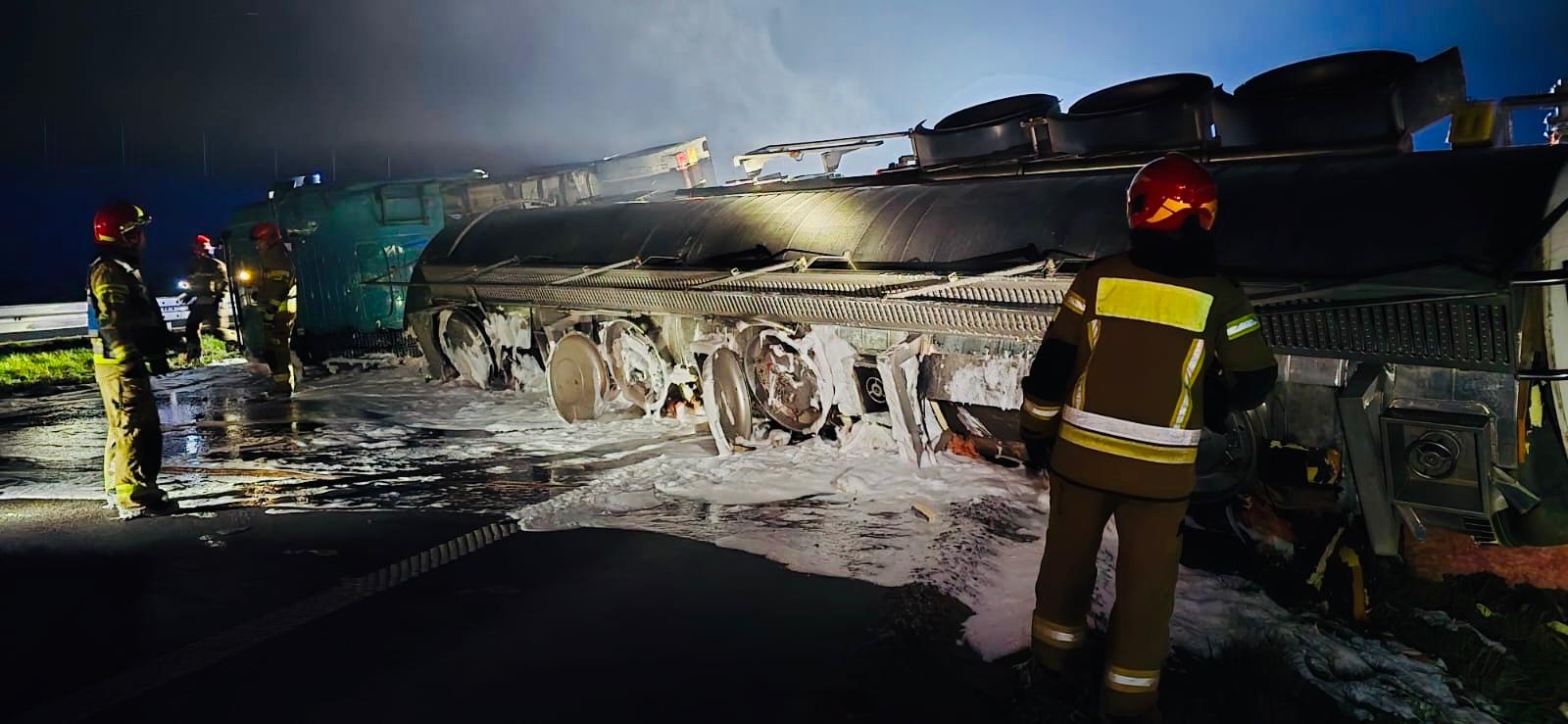 Wypadek cysterny z alkoholem etylowym na drodze ekspresowej S61