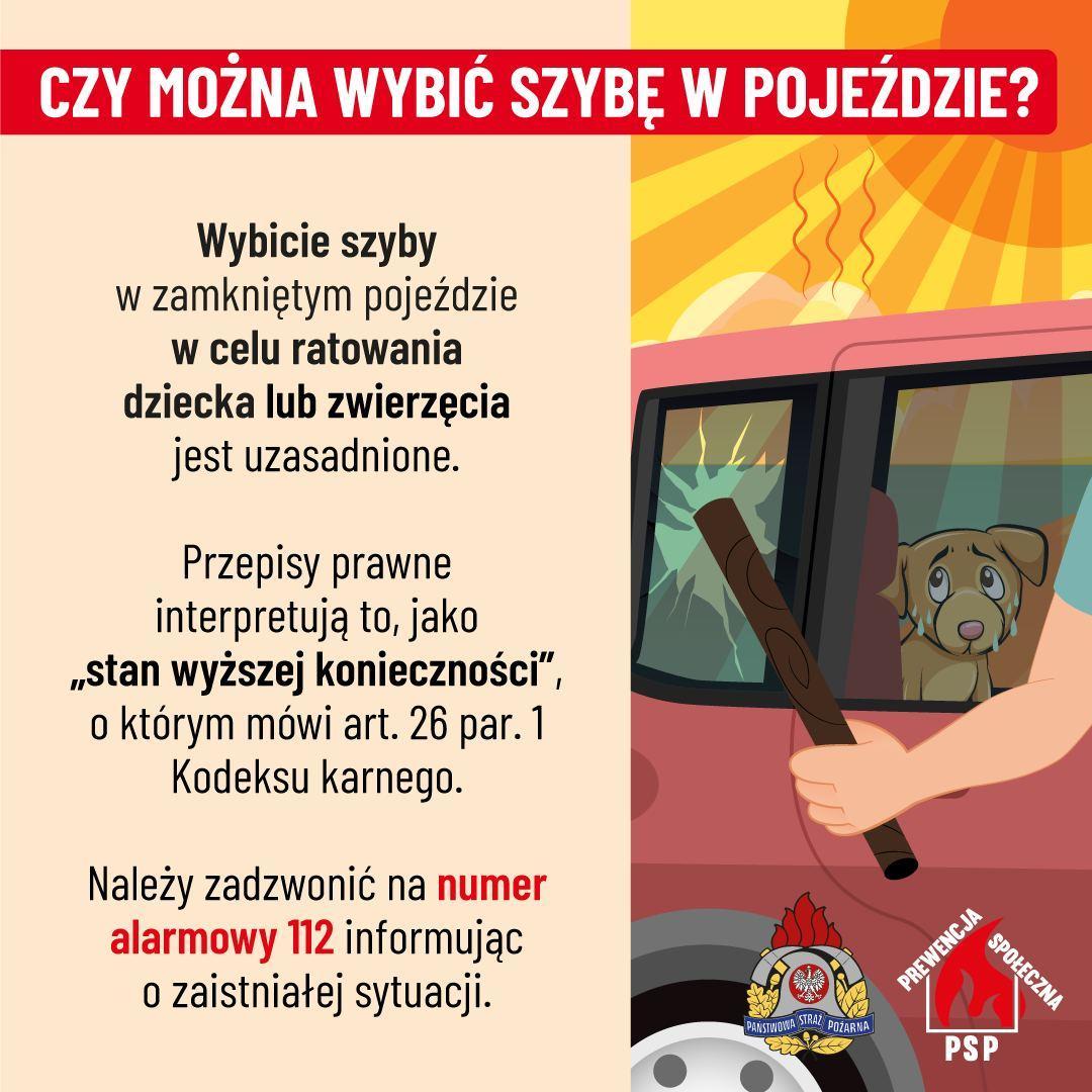 Jeśli ocenisz, że nie ma czasu na czekanie na pomoc, a życie dziecka lub zwierzęcia jest w bezpośrednim niebezpieczeństwie, wybicie szyby może być konieczne.