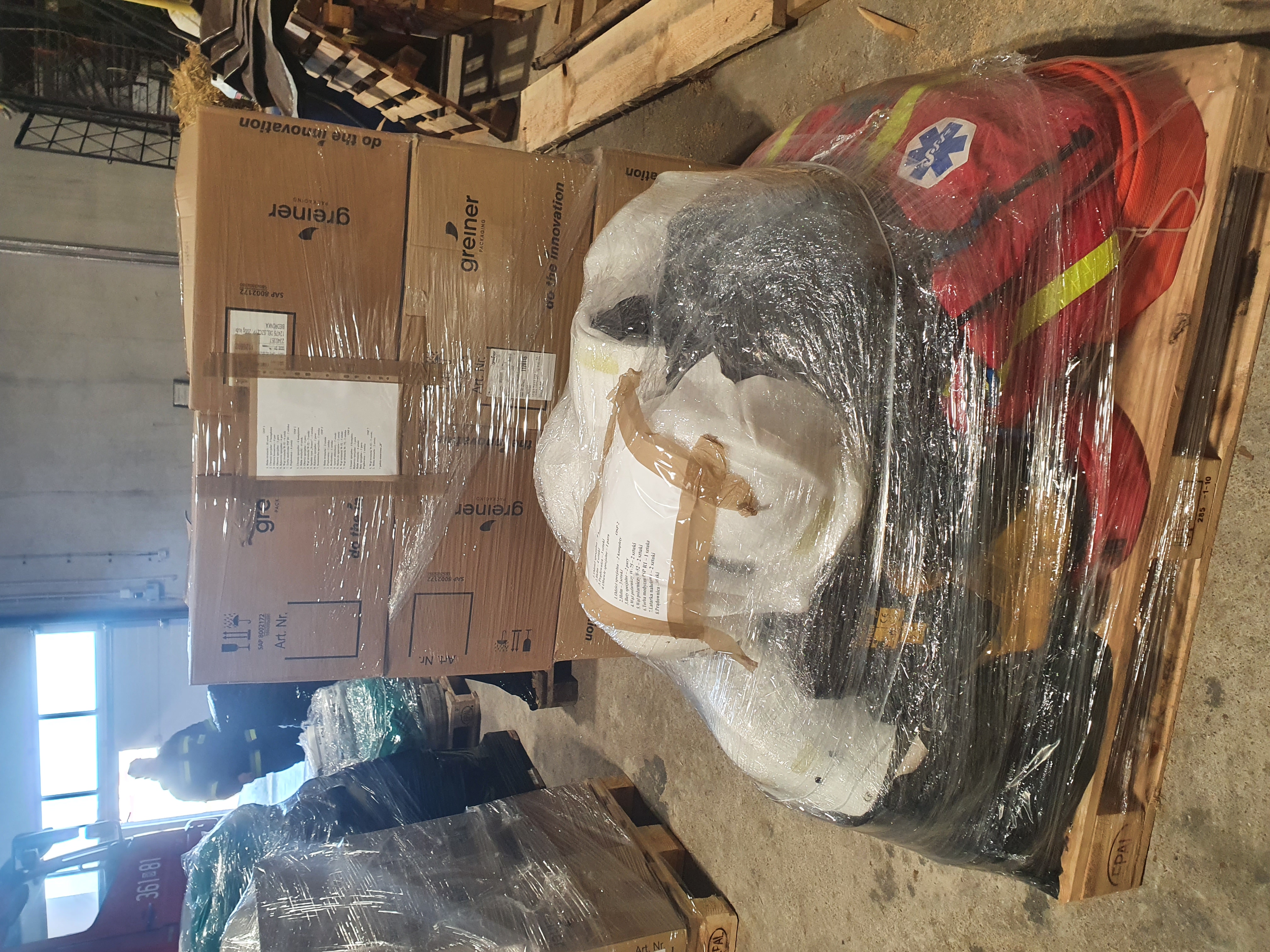 W trakcie dwóch dni zgromadzono sprzęt, na który w głównej mierze składają się: armatura wodna (węże, prądownice, rozdzielacze), ubrania specjalne, hełmy, rękawice, buty, torby PSP R-1, agregaty prądotwórcze, motopompa pływająca.