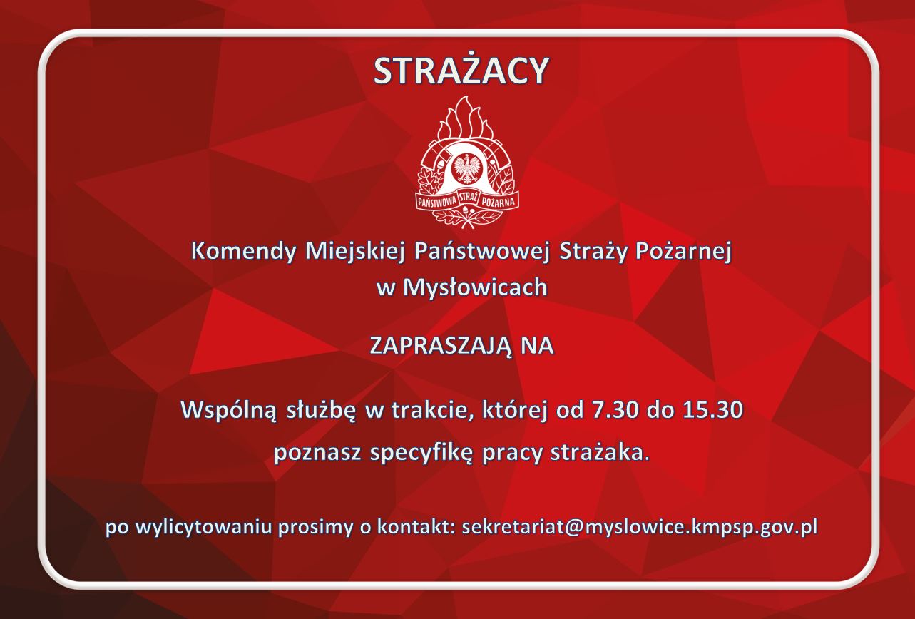 Możesz wylicytować wyjątkowy VOUCHER i spędzić dzień ze strażakami z Komendy Miejskiej Państwowej Straży Pożarnej w MYSLOWICACH! A będzie to dzień pełen wrażeń!!!