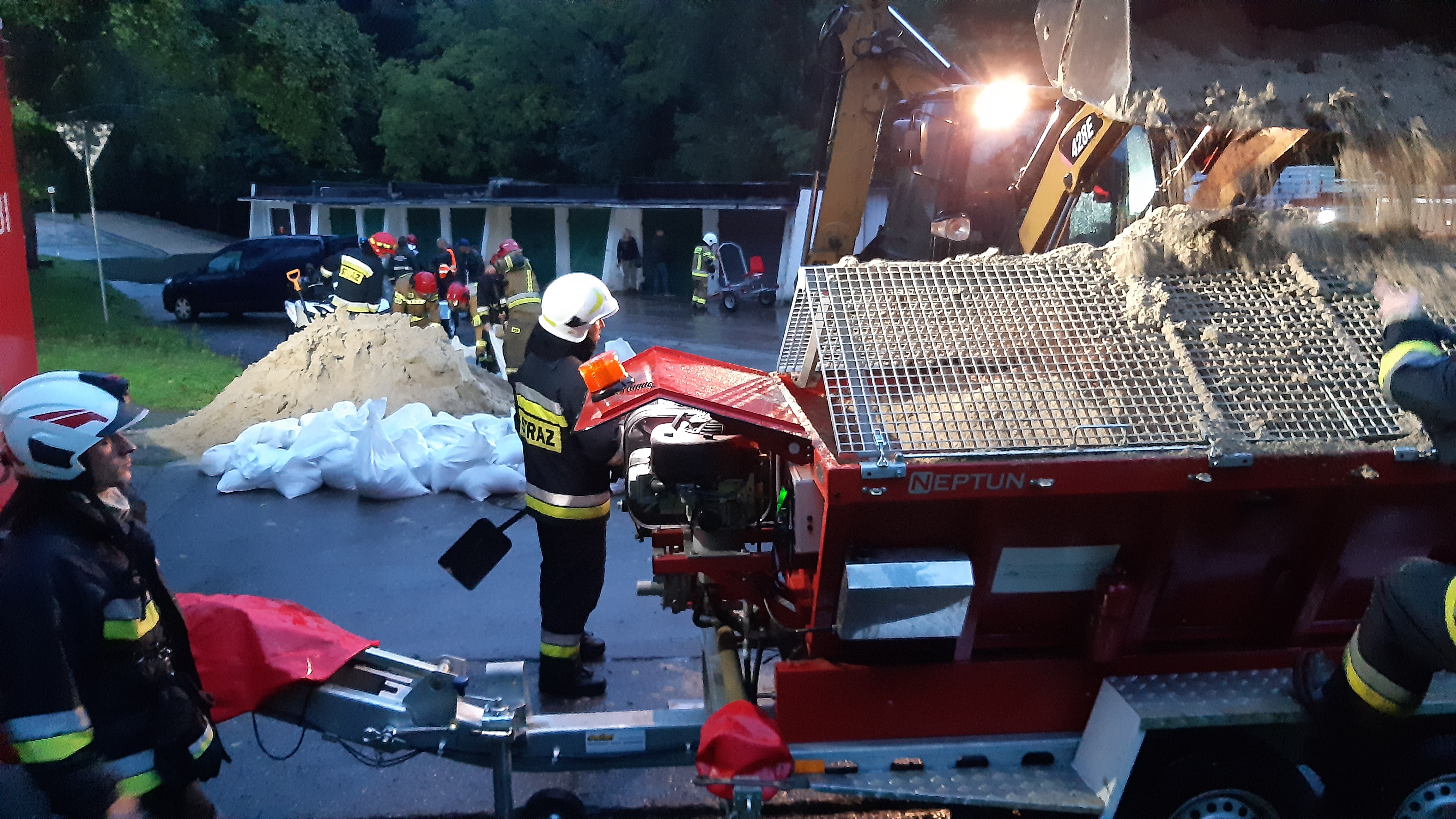 W dniu 31 sierpnia na skutek gwałtownych opadów deszczu od godziny 14.30 Stanowisko Kierowania Komendanta Miejskiego Państwowej Straży Pożarnej w Mysłowicach przyjęło ponad 80 zgłoszeń do godziny 8.00 dnia 1 września o lokalnych podtopieniach oraz osunięciu się skarpy na A4. Do usuwania tych zagrożeń zadysponowano wszystkie siły Straży Pożarnej z terenu Miasta. Po przyjęciu zgłoszenia o przelewającej się przez wał Przemszy działania Mysłowickich Strażaków wspierali Strażacy z Dąbrowy Górniczej i Katowic. Ułożono worki z piaskiem w najniższym miejscu wału, przez który Przemsza przelewała się i zagrażała budynkom mieszkalnym przy ul. Kaczej oraz Kołłątaja i zalewała garaże przy ul. Kaczej. Na chwilę obecną mamy prawie 90 obsłużonych zgłoszeń i dalej pompujemy wodę z zalanych piwnic oraz zalanych dróg w rejonie ul. Plebiscytowej. W walce ze skutkami nawałnicy walczyło 15 zastępów i 40 strażaków nie tylko Państwowej Straży Pożarnej, ale również Zakładowej Straży Pożarnej i Ochotniczej Straży Pożarnej.