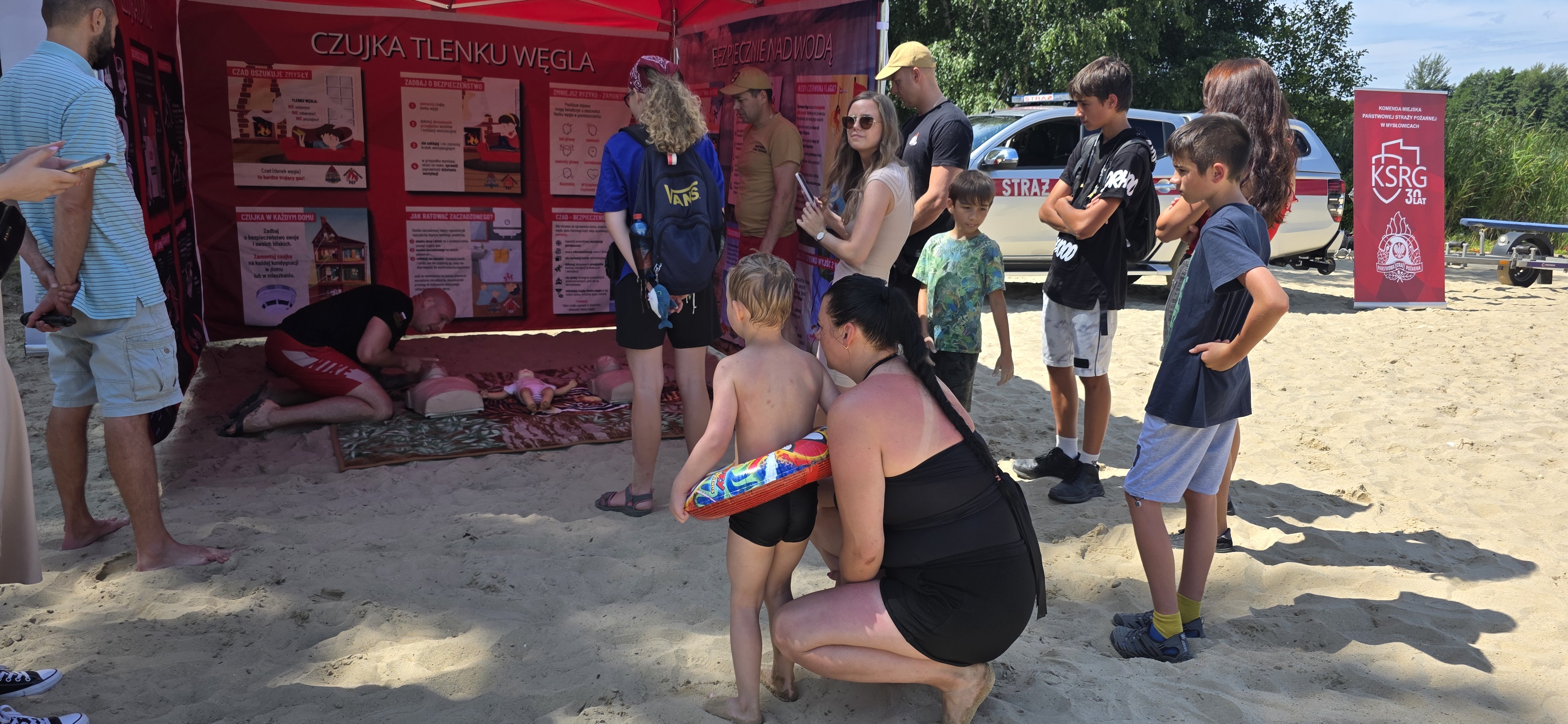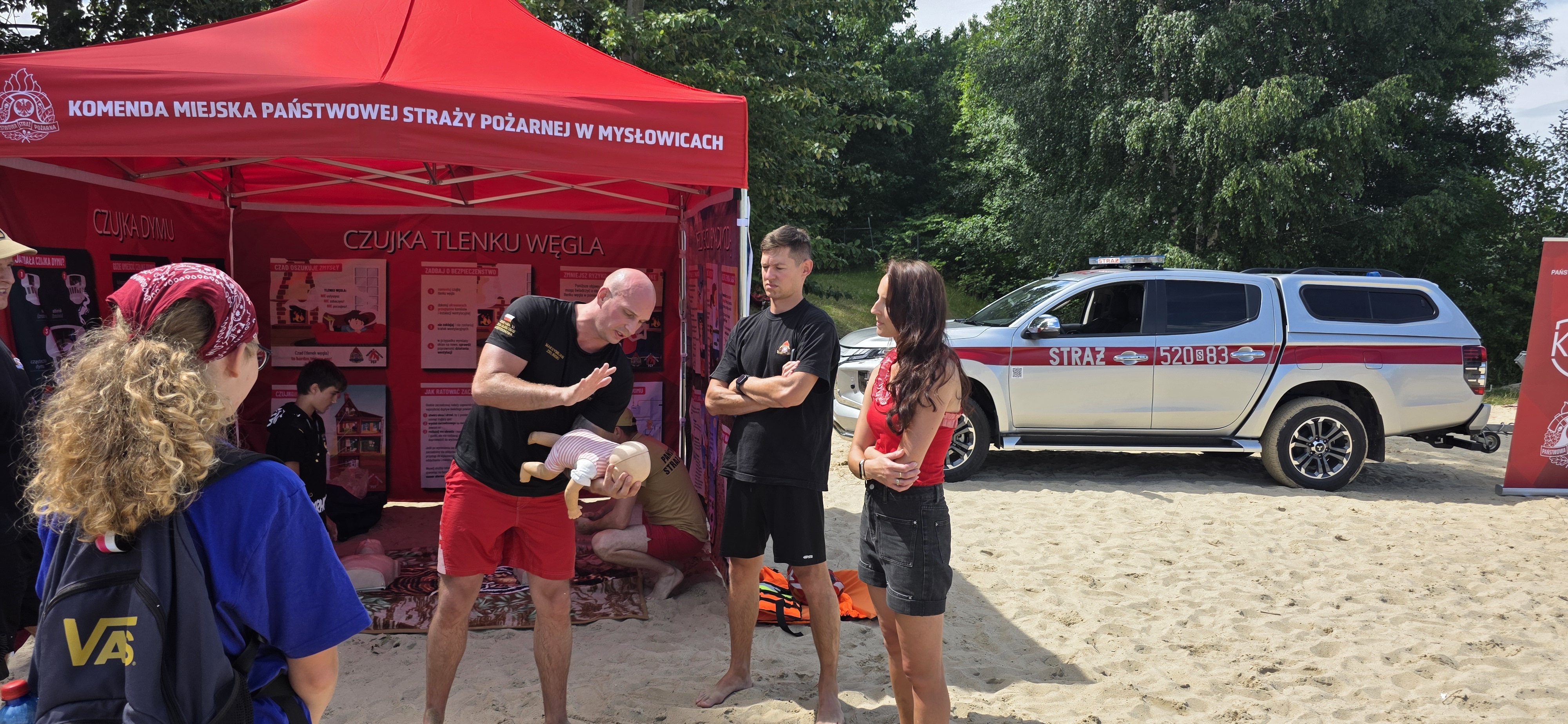 Każdy z uczestników mógł również spróbować swoich sił w udzielaniu pierwszej pomocy na specjalistycznych fantomach, pod okiem strażaków . Była to doskonała okazja do nauki praktycznych umiejętności, które mogą uratować ludzkie życie.