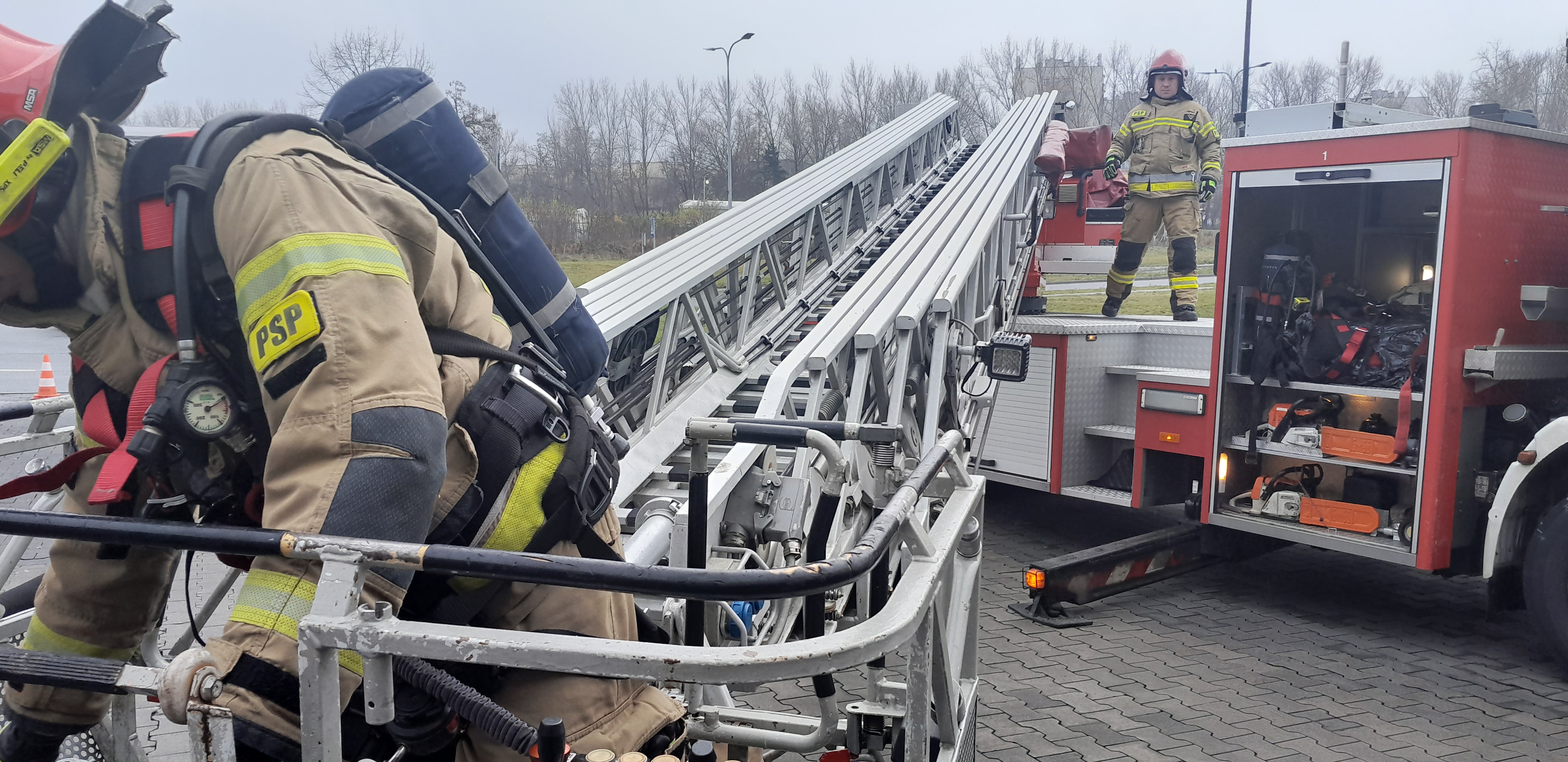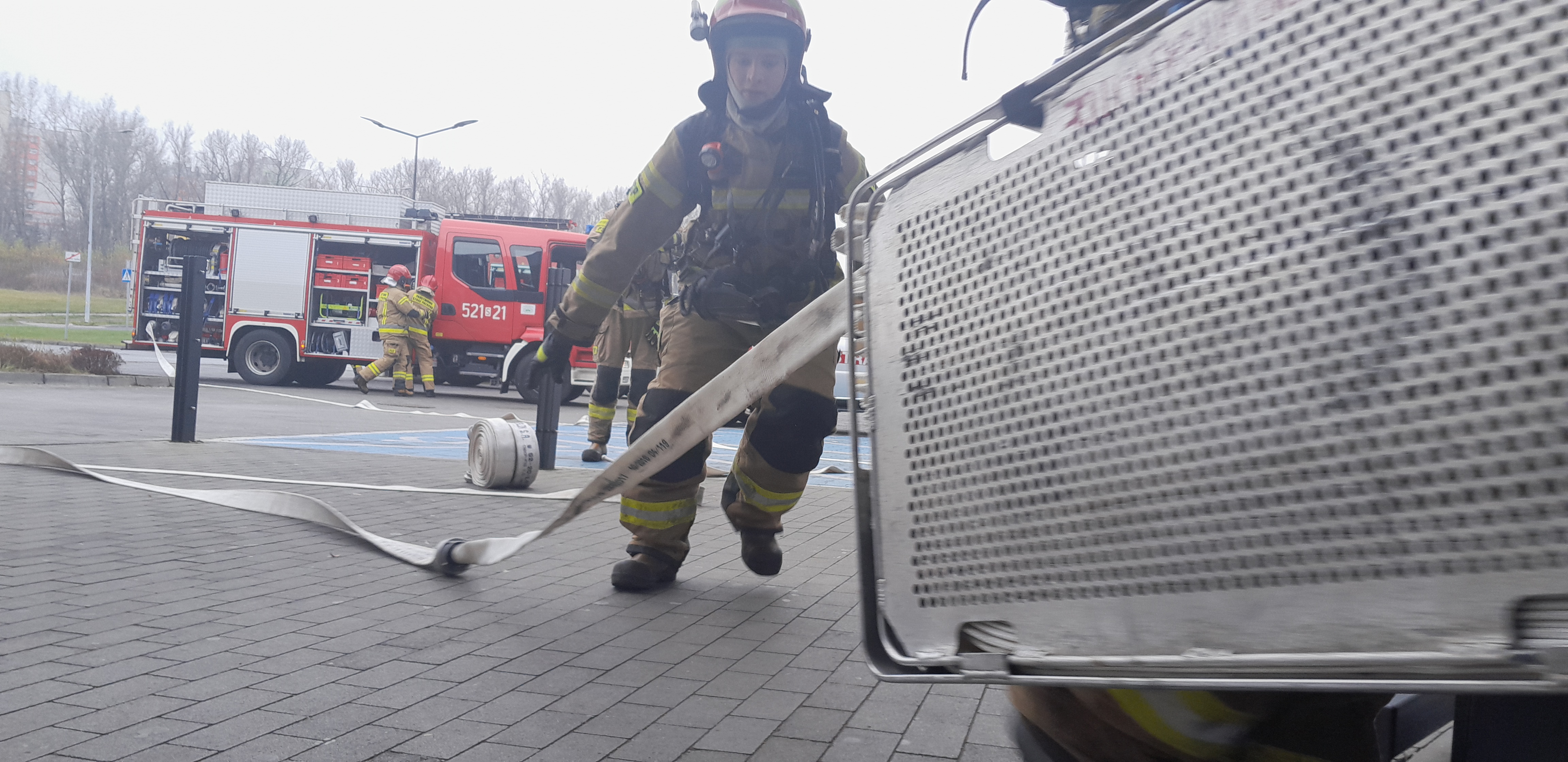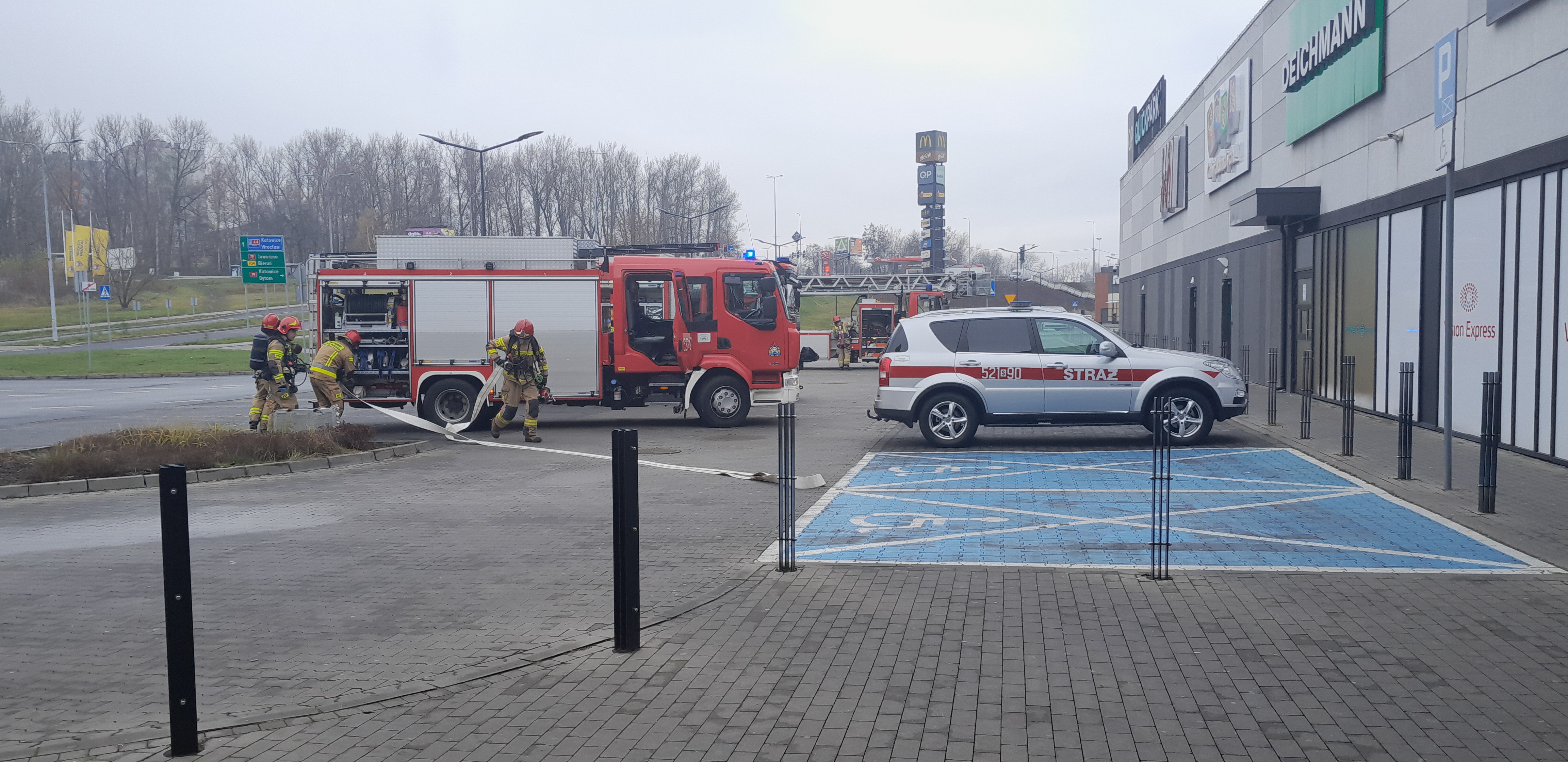Tak wyglądał scenariusz ćwiczeń mysłowickich strażaków, którzy na terenie Centrum Handlowego Quick Park w Mysłowicach doskonalili techniki działań ratowniczo – gaśniczych wraz ze ochroną i obsługą obiektu.