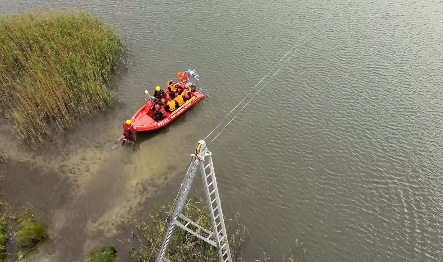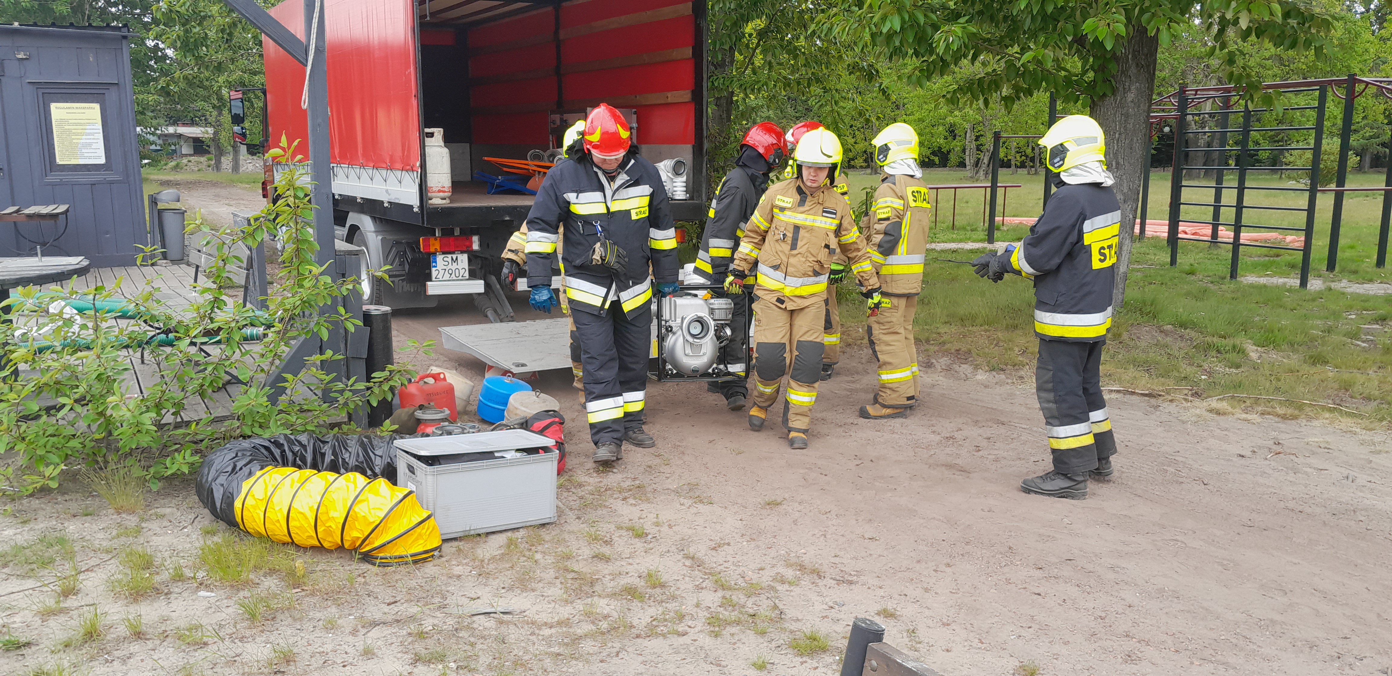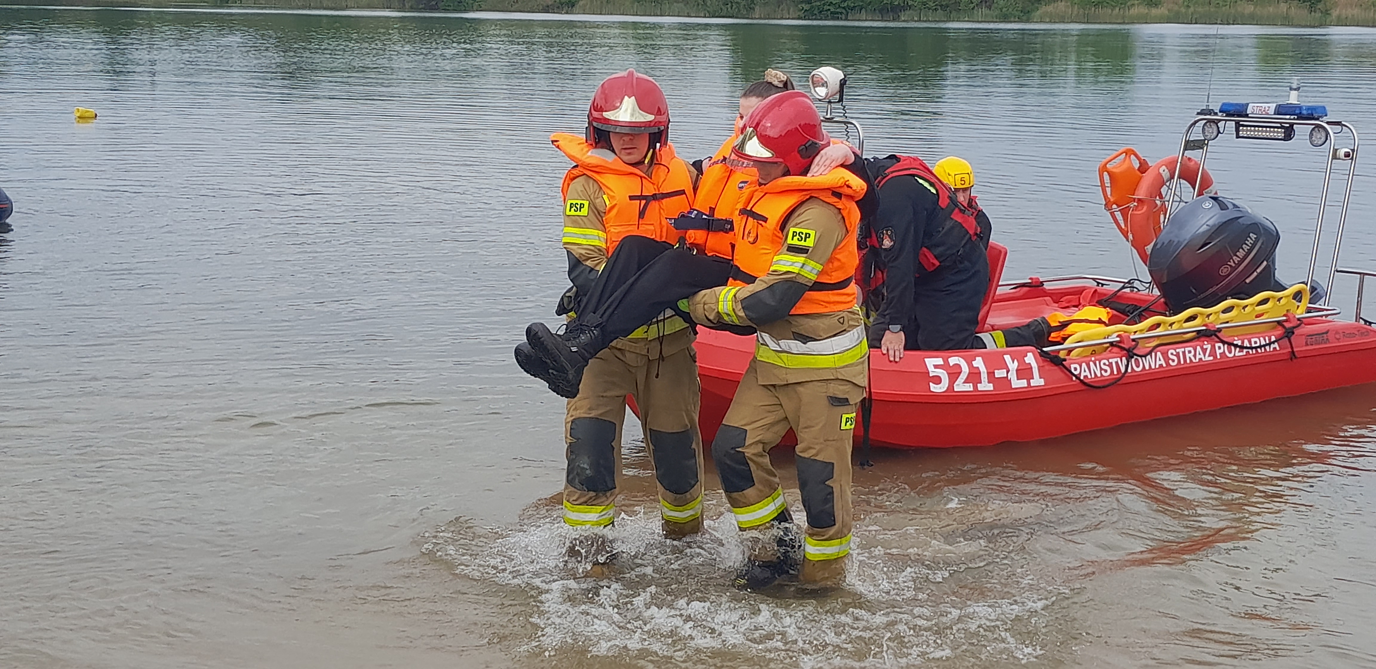 Strażacy ćwiczyli elementy taktyki działań ratowniczych związanych z technikami ratownictwa wodnego oraz przeciwpowodziowego z wykorzystaniem sprzętu znajdującego się na ich wyposażeniu.