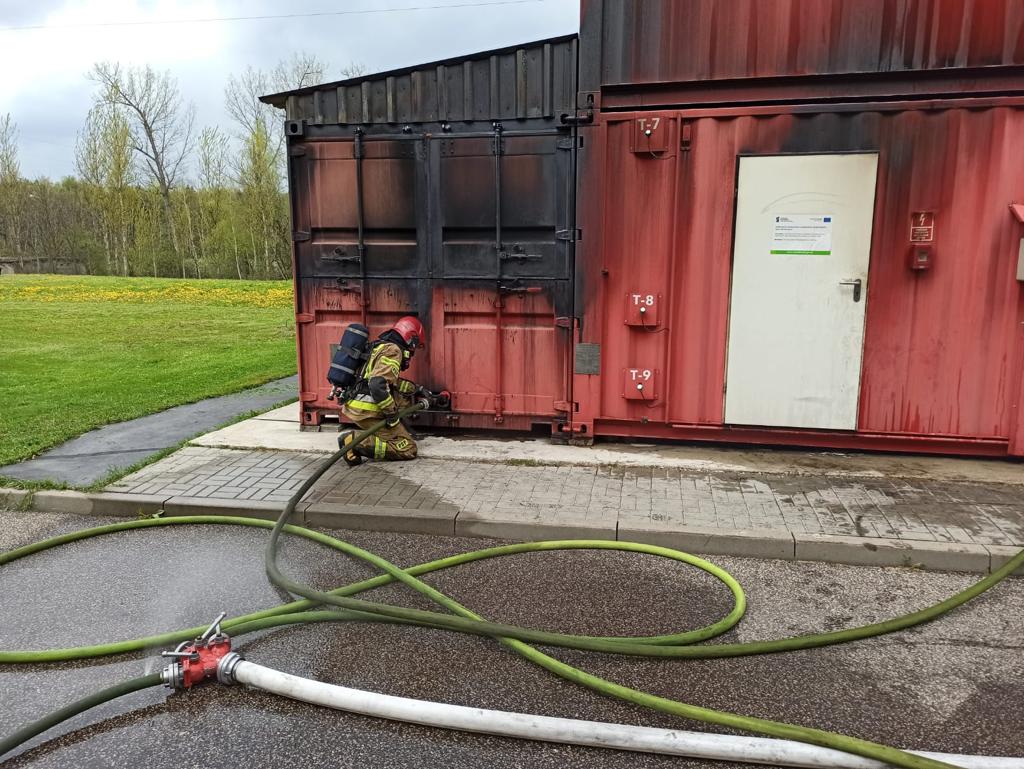 W dobie pandemii pod nadzorem instruktorów z Ośrodka Szkolenia Komendy Wojewódzkiej PSP w Katowicach w dniu 6.05. 2021, strażacy z JRG Mysłowice szkolili się z zakresu gaszenia pożarów wewnętrznych w modułowym trenażerze ogniowym znajdującym się na terenie JRG Sosnowiec-Porąbka.