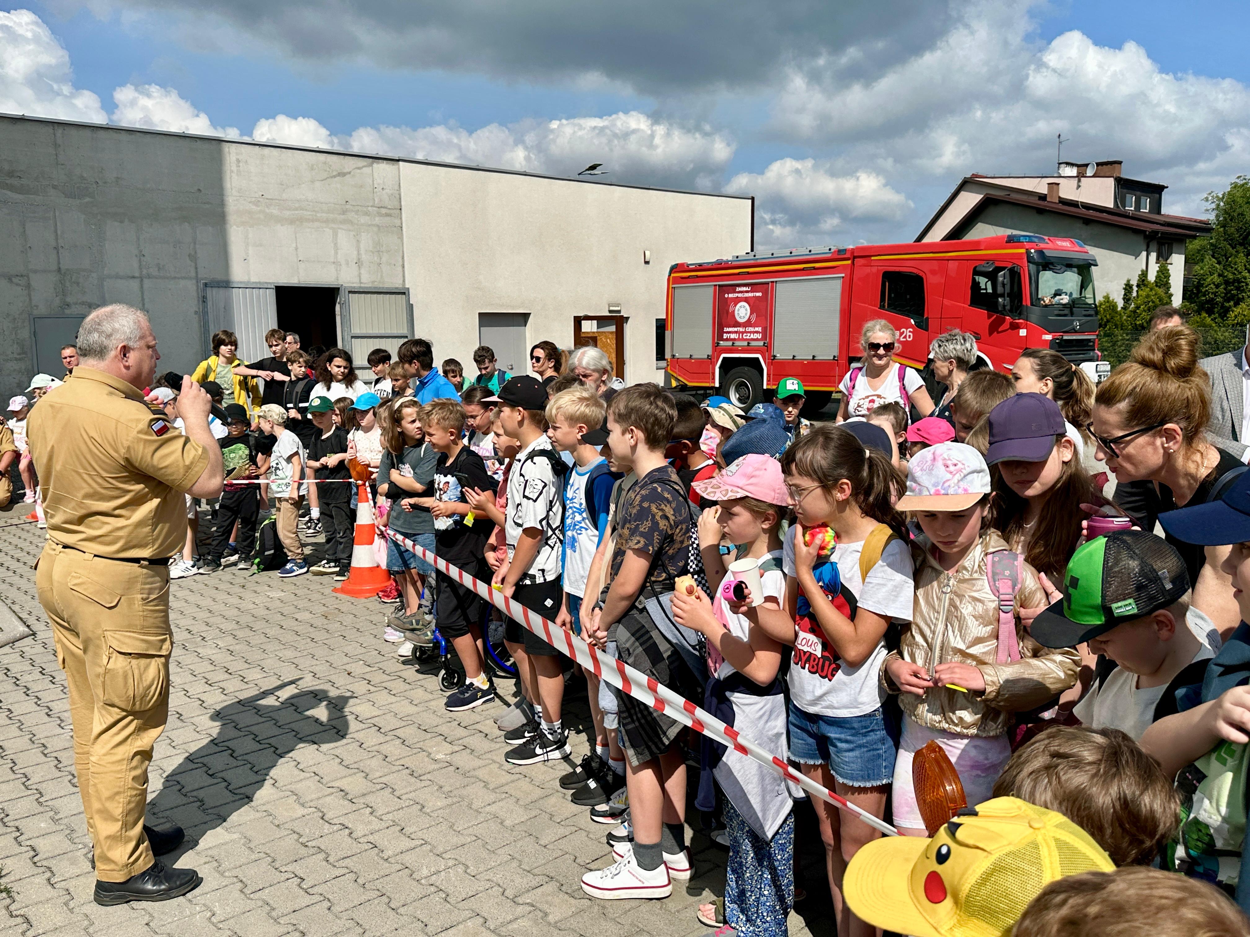 Strażacy przeprowadzili prelekcję w ramach ogólnopolskiej kampanii „Bezpieczne wakacje”. Podczas spotkania omówiono, jak powinien wyglądać bezpieczny wypoczynek – zarówno w domu, jak i nad wodą czy w górach. Uczestnicy dowiedzieli się, jak unikać zagrożeń, jak udzielać pierwszej pomocy, jak zachowywać się w sytuacjach niebezpiecznych oraz jak odpowiedzialnie korzystać z letnich atrakcji.