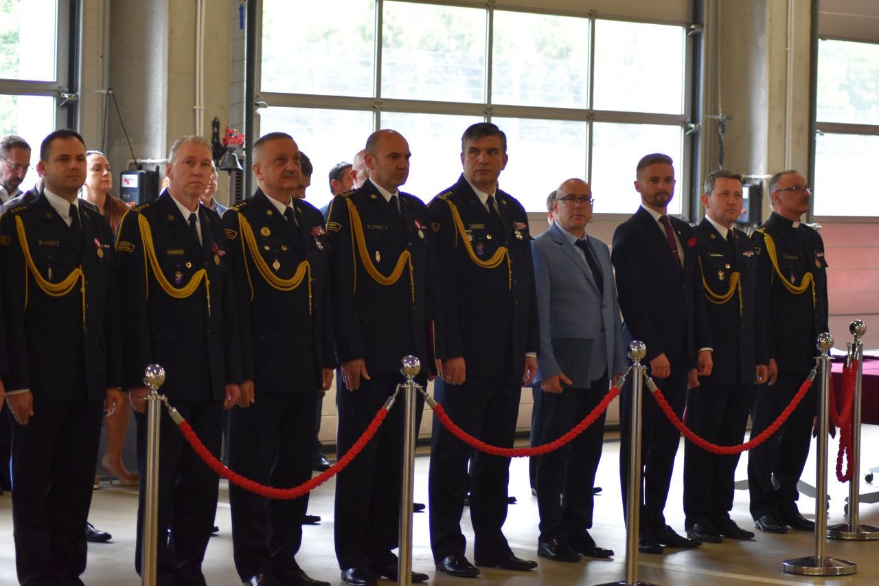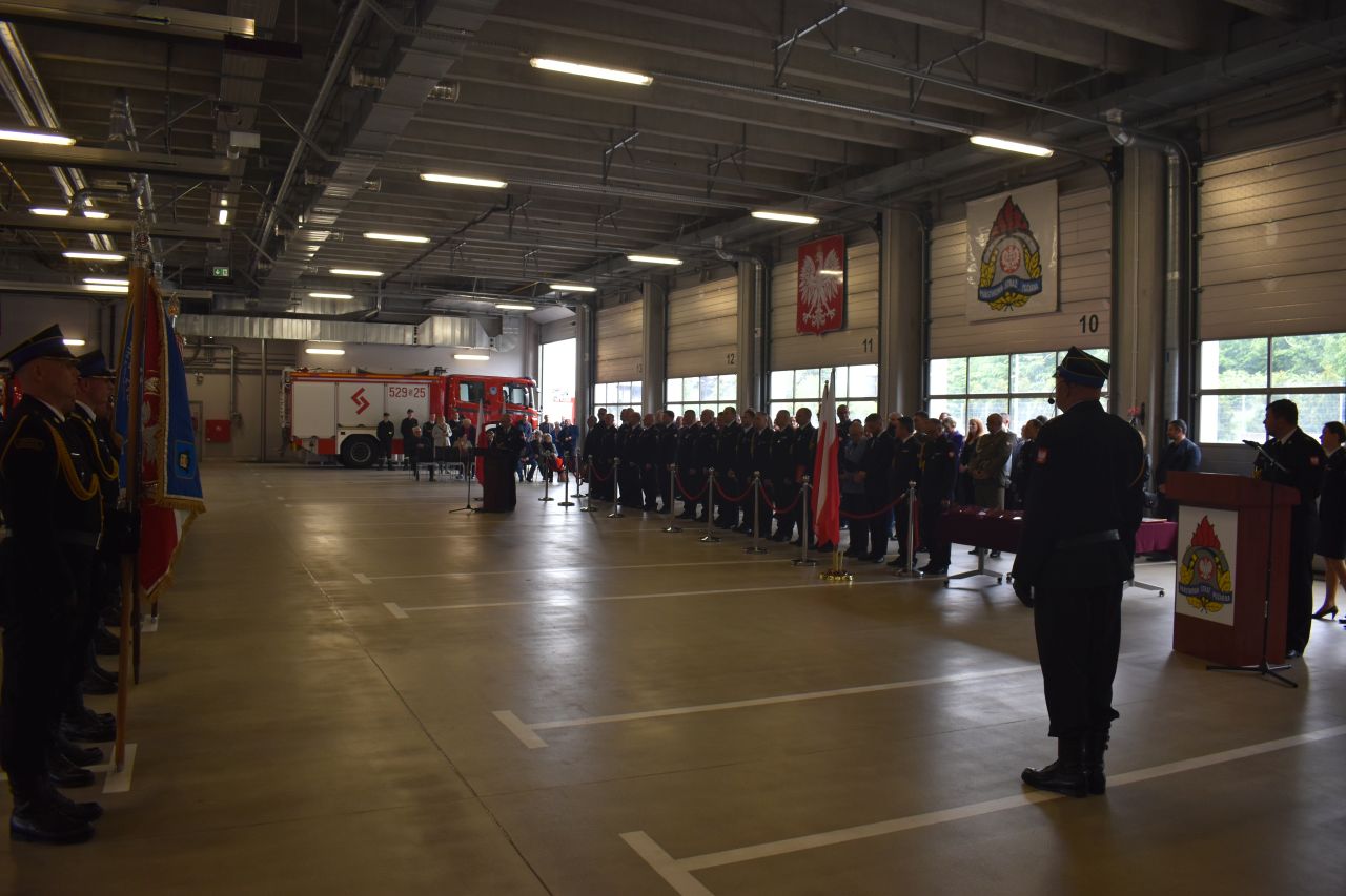 Meldunek złożony przez dowódcę uroczystości przyjął Zastępca Śląskiego Komendanta Wojewódzkiego Państwowej Straży Pożarnej st. bryg. Mirosław Synowiec. W uroczystości udział wzięli znamienici goście, w tym przedstawiciele władz samorządowych, m.in. Prezydent Miasta Mysłowice Pan Dariusz Wójtowicz, Wiceprezydent Miasta Mysłowice Pan Wojciech Chmiel, Wiceprezydent Miasta Mysłowice Pan Mateusz Targoś, Dyrektor Centralnego Muzeum Pożarnictwa bryg. Rafał Jureczko, przedstawiciele Rady Miasta Mysłowice oraz służb miejskich współdziałających, na co dzień z Państwową Strażą Pożarną, przedstawiciele Zarządu Powiatowego Związku Ochotniczych Straży Pożarnych Rzeczypospolitej Polskiej, byli Komendanci Miejscy Państwowej Straży Pożarnej w Mysłowicach, obecni Komendanci Miejscy Państwowej Straży Pożarnej miast ościennych, emerytowani strażacy KM PSP Mysłowice, przedstawiciele firm i instytucji współpracujących z Komendą Miejską PSP w Mysłowicach.