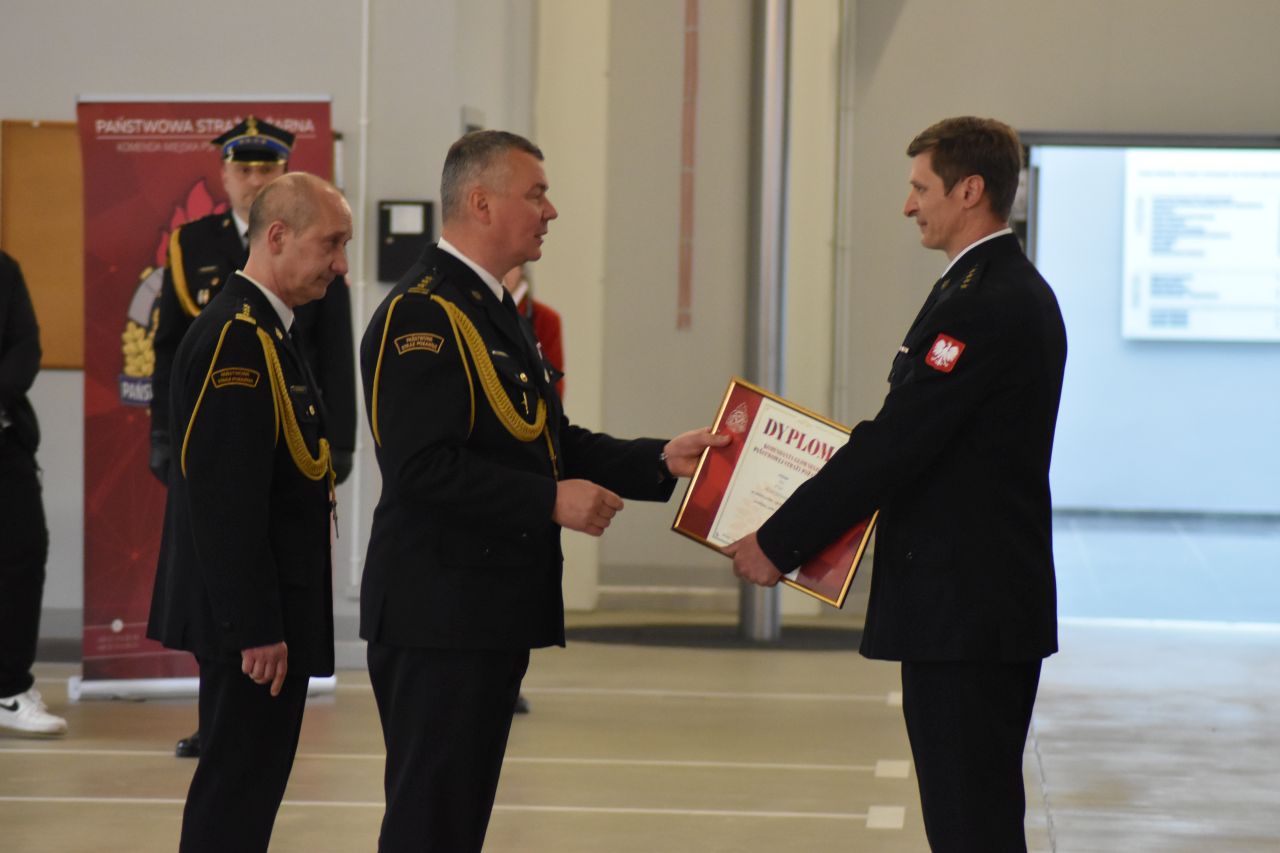 Następna cześć uroczystości poświęcona była nominacjom na wyższe stopnie służbowe wręczeniu nagród i Dyplomu Komendanta Głównego PSP.