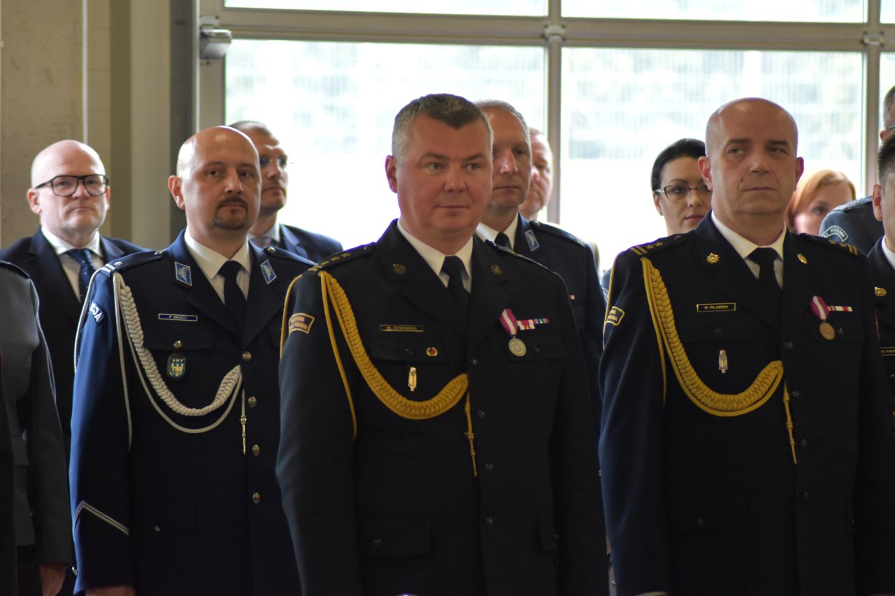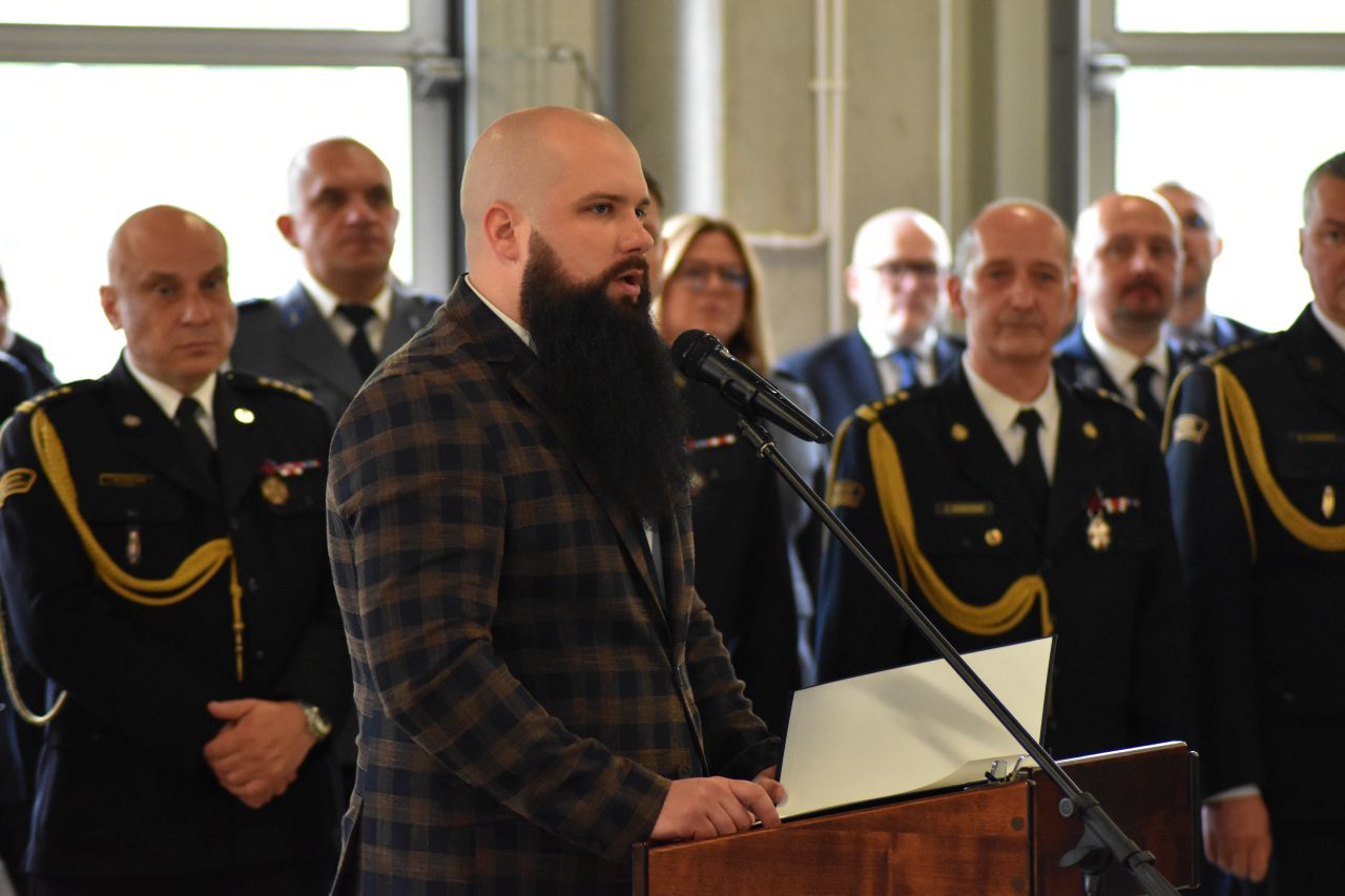 W dalszej części uroczystości głos zabrali: Prezydent Miasta Mysłowice Pan Dariusz Wójtowicz, Przewodniczący Komisji Samorządności i Przestrzegania Prawa Pan Artur Bula oraz Zastępca Śląskiego Komendanta Wojewódzkiego st. bryg. Mirosław Synowiec.