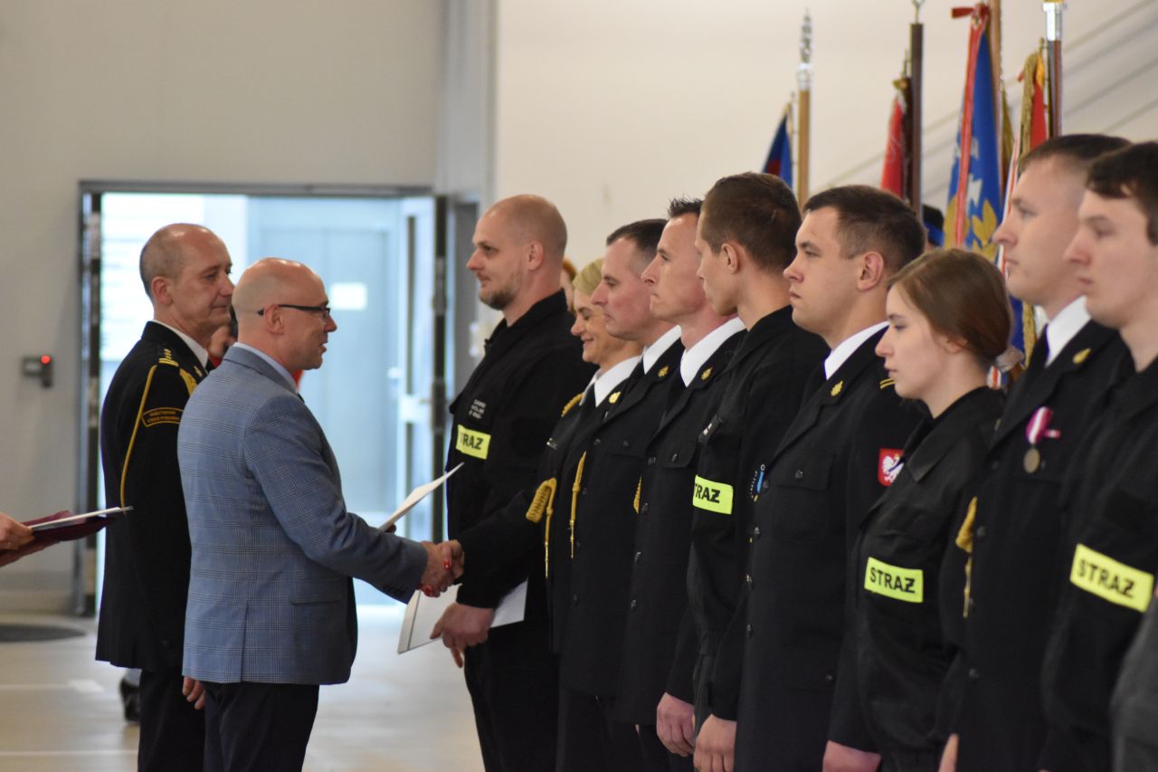 Po przemówieniu Komendanta Miejskiego PSP w Mysłowicach st. bryg. Olgierda koźmińskiego nastąpiło wręczenie odznaczeń Komendzie Miejskiej PSP w Mysłowicach, w tym Odznaczenia Państwowe Prezydenta Rzeczpospolitej Polskiej za długoletnią służbę oraz Odznaczenia MSWiA Zasłużony Dla Ochrony przeciwpożarowej oraz Odznaczenia Prezydium Zarządu oddziału Wojewódzkiego Województwa Śląskiego ZOSP RP za zasługi dla pożarnictwa.
