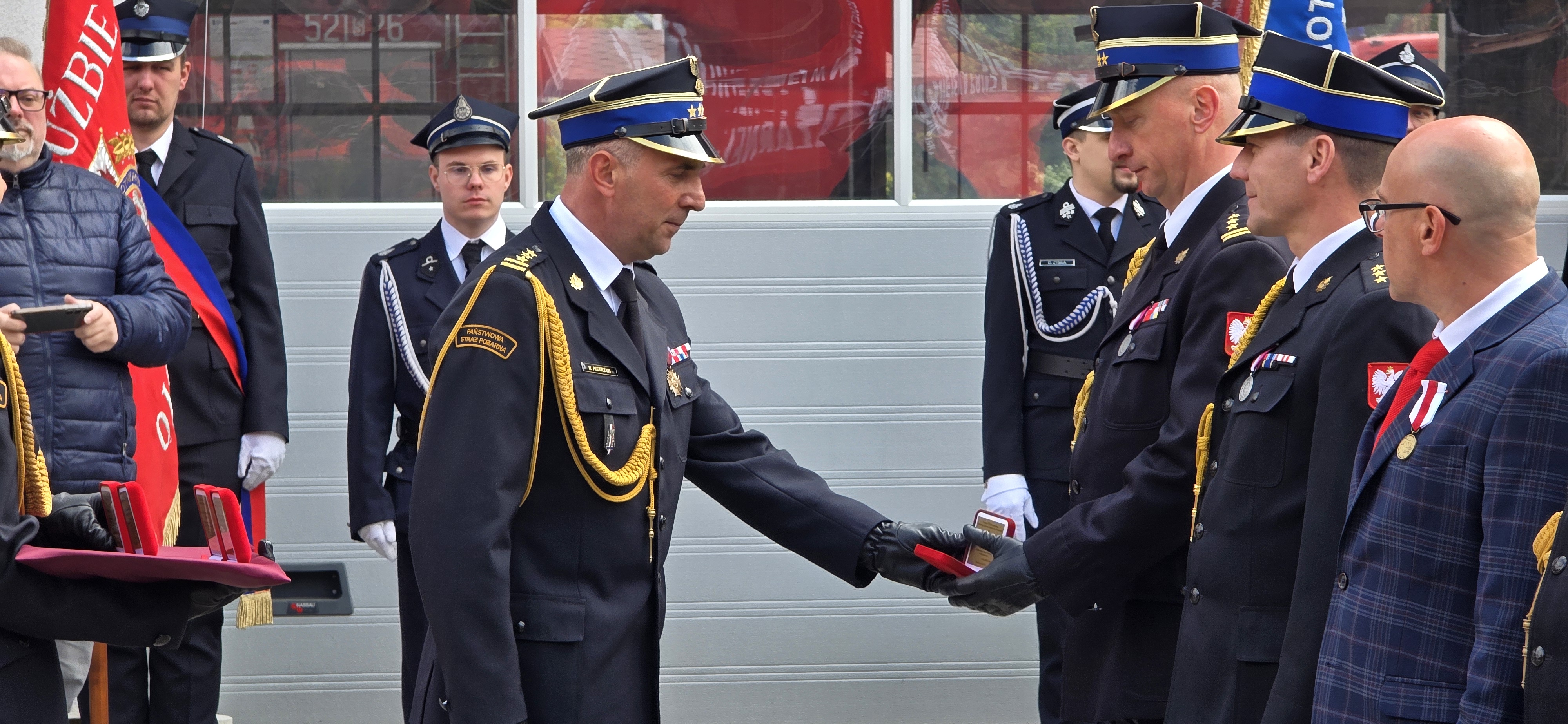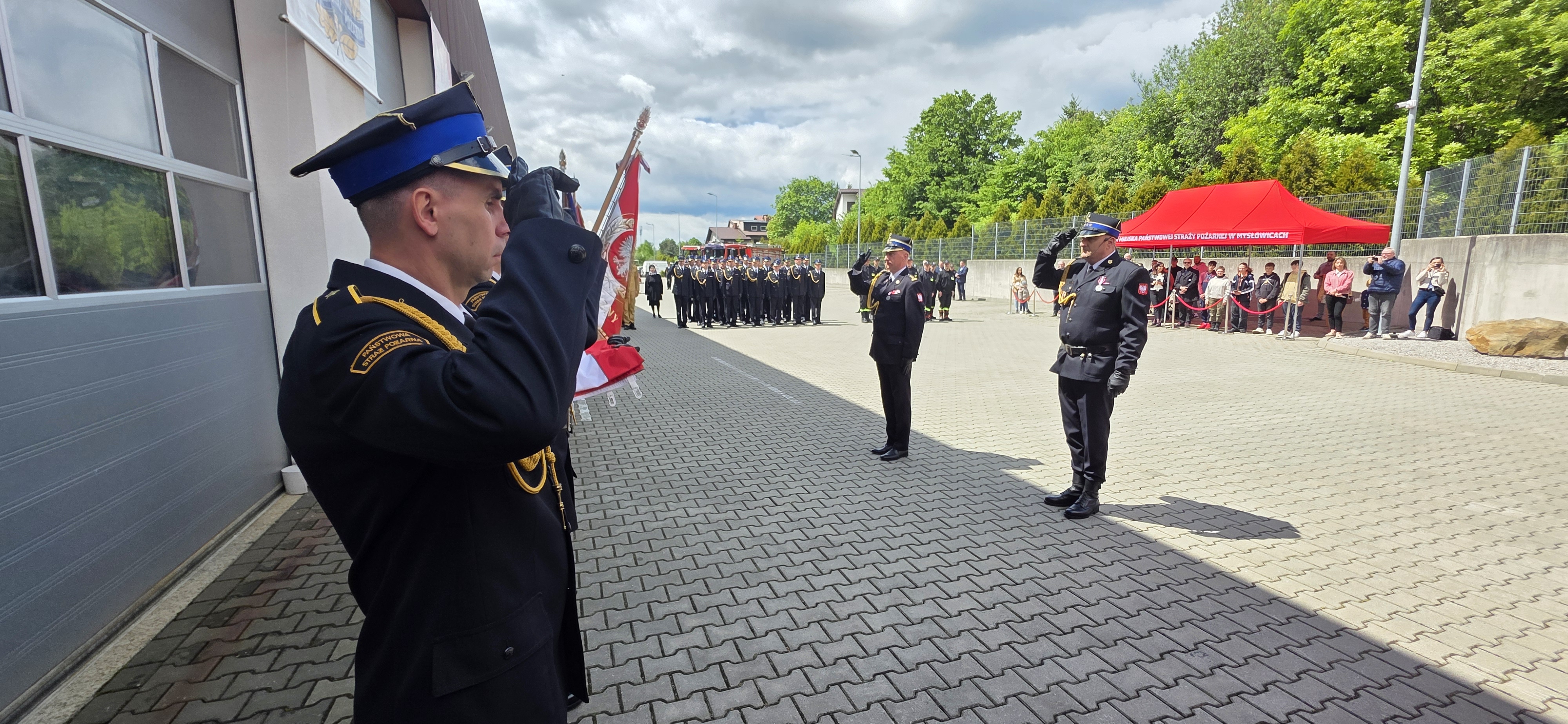 W uroczystej zbiórce brali udział: Pani Dorota Konieczny Simela reprezentująca Posła na Sejm Rzeczypospolitej Polskiej Pana Wojciecha Króla, Śląski Komendant Wojewódzki st. bryg. Damian Legierski, Pan Zdzisław Banaś członek prezydium Zarządu Głównego oraz Wiceprezesa Zarządu Oddziału Wojewódzkiego Związku Ochotniczych Straży Pożarnych RP w Katowicach, Komendanci Miejscy i Powiatowi PSP, przedstawiciele władz samorządowych z terenu miasta Mysłowice na czele z Prezydentem Miasta Mysłowice Panem Dariuszem Wójtowiczem wraz z zastępcami, Komendant Policji w Mysłowicach Pan mł. insp. Jarosław Bąk wraz z zastępcą, Komendant Straży Miejskiej w Mysłowicach Pan Dawid Skutela, Komendant Aresztu Śledczego ppłk Waldemar Turczynowski wraz z zastępcą, Prezes Zarządu ZOSP RP w Mysłowicach, przedstawiciele innych służb mundurowych oraz zaprzyjaźnionych firm.