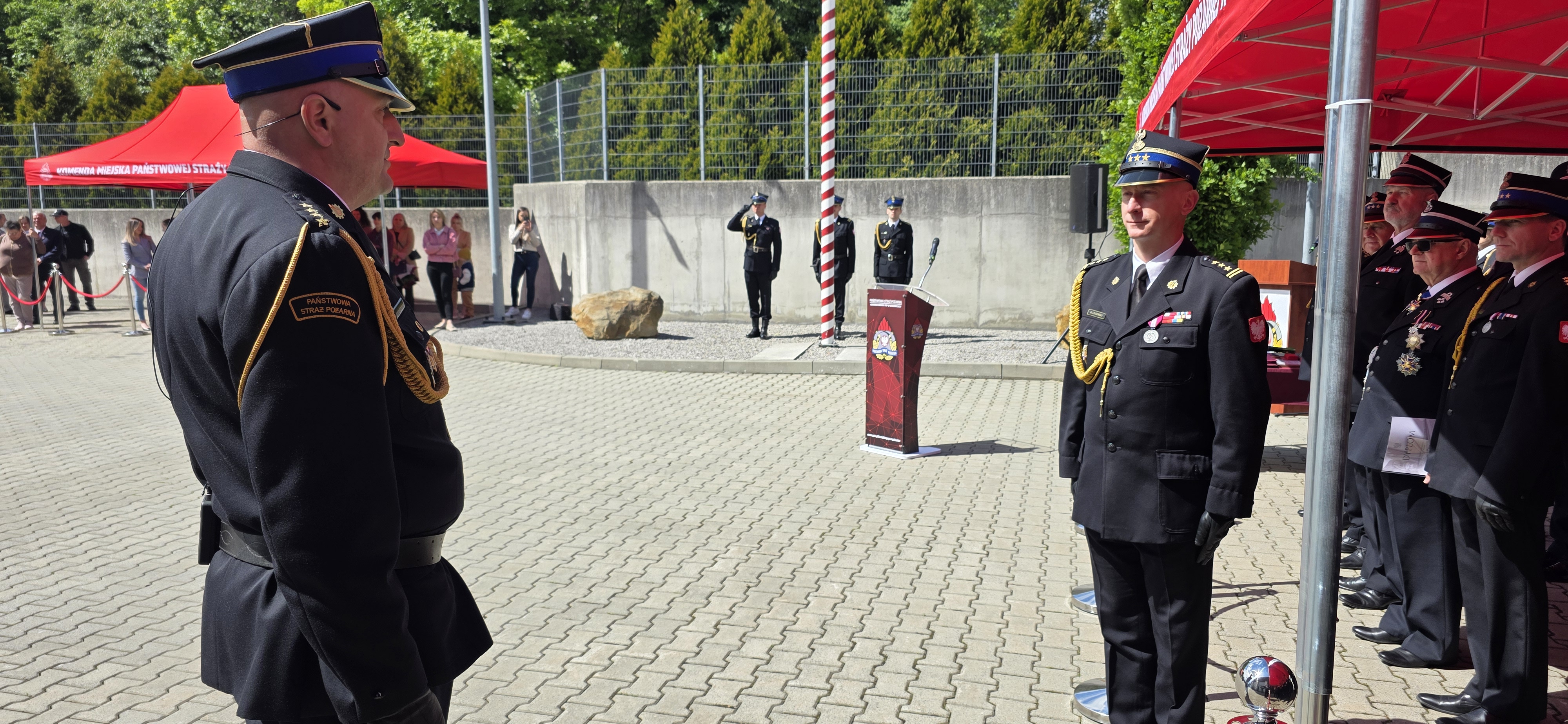 Uroczysty apel rozpoczął się od złożenia meldunku o gotowości do rozpoczęcia uroczystości st. bryg. Damianowi Legierskiemu – Śląskiemu Komendantowi Wojewódzkiemu PSP, który następnie dokonał przeglądu pododdziałów.