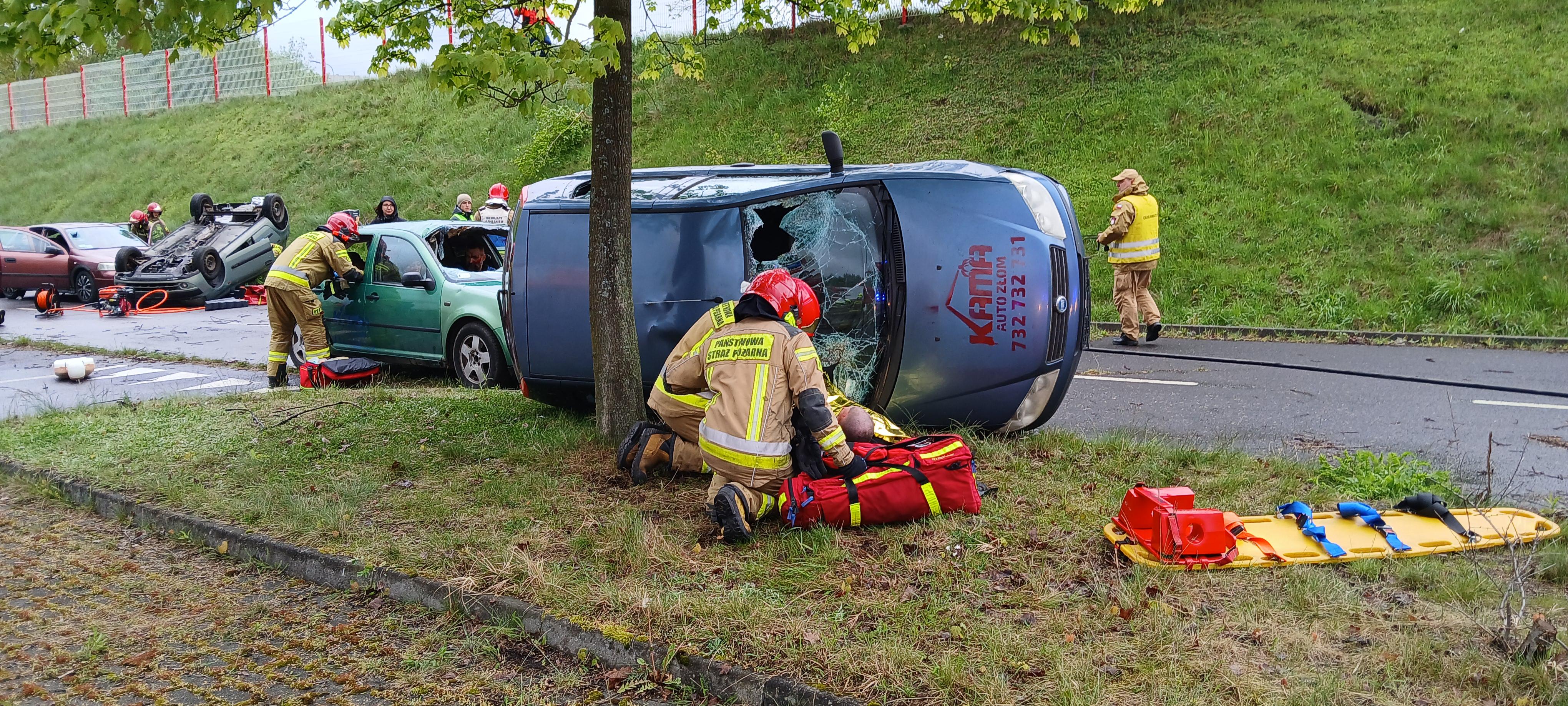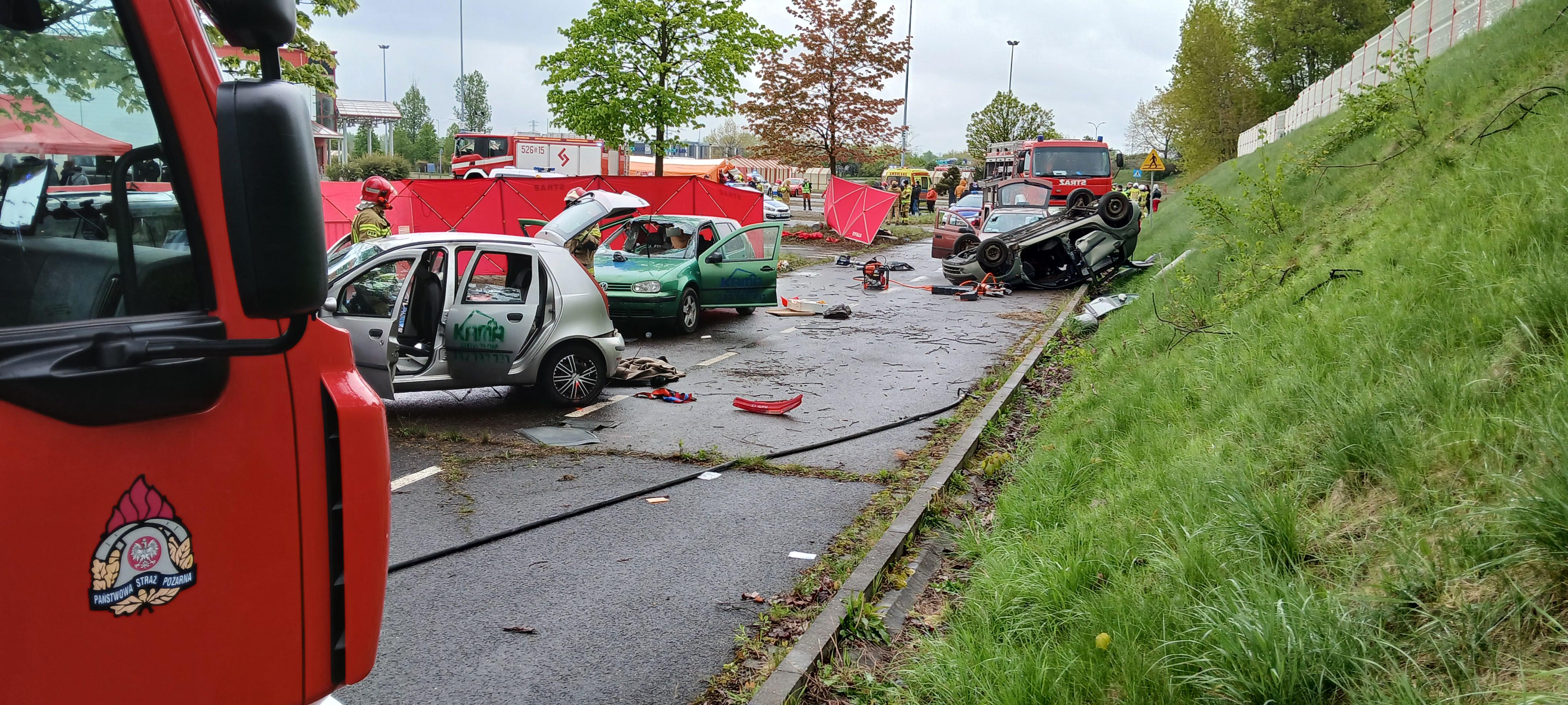 Mysłowiccy strażacy przeprowadzili Powiatowe ćwiczenia ratownicze po wypadku masowym podczas nielegalnego wyścigu samochodowego.
