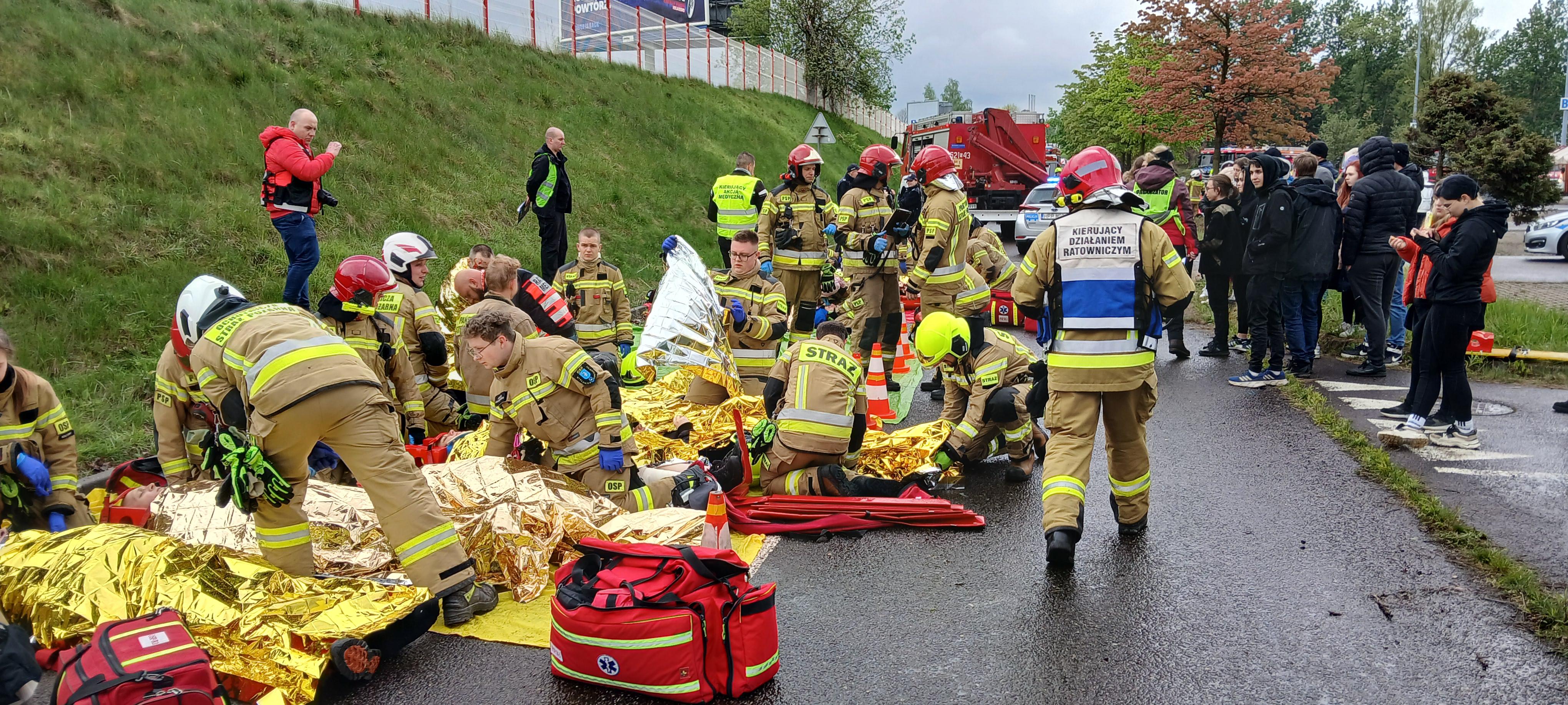 W dniu 20.04.2024 r. Mysłowiccy strażacy doskonalili techniki ratownicze podczas symulowanego wypadku masowego, który miał miejsce podczas nielegalnego wyścigu samochodowego. Ćwiczenia, które odbyły się 20.04.2024 r. w Mysłowicach, miały na celu przetestowanie gotowości i koordynacji działań ratowniczych Straży Pożarnej, Ratownictwa Medycznego, Policji, Straży Miejskiej i Zarządzania Kryzysowego w przypadku takich sytuacji.