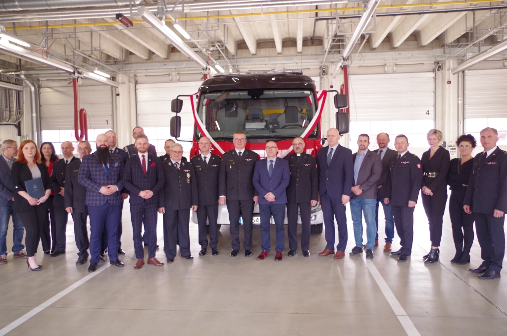 W uroczystości przekazania samochodu pożarniczego udział wzięli: