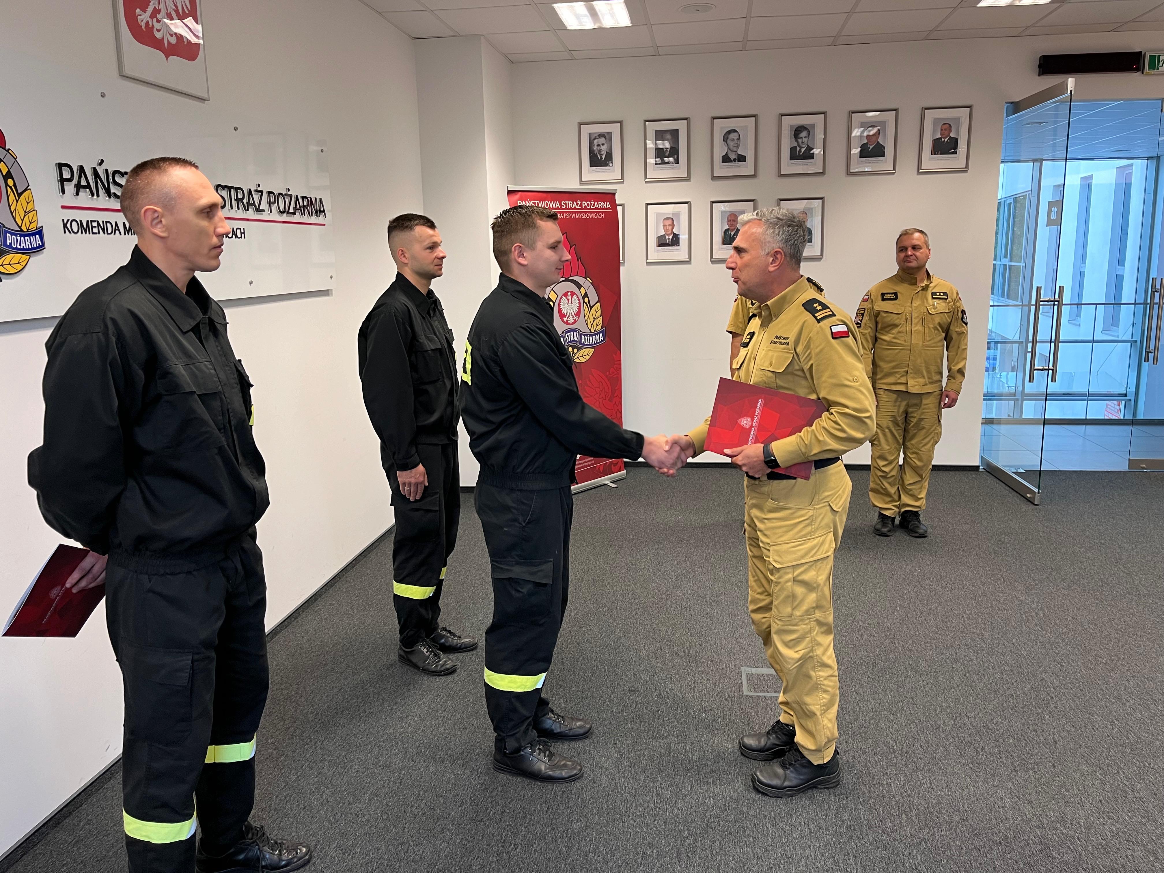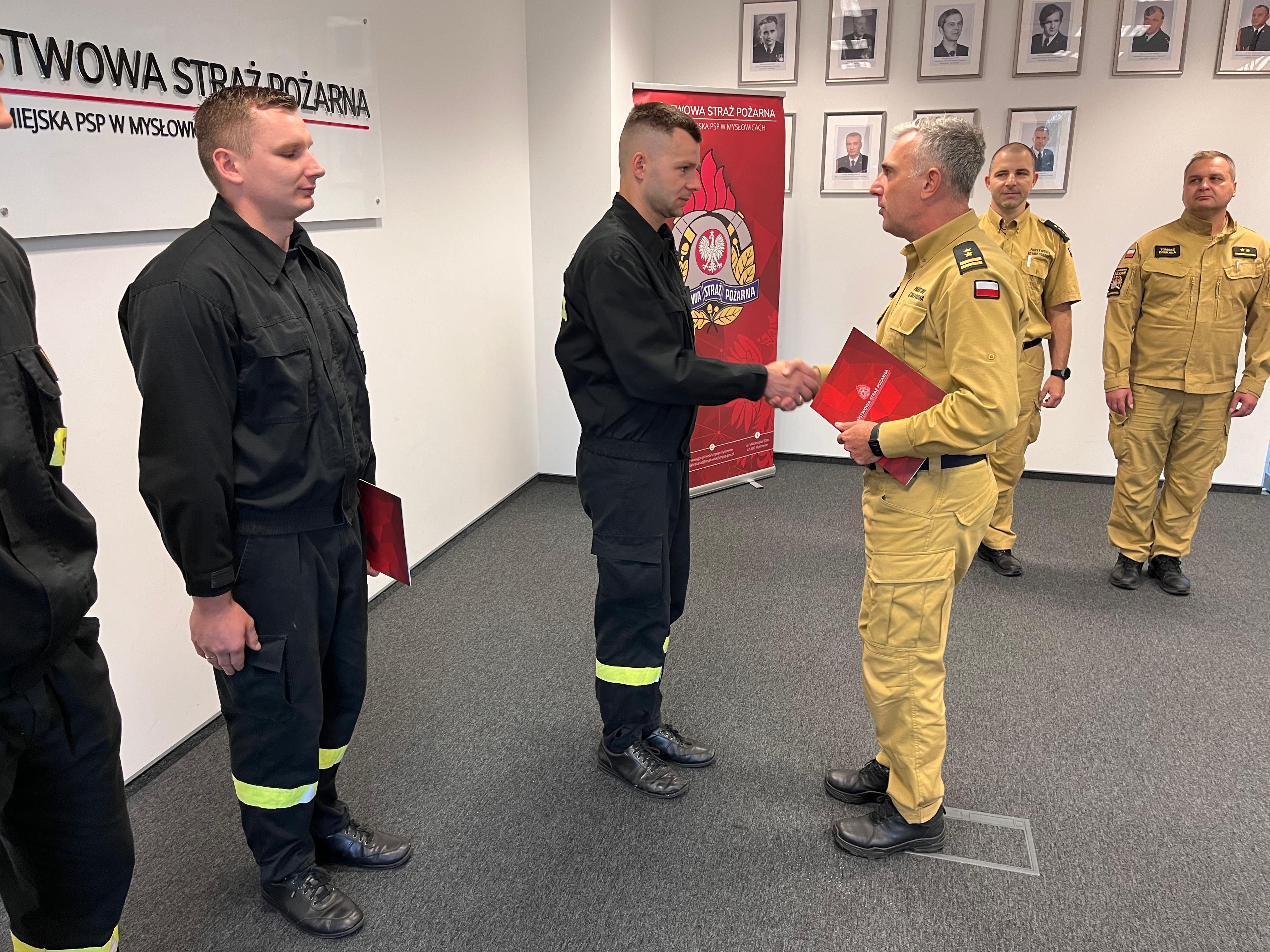 Komendant Miejski bryg. Rafał Pietrzyk pogratulował funkcjonariuszom za udział i reprezentowanie Komendy Miejskiej Państwowej Straży Pożarnej w Mysłowiach: