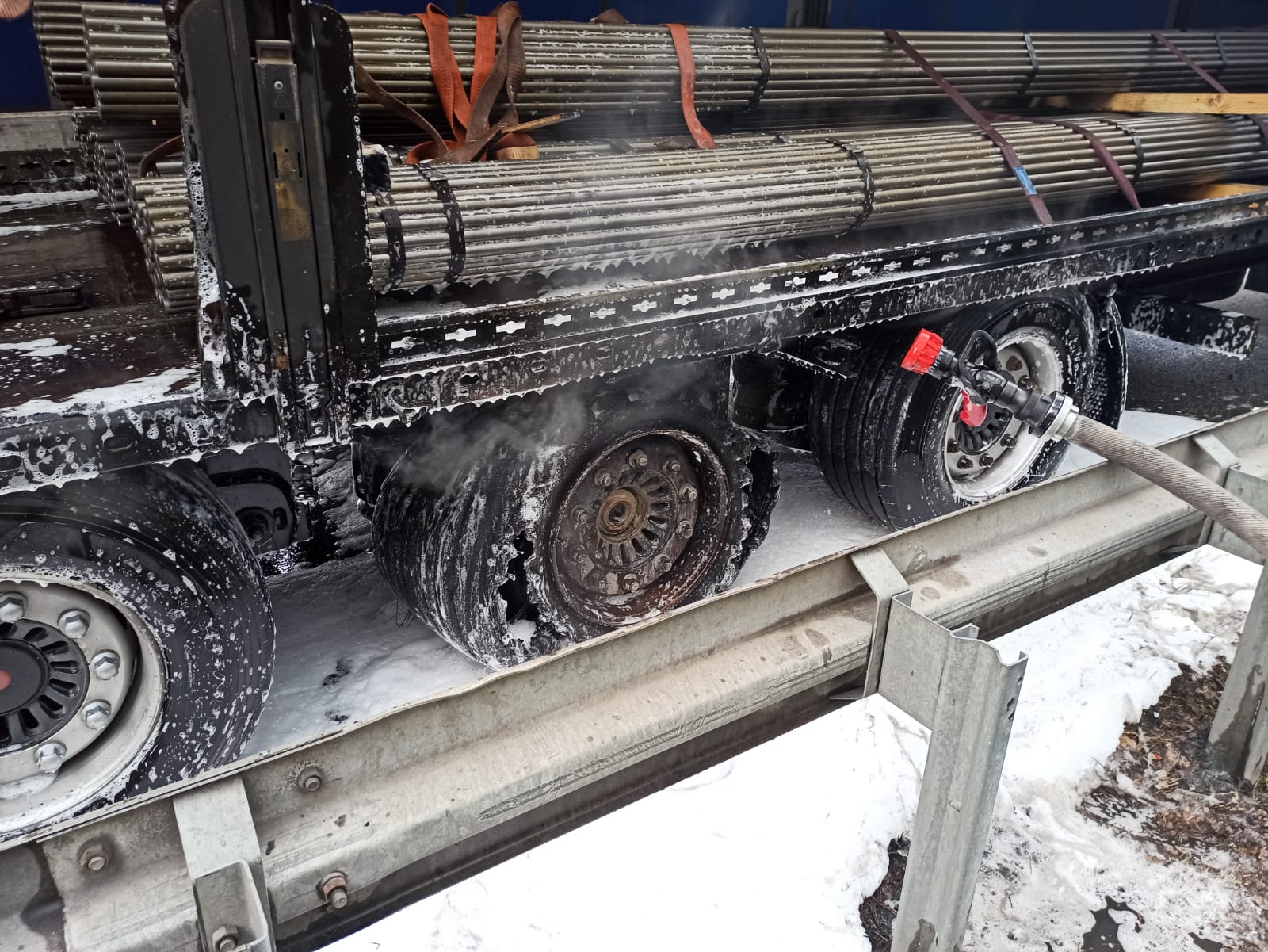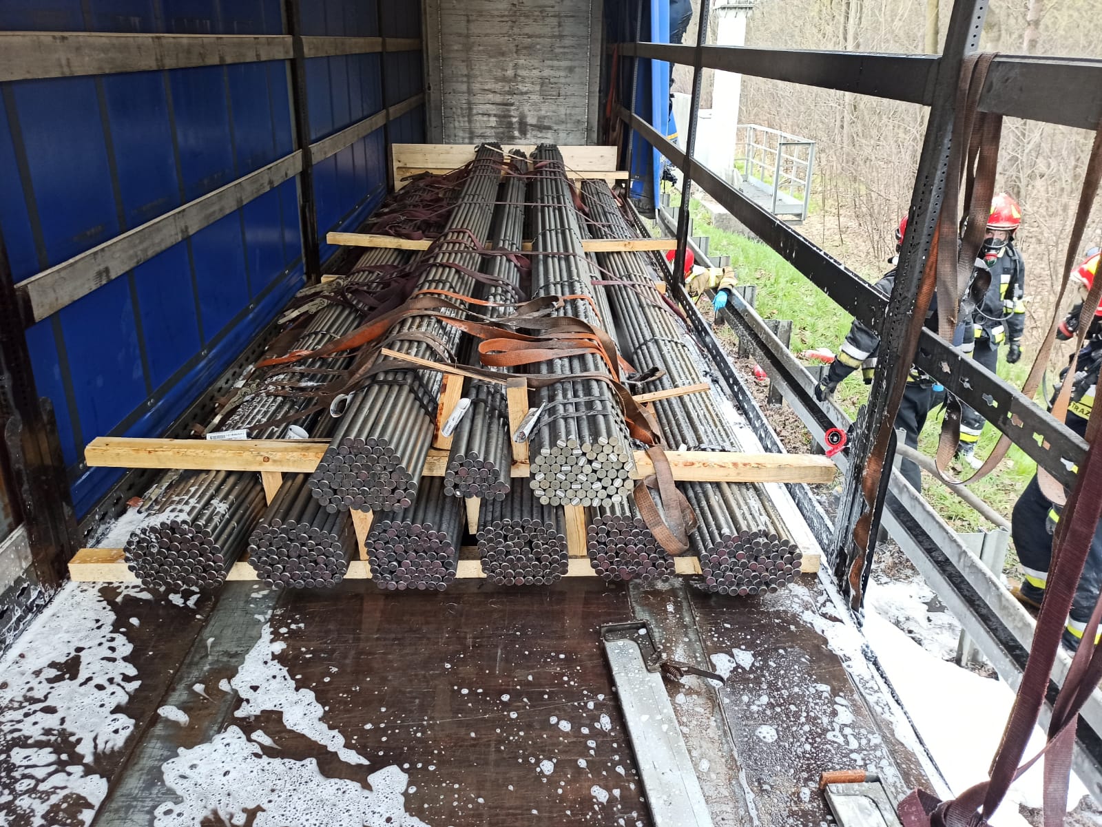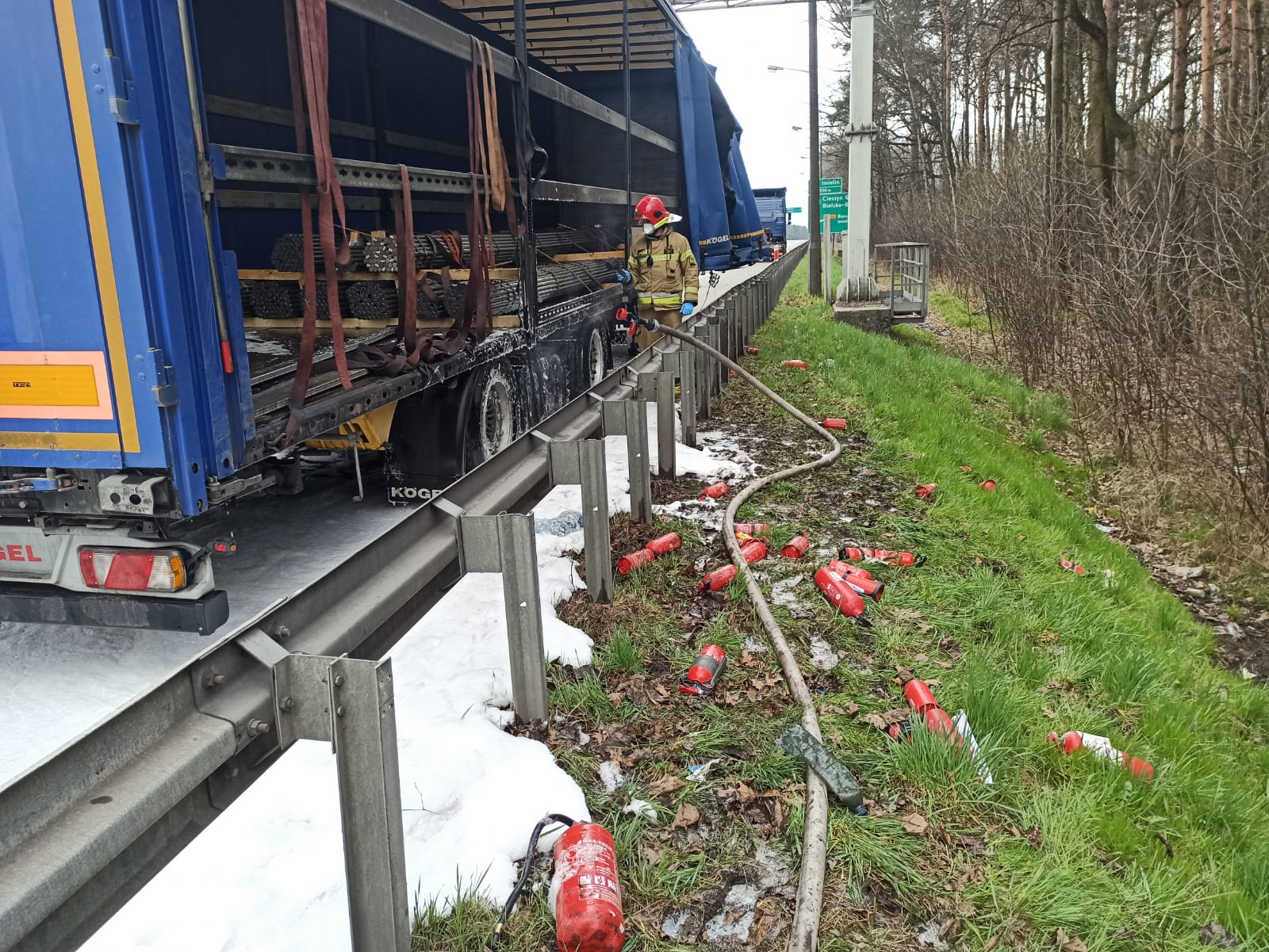 W dniu 23.04.2021 o godzinie 15:15 mysłowiccy strażacy zostali wezwali do pożaru naczepy samochodu ciężarowego na trasie S1. Po przybyciu na miejsce zdarzenia i przeprowadzeniu rozpoznania stwierdzono, że kierowca zatrzymał zestaw na poboczu trasy S1 w kierunku na Tychy i odpiął palącą się naczepę od ciągnika siodłowego. Pożarem objęty był bok naczepy oraz opony. Z uwagi na silne zadymienie został zatrzymany ruch w kierunku na Tychy do czasu ugaszenia pożaru. Podczas zdarzenia nikt nie odniósł obrażeń. W działaniach ratowniczo-gaśniczych brały udział 2 zastępy i 8 strażaków Państwowej Straży Pożarnej oraz 2 zastępy i 7 druhów OSP. Działania zostały zakończone o godz. 18.09. Przyczynę i okoliczności pożaru ustala Policja.