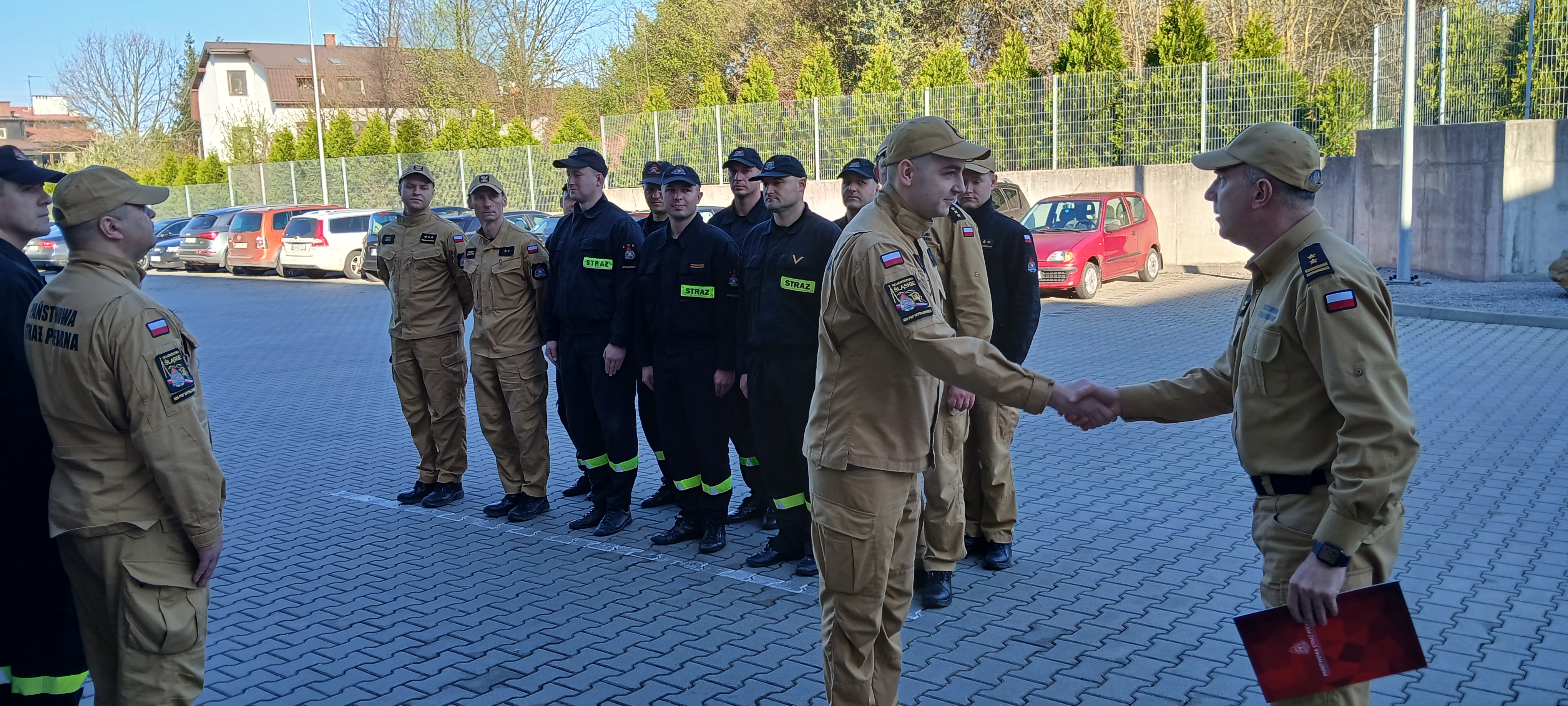 W dniu 04.04.2024 r. na terenie Komendy Miejskiej Państwowej Straży Pożarnej w Mysłowicach podczas zmiany służby, p.o. Komendant Miejski PSP w Mysłowicach bryg. Rafał Pietrzyk złożył podziękowania dla st. asp. Adriana Szymochy za wzorowe zachowanie i godną naśladowania postawę, którą wykazał się w czasie wolnym od służby. W dniu 7 marca 2024 r. st. asp.Adrian Szymocha wraz z sekc. Łukaszem Wołosz z Komendy Powiatowej PSP w Lublińcu, ratowali życie 59-letniego mężczyzny, u którego doszło do nagłego zatrzymania krążenia. Funkcjonariusze wraz z policjantami przez blisko 20 minut prowadzili Resuscytację Krążeniowo - Oddechową do czasu przyjazdu Zespołu Ratownictwa Medycznego, a następnie wspomagali ratowników przy wykonywaniu Medycznych Czynności Ratunkowych. Ich zaangażowanie i profesjonalnie prowadzona przez kilkadziesiąt minut resuscytacja krążeniowo-oddechowa uratowała zdrowie i życie ludzkie.