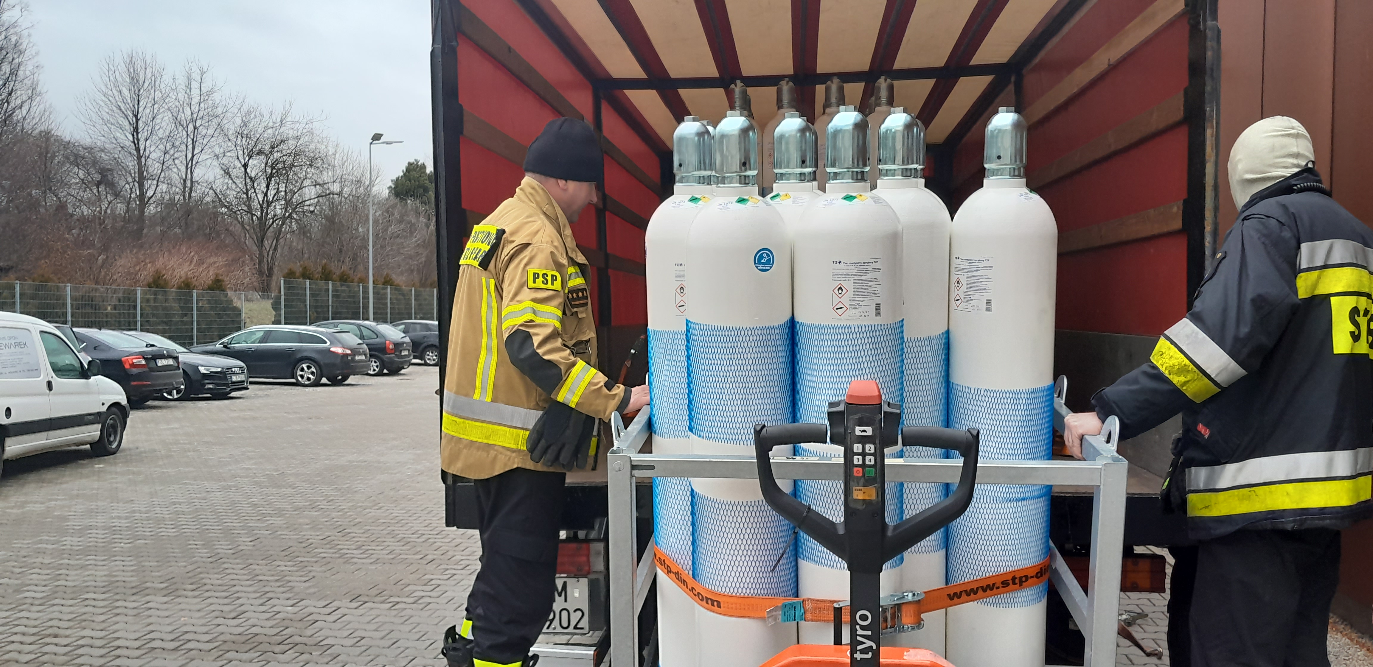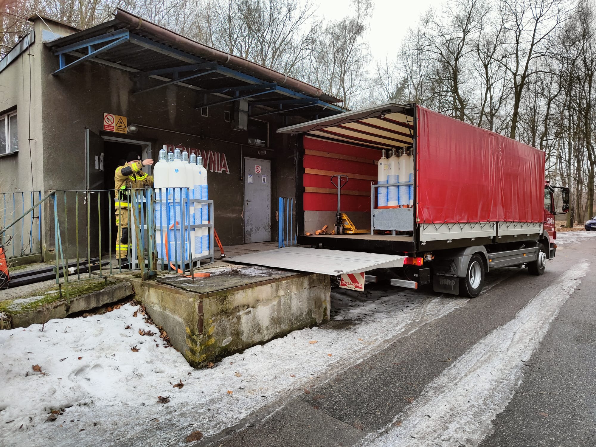 Butle z tlenem medycznym przewożone są z siedziby KM PSP w Mysłowicach, jako jednej z baz zlokalizowanych na terenie jednostek organizacyjnych PSP województwa śląskiego. Jest to rezerwa tlenu przygotowana na potrzeby szpitali oraz zespołów ratownictwa medycznego. W warunkach ogromnych potrzeb, dla ratowania zwiększającej się liczby osób zakażonych ma to podstawowe znaczenie.