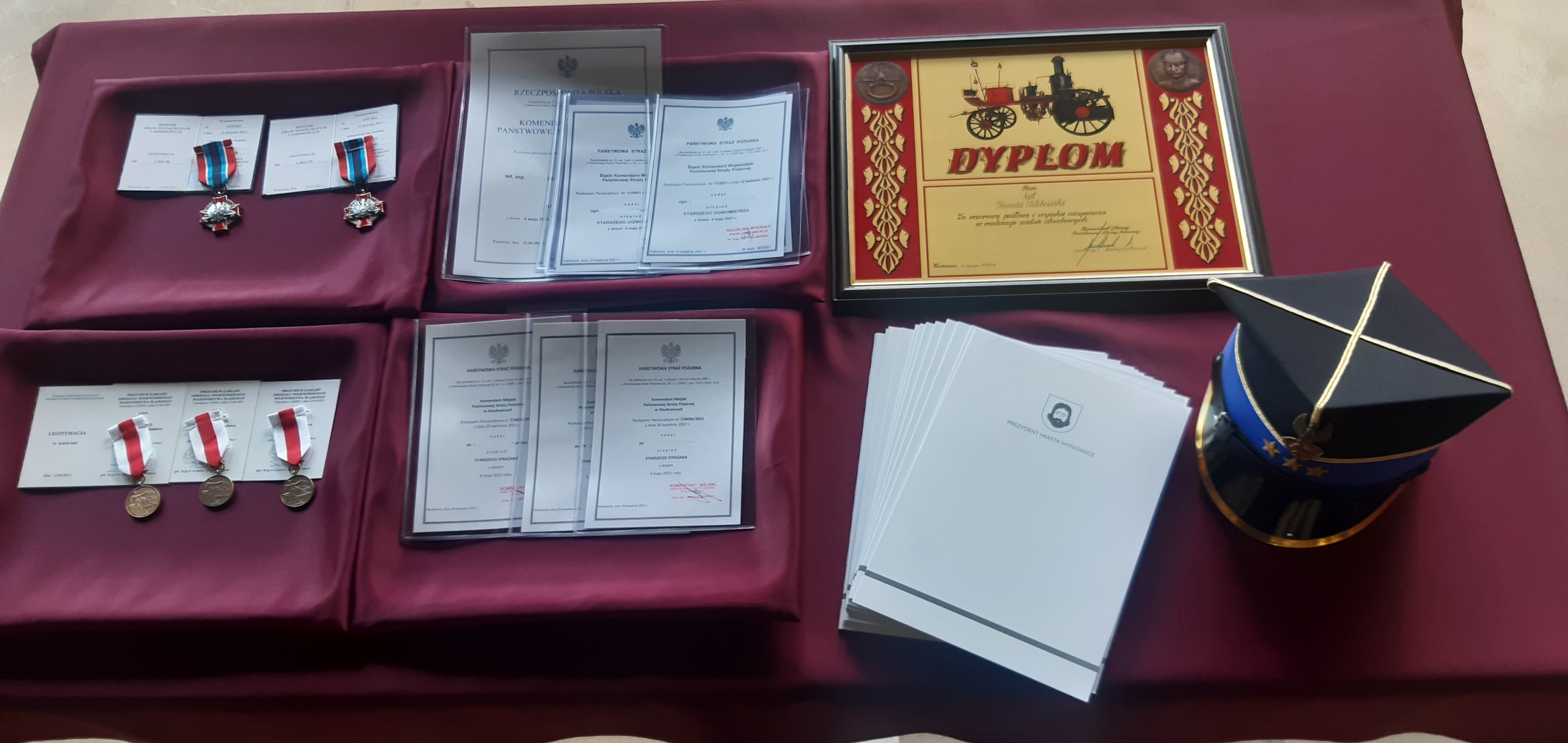W dalszej części uroczystości wręczono odznaczenia, awanse na wyższe stopnie oraz Dyplom Komendanta Głównego przez nadbrygadiera Jacka Kleszczewskiego Śląskiego Komendanta Wojewódzkiego Państwowej Straży Pożarnej oraz bryg. Olgierda Koźmińskiego Komendanta Miejskiego Państwowej Straży Pożarnej w Mysłowicach. Prezydent Miasta Mysłowice za zasługi w realizacji zadań Krajowego Systemu Ratowniczo Gaśniczego na wniosek Komendanta Miejskiego Państwowej Straży Pożarnej w Mysłowicach wyróżnił nagrodami pieniężnymi strażaków i pracowników Komendy Miejskiej Państwowej Straży Pożarnej w Mysłowicach. Nagrody wręczył I Zastępca Prezydenta Miasta Mysłowice Wojciech Chmiel oraz Komendant Miejski Państwowej Straży Pożarnej w Mysłowicach bryg. Olgierd Koźmiński.