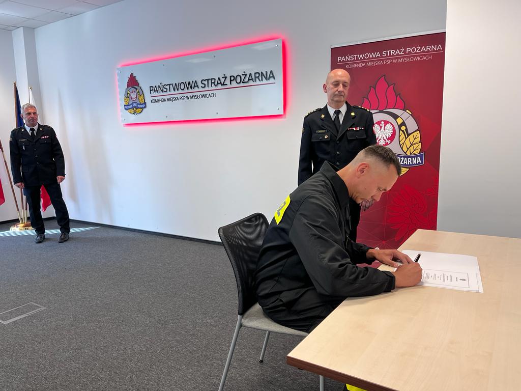 19 lipca 2023 roku w Komendzie Miejskiej Państwowej Straży Pożarnej w Mysłowicach odbyło się uroczyste ślubowanie pięciu strażaków, którzy rozpoczęli służbę w szeregach PSP. Ślubowanie przyjął Komendant Miejski PSP w Mysłowicach st. bryg. Olgierd Koźmiński w obecności funkcjonariuszy Komendy Miejskiej PSP w Mysłowicach.
