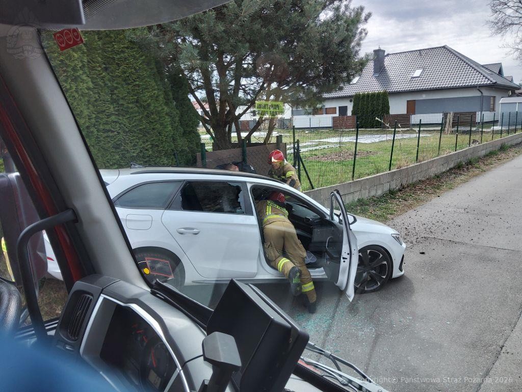 Działania straży pożarnej polegały na: zabezpieczeniu miejsca zdarzenia ,odłączeniu akumulatora w pojeździe, ewakuacji poszkodowanego z pojazdu w ramach KPP. Następnie osoba została przekazana Zespołowi Ratownictwa Medycznego który przetransportował poszkodowanego do Szpitalu w celu dalszych badań.