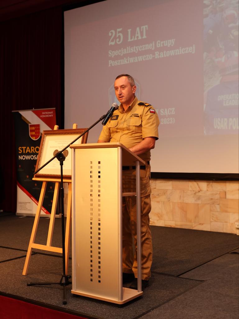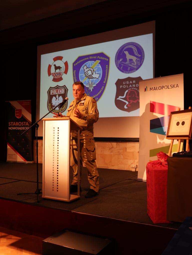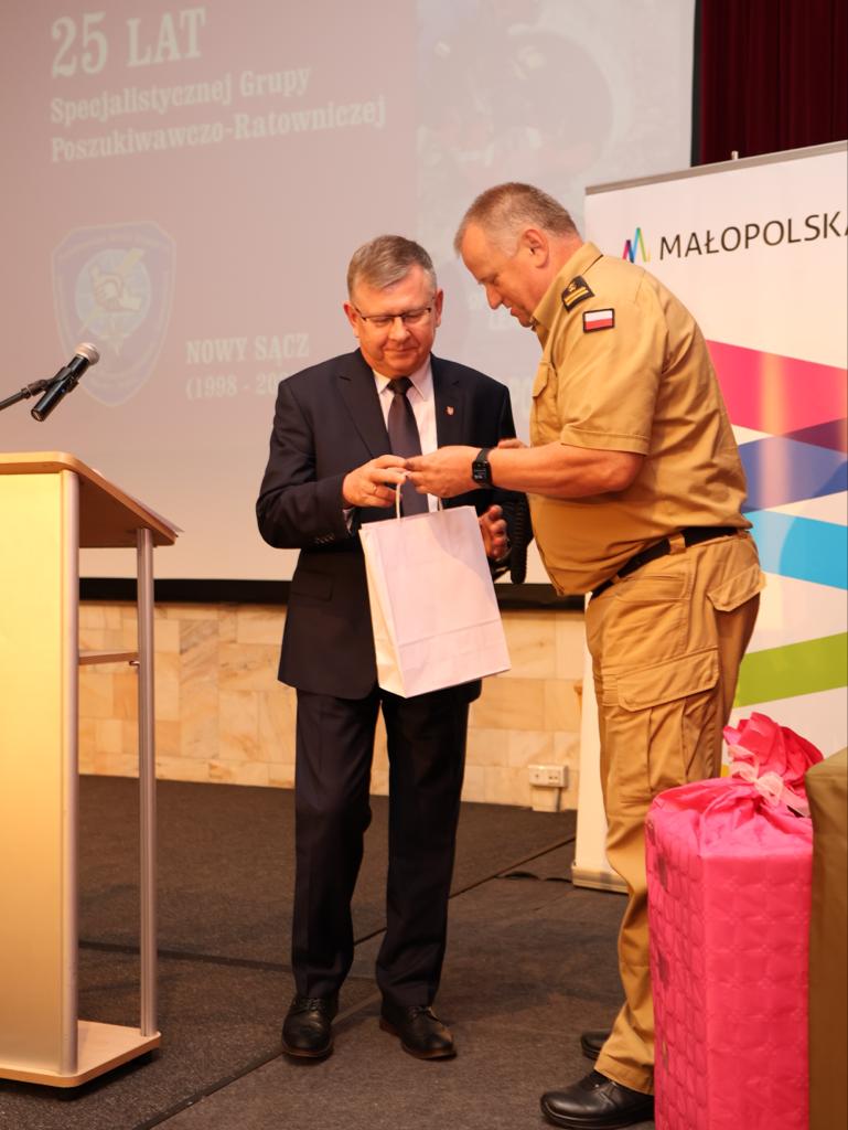Pan Witold Kozłowski, Marszałek Województwa Małopolskiego, przy asyście radnych wojewódzkich, wręczył Grupie Poszukiwawczo-Ratowniczej Nagrodę Województwa Małopolskiego „Polonia Minor”.