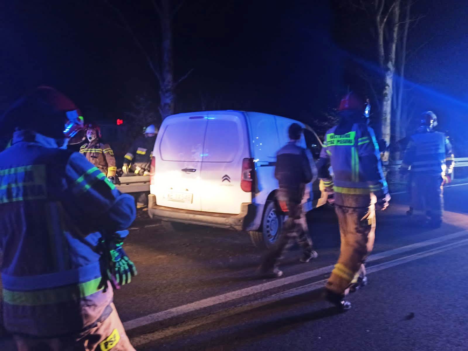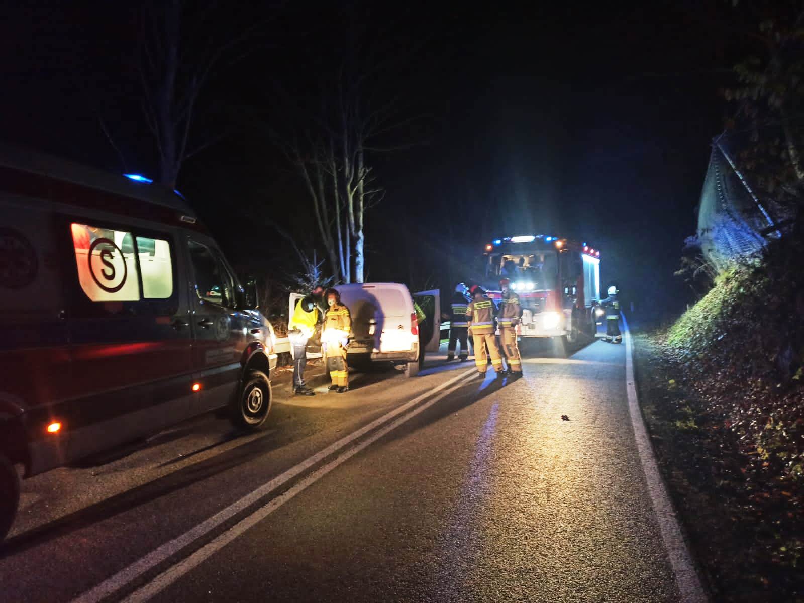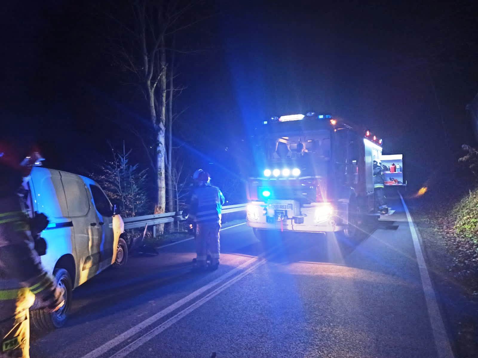 18 listopada około godziny 20.25 zastępy z JRG w Krynicy Zdroju oraz OSP Żegiestów zadysponowane zostały do działań w Żegiestowie. Po przybyciu na miejsce zdarzenia ustalono, że samochód osobowy marki Citroen Berlingo na łuku drogi uderzył w przydrożną barierę. Pojazdem podróżowały dwie osoby dorosłe. Pasażer opuścił pojazd o własnych siłach i nie uskarżał się na dolegliwości. Kierująca pojazdem przebywała w pojeździe i uskarżała się na dolegliwości. Usytuowanie pojazdu wzdłuż drogi stroną kierowcy przy barierze drogowej uniemożliwiało otwarcie drzwi kierowcy. Działania strażaków polegały na zabezpieczeniu miejsca zdarzenia. Do wnętrza pojazdu wszedł strażak, który udzielił pomocy osobie znajdującej się w pojeździe oraz ją zabezpieczył. Samochód ręcznie przepchnięto około 1 metra do tyłu co umożliwiło otwarcie drzwi kierowcy. Wraz z ratownikami pogotowia poszkodowana kobieta została wydobyta na nosze typu deska oraz przekazana zespołowi ratownictwa medycznego. W uszkodzonym pojeździe odłączono akumulator oraz sprawdzono czy nie nastąpiły wycieki, których nie stwierdzono. Na czas tych działań ruch na drodze był całkowicie wstrzymany. Następnie ruch odbywał się wahadłowo. W trakcie działań pasażer zaczął uskarżać się na dolegliwości. Obecni na miejscu ratownicy pogotowia przebadali go. Po przebadaniu pozostał on na miejscu zdarzenia. Poszkodowana kierująca została zabrana do szpitala. Dalsze działania strażaków polegały na kierowaniu ruchem drogowym do czasu przyjazdu pomocy drogowej oraz zabezpieczaniu czynności policyjnych. Na miejscu zdarzenia pozostał zastęp OSP Żegiestów. Działania strażaków trwały prawie trzy godziny.