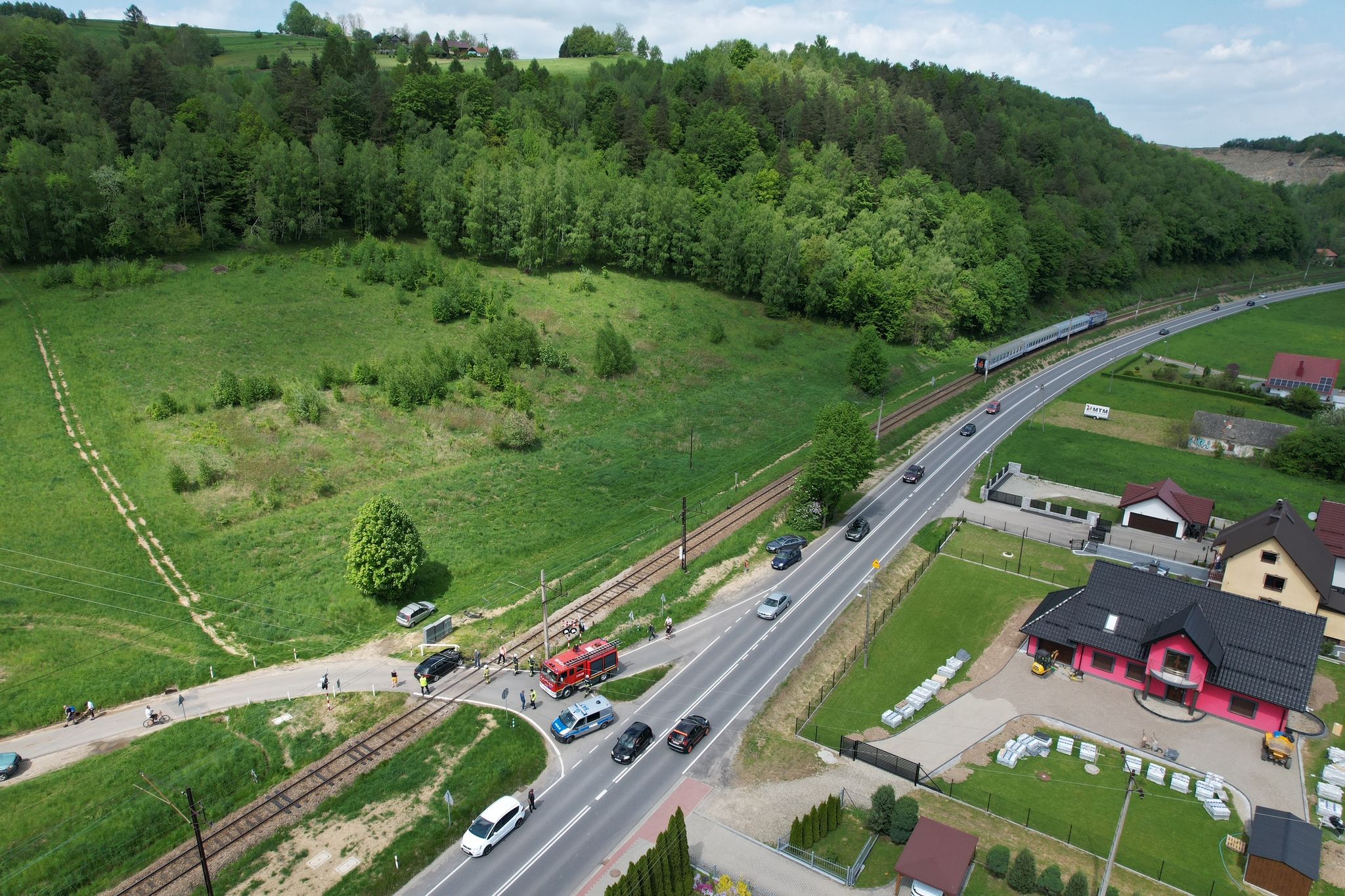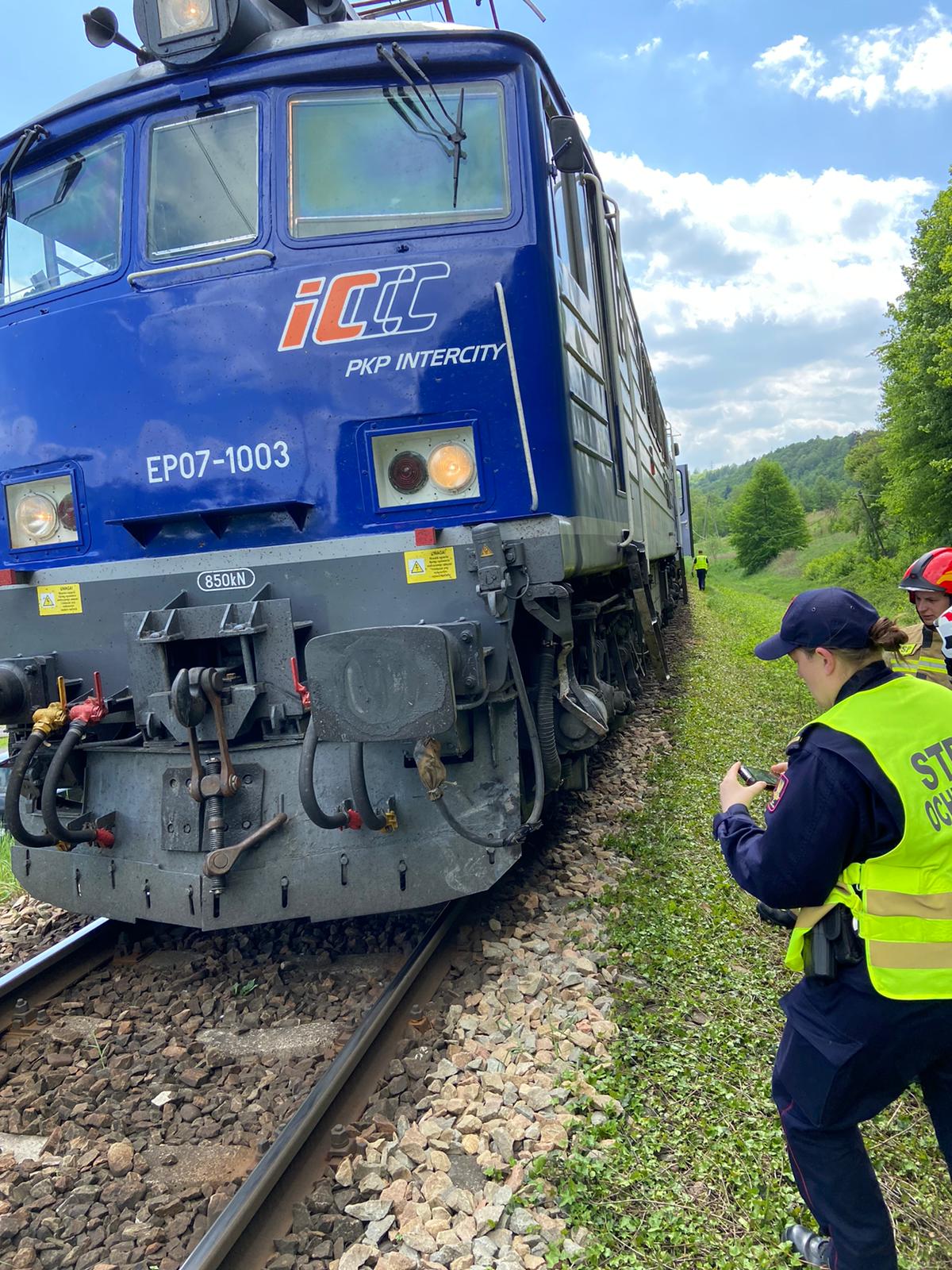 15 maja o godzinie 11.40 zastępy z JRG nr 2 w Nowym Sączu oraz OSP Barcice zadysponowane zostały do działań w Barcicach. Po przybyciu ma miejsce zdarzenia ustalono, że na niestrzeżonym przejeździe kolejowym doszło do zderzenia samochodu osobowego marki Audi A4 z pociągiem PKP Intercity relacji Krynica-Zdrój - Kraków. Pojazd po zderzeniu odbił się od lokomotywy i pozostał na przejeździe kolejowym. Pociąg po nagłym hamowaniu zatrzymał się około 200 metrów dalej. Działania strażaków polegały na zabezpieczeniu miejsca zdarzenia. Ustalono, że samochodem osobowym podróżował sam kierujący, który znajdował się poza pojazdem. Nie miał widocznych obrażeń oraz nie uskarżał się na dolegliwości bólowe. Sprawdzono stan osób podróżujących pociągiem. Z informacji uzyskanych od kierownika pociągu ustalono, że składem podróżowało około 180 osób, które pozostały w składzie pociągu. Nikt nie zgłaszał dolegliwości. W uszkodzonym samochodzie odłączono akumulator , sprawdzono czy nie doszło do wycieków. Dokonano sorpcji niewielkiej ilości rozlanych płynów eksploatacyjnych. Kierujący samochodem osobowym po przebadaniu przez ratowników medycznych Pogotowia Ratunkowego pozostał na miejscu zdarzenia. Po zakończeniu czynności dochodzeniowych udzielono pomocy w zebraniu rozrzuconych elementów pojazdu oraz usunięciu uszkodzonego samochodu na pobocze. Działania strażaków trwały ponad godzinę.