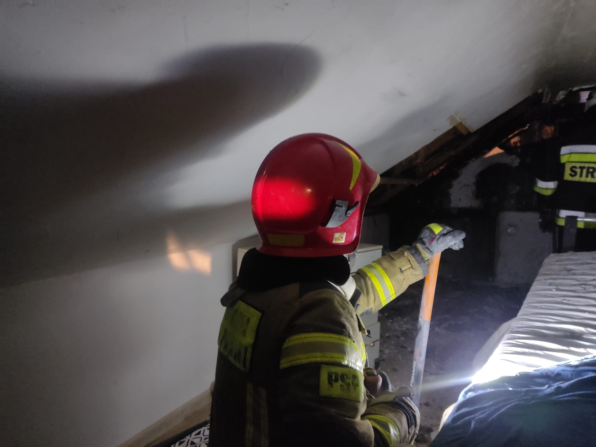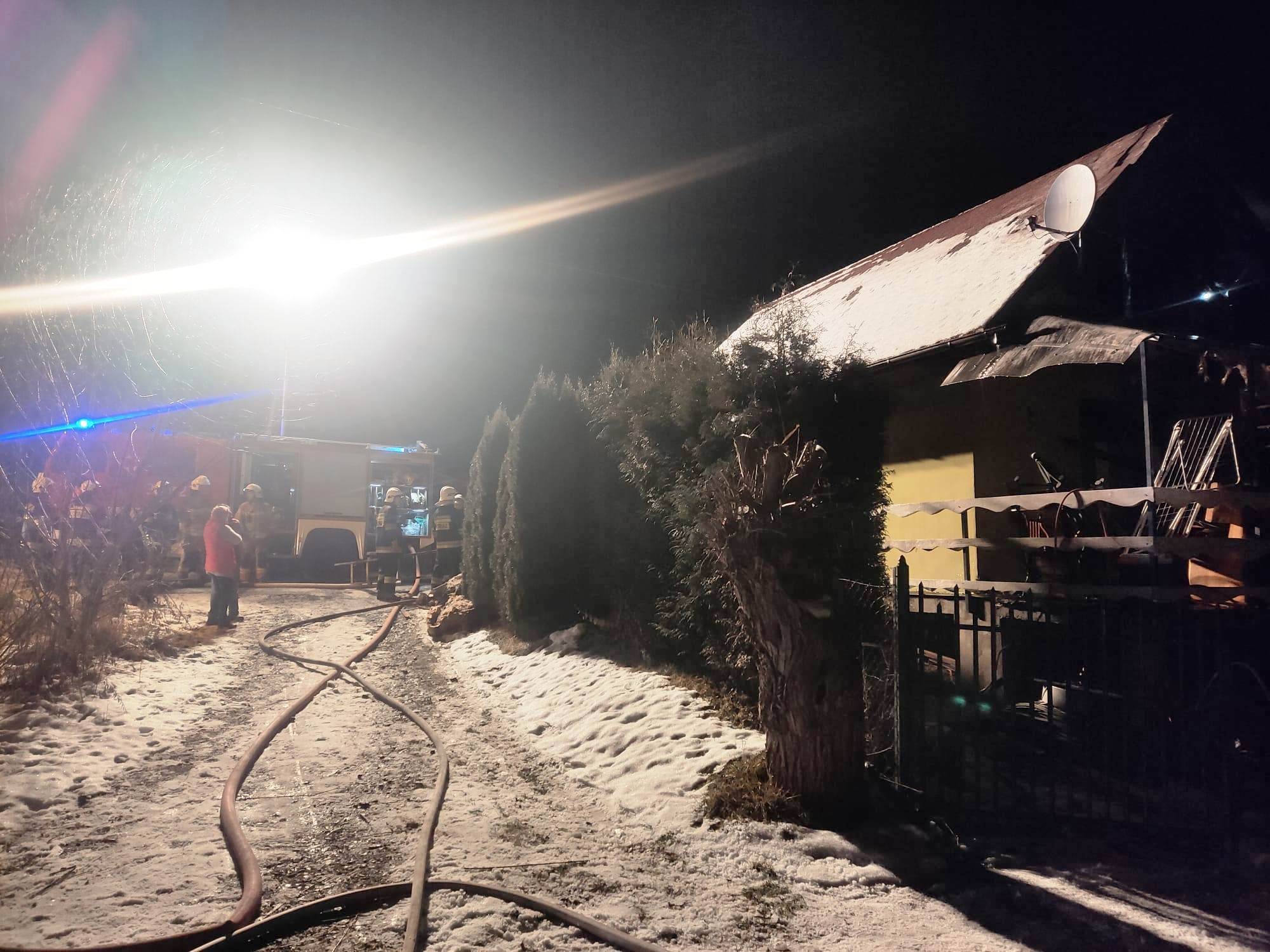 11 grudnia o godzinie 4.10 zastępy z JRG nr 1 w Nowym Sączu, OSP Biała Niżna oraz OSP Stróże zadysponowane zostały do działań w Białej Niżnej. Po przybyciu na miejsce zdarzenia ustalono, że palił się domek letniskowy. W chwili powstania pożaru przebywało w nim dwie osoby, które opuściło budynek przed przyjazdem straży, nie uskarżając się na żadne dolegliwości. Pożarem objęta była cześć więźby dachowej, poddasza oraz elewacji budynku. Wewnątrz panowało silne zadymienie. Nie było widocznych płomieni a pożar rozwijał się między pokryciem dachowym, a warstwą wełny mineralnej i płyt gipsowo-kartonowych. Wewnątrz znajdowała się butla 11kg propan-butan. Działania strażaków polegały na zabezpieczeniu miejsca zdarzenia, odłączeniu prądu wewnątrz budynku oraz podaniu jednego prądu gaśniczego na palący się dach. Dalsze działania polegały na zbudowaniu drugiego prądu gaśniczego i wprowadzeniu roty ratowników na poddasze oraz dokonaniu prac rozbiórkowych. Wszystkie elementy przelewano na bieżąco wodą. Sprawdzono kamerą termowizyjną poddasze oraz dach nie stwierdzając obecności zarzewi ognia. Przybyłe na miejsce Pogotowie Energetyczne dokonało odłączenia zasilania na posesji. Działania strażaków trwały dwie godziny. Przyczyna pożaru jest nieustalona.