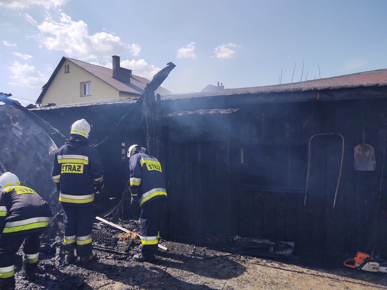 Biała Niżna – pożar drewnianego garażu oraz wiat