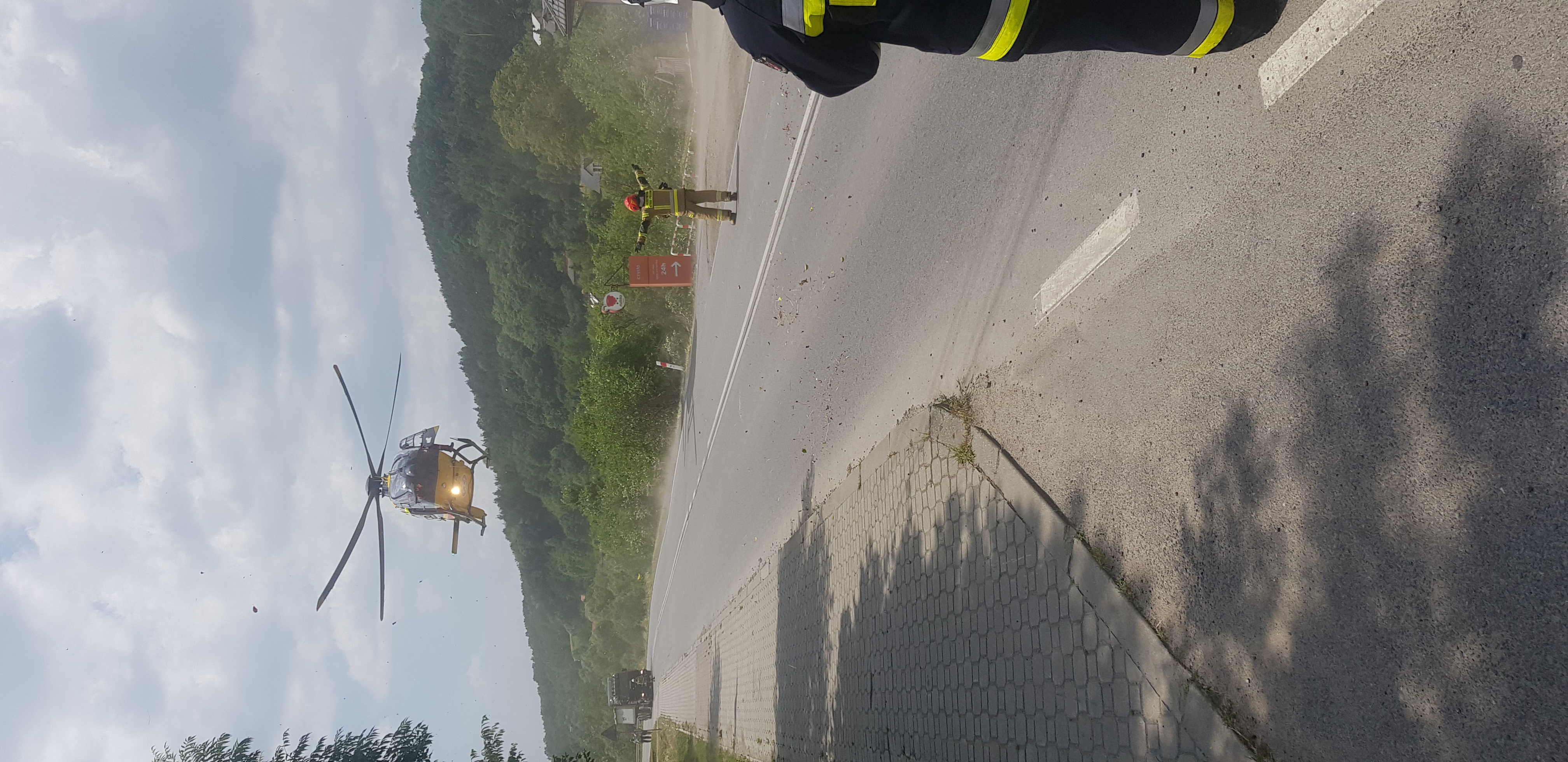 24 czerwca o godzi nie 12.17 zastępy z JRG nr 1 w Nowym Sączu, OSP Biała Niżna oraz OSP Grybów Biała zadysponowane zostały do działań w Białej Niżnej. Po przybyciu na miejsce zdarzenia stwierdzono, że doszło do zderzenia samochodu dostawczego i motocykla. Poszkodowany został kierujący motocyklem. Osoba poszkodowana zaopatrywana była przez załogę karetki Pogotowia ratunkowego. Na miejsce przeleciał śmigłowiec LPR, który zabrał osobę poszkodowaną do szpitala.