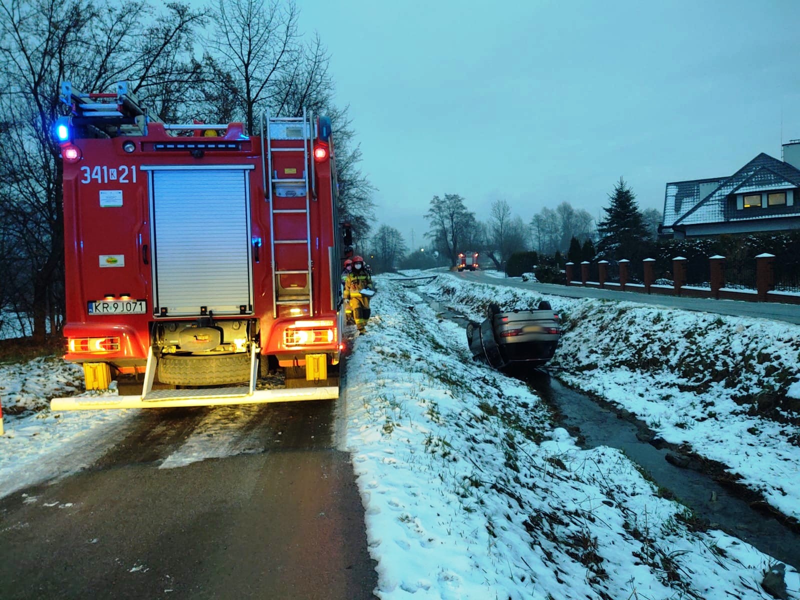 10 grudnia o godzinie 6.56 zastępy z JRG nr 1 w Nowym Sączu oraz OSP Niskowa zadysponowane zostały do działań w Biczycach Dolnych. Po przybyciu na miejsce zdarzenia ustalono, że samochód osobowy Toyota znajdował się na dachu w korycie cieku wodnego. Samochodem podróżowała jedna osoba, która znajdowała się poza pojazdem na drodze i nie uskarżała się na żadne dolegliwości. Działania strażaków polegały na zabezpieczeniu miejsca zdarzenia oraz zamknięciu drogi gminnej. Pojazd pozostający w cieku sprawdzono pod kątem ewentualnych wycieków płynów eksploatacyjnych. Osoba kierująca pojazdem po przebadaniu przez ratownika karetki Pogotowia ratunkowego pozostała na miejscu zdarzenia. W związku z brakiem możliwości dotarcia do komory silnika i rozłączenia akumulatora postawiono pojazd na koła. Użyto do tego celu wciągarkę samochodową. Pojazd postawiono i wyciągnięto z cieku wodnego na drogę. Działania strażaków trwały godzinę.