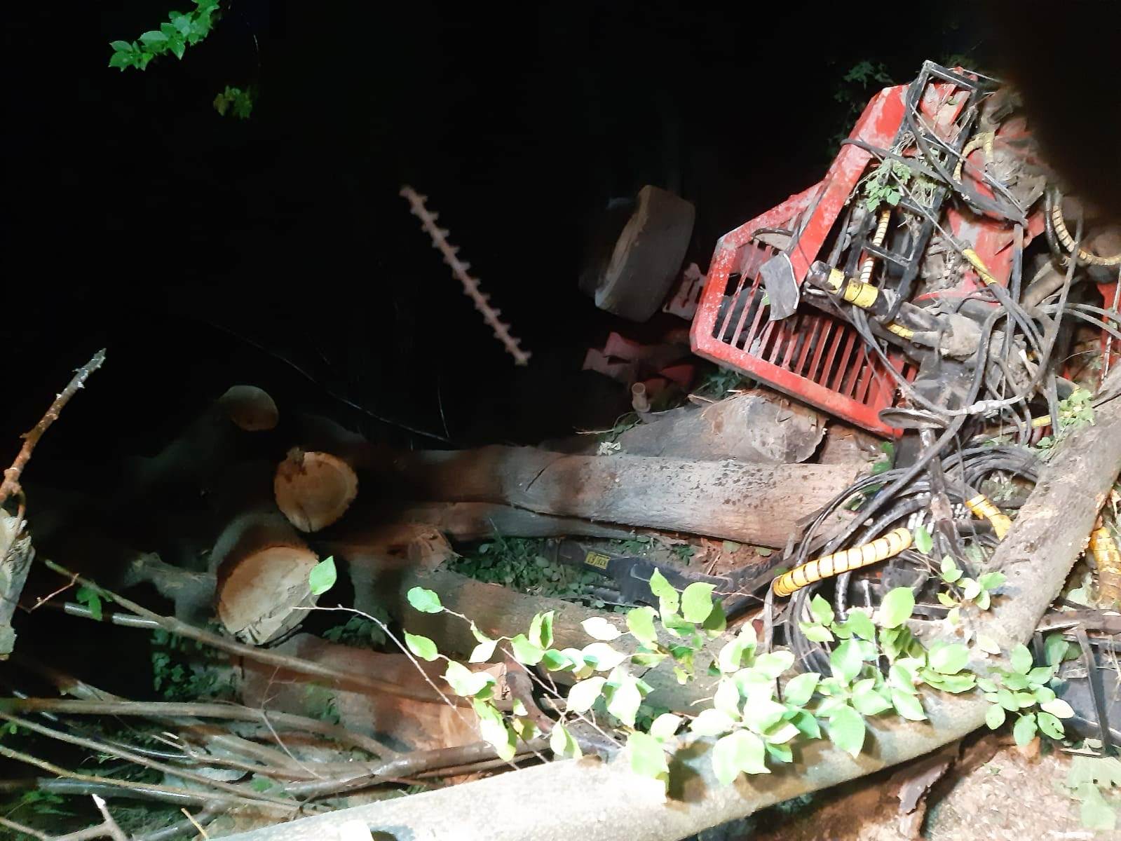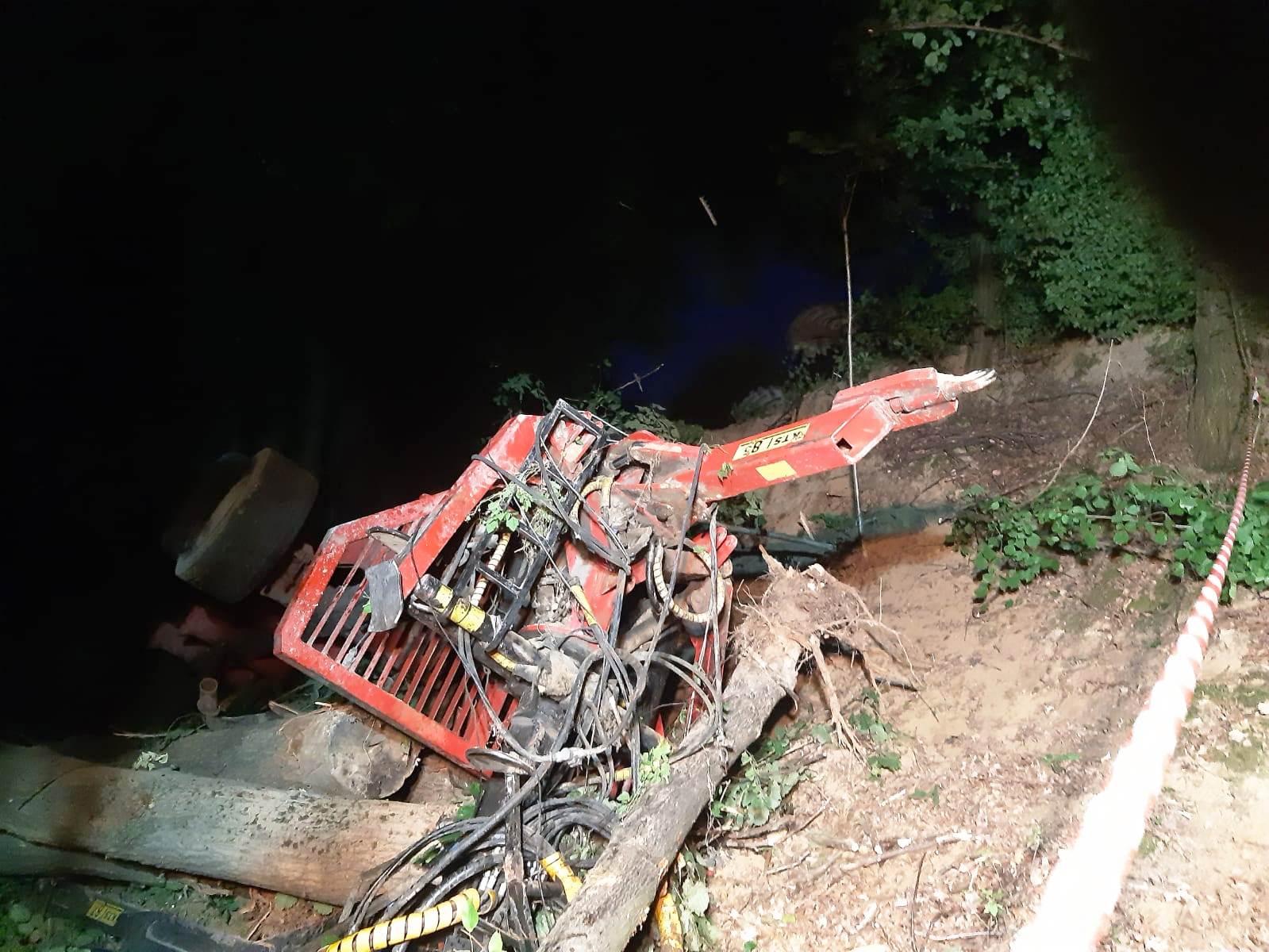 21 czerwca o godzinie 20.39 zastępy z JRG nr 1 w Nowym Sączu, OSP Tęgoborze oraz OSP Łososina Dolna zadysponowane zostały do działań w Bilsku. Po przybyciu na miejsce zdarzenia ustalono, że na drodze w terenie zalesionym, ciągnik rolniczy wraz z przyczepą z drewnem, w wyniku nieustalonych przyczyn stoczył się częściowo do wąwozu. Pod przyczepą przygnieciony elementem ramy nośnej znajdował się kierowca ciągnika rolniczego, który nie miał oznak życia. Widoczne były pewne oznaki śmierci. Z ciągnika rolniczego w wyniku uszkodzenia zbiornika, nastąpił wyciek oleju napędowego. Ze względu na trudne warunki terenowe brak było możliwości dojazdu do miejsca zdarzenia samochodami pożarniczymi. Działania strażaków polegały na zabezpieczeniu miejsca zdarzenia, odłączeniu klem akumulatora w ciągniku oraz oświetlenie miejsca zdarzenia. Dalsze działania polegały na zasypaniu sorbentem rozlane paliwo. Podłożono pojemnik pod lejące się z baku paliwo i zebrano je do beczek zorganizowanych przez okolicznych mieszkańców. Odgrodzono miejsce zdarzenia przy użyciu taśm ostrzegawczych. Kolejne działania polegały na oświetleniu miejsca zdarzenia dla Policji prowadzącej czynności dochodzeniowe. Po zakończonych czynnościach Policji przystąpiono do wyciągnięcia ciała spod przyczepy. Ciało pozostawiono pod dozorem funkcjonariuszy Policji. Działania strażaków trwały prawie pięć godzin.