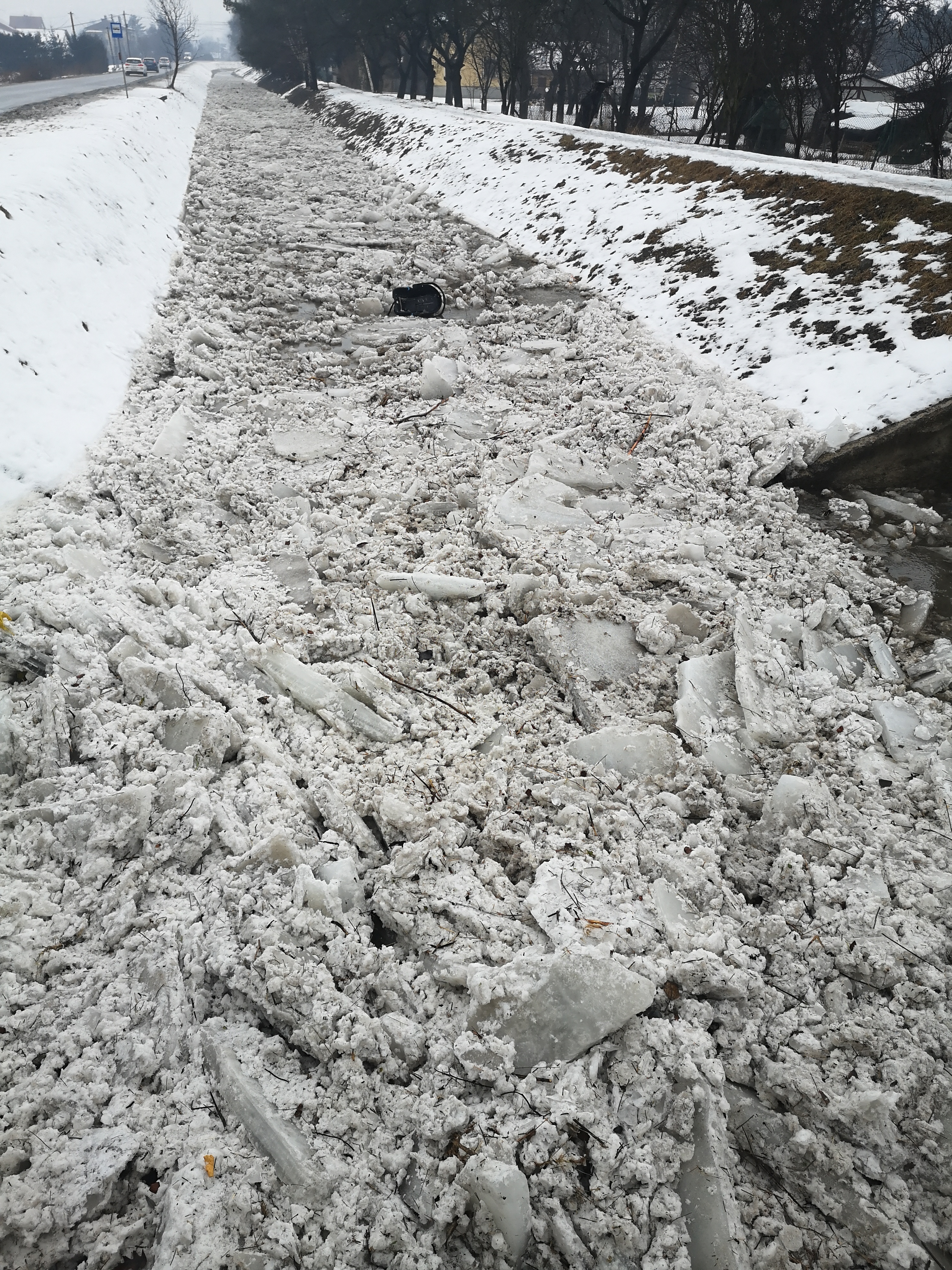 Brzezna - usuwanie zatoru lodowego