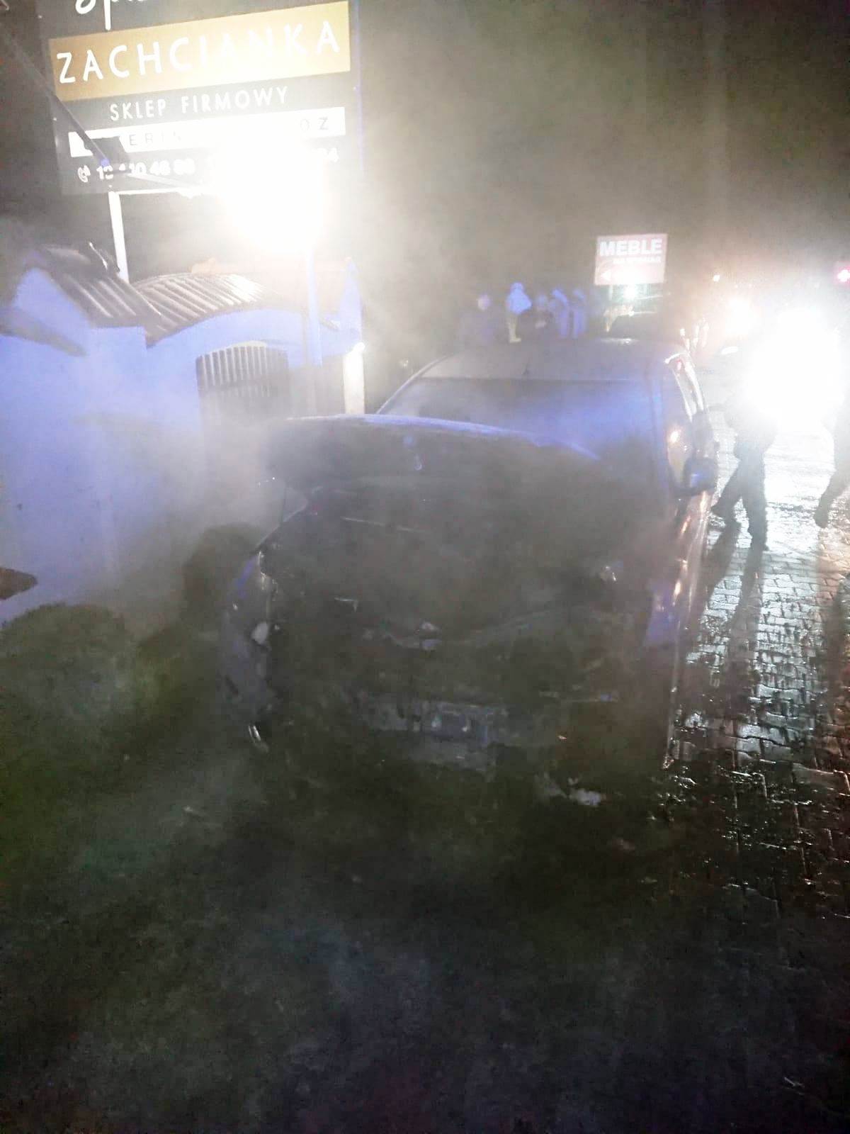 Chełmiec - pożar samochodu osobowego