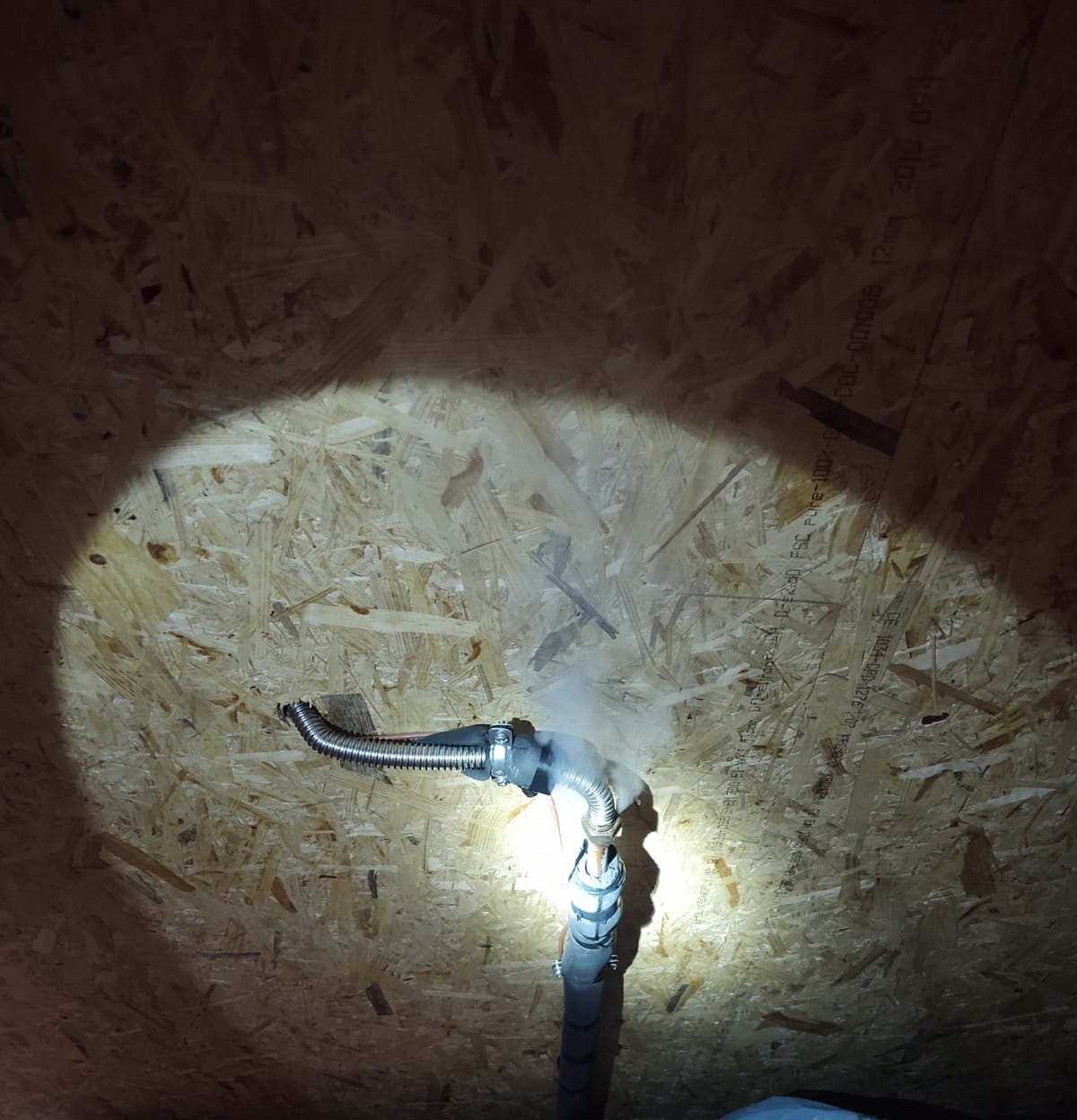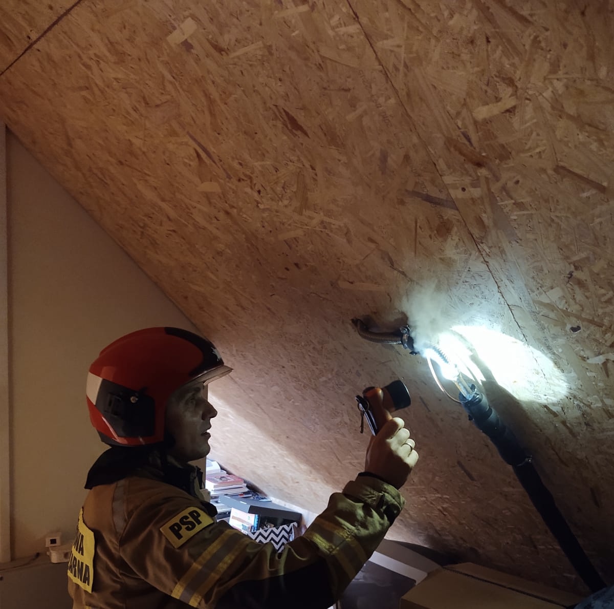 4 sierpnia o godzinie 12.25 zastępy z JRG nr 1 w Nowym Sączu zadysponowane zostały do działań w Chełmcu. Po przybyciu na miejsce zdarzenia ustalono, że na poddaszu budynku mieszkalnego występowało zadymienie. Budynek wyposażony był w instalację fotowoltaiczną i solarną oraz instalację sygnalizacji pożarowej, która sygnalizowała alarm pożarowy. Podczas wystąpienia zdarzenia w budynku nie przebywały żadne osoby. Działania strażaków polegały zabezpieczeniu miejsca zdarzenia oraz ustaleniu, że centralka instalacji pożarowej wskazała zagrożenie na strychu budynku. Odłączono instalację elektryczną w budynku. Zabezpieczeni strażacy weszli na poddasze budynku celem ustalenia zagrożenia. Zlokalizowano nieszczelność w układzie instalacji solarnej, która w wyniku wydostawania się pary z instalacji, doprowadziła do pobudzenia czujki. Otwarto okna na poddaszu celem usunięcia nagromadzanej pary na strychu. Sprawdzono instalacje wodną ogrzewaną przez panele solarne - temperatura w zbiorniku wody wynosiła ponad 100°C. Otwarto krany i spuszczono wodę celem zmniejszenia temperatury wody w zbiorniku. Włączono zasilanie w budynku w celu uruchomienia pompy wody oraz hydroforu. Dokręcono śrubunek w instalacji solarnej celem zmniejszenia nieszczelności. Działania strażaków trwały niespełna godzinę.
