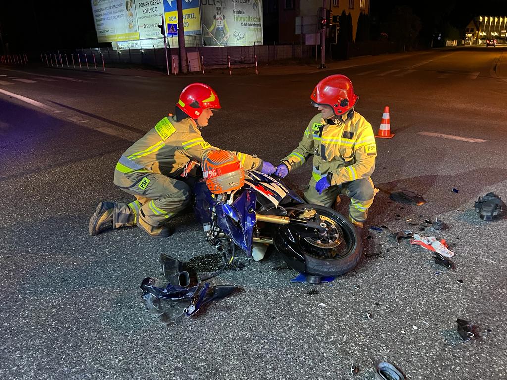 Chełmiec, ul. Limanowska- zderzenie samochodu osobowego i motocykla