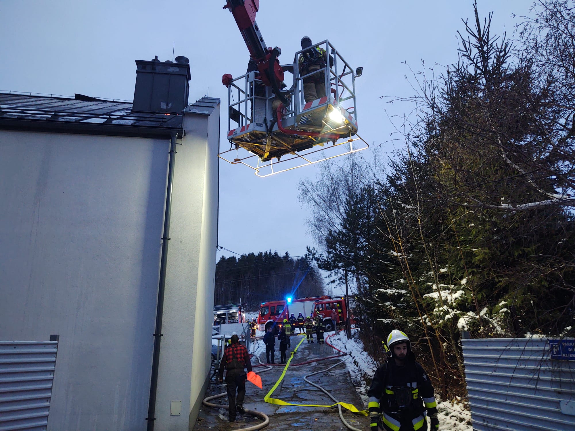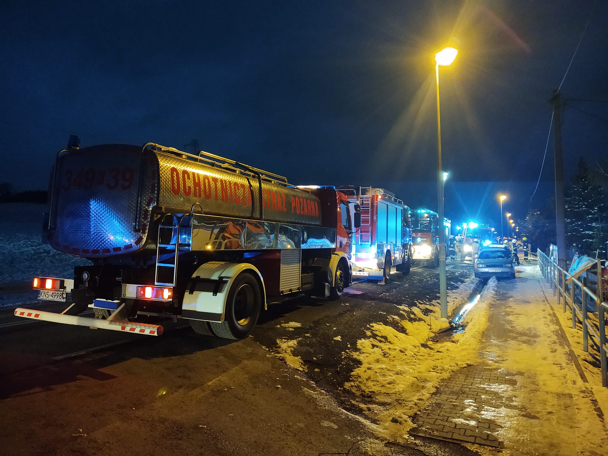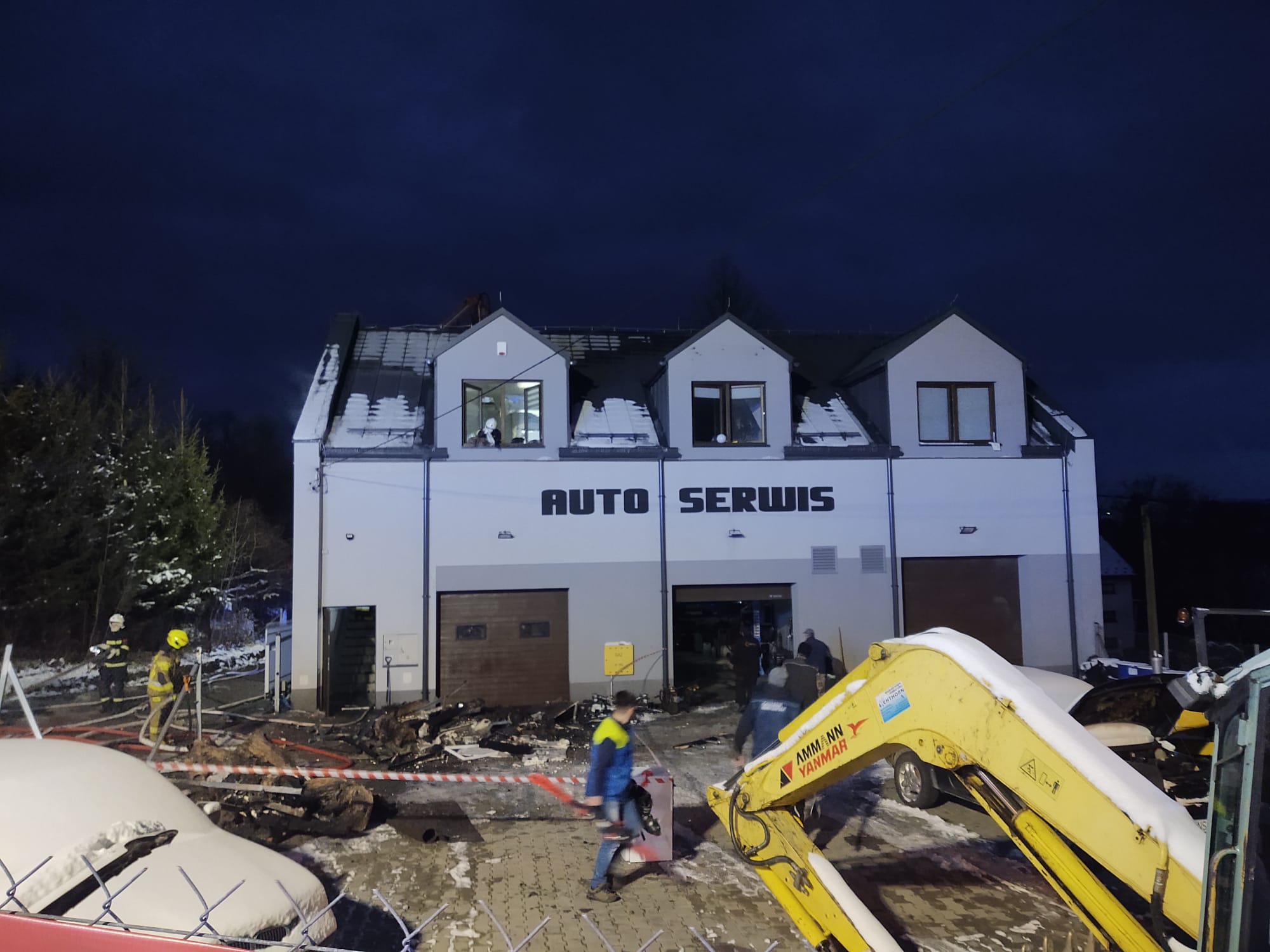 30 listopada o godzinie 14.59 zastępy z JRG nr 1 w Nowym Sączu, OSP Cieniawa, OSP Ptaszkowa oraz OSP Mystków zadysponowane zostały do działań w Cieniawie. Po przybyciu na miejsce zdarzenia stwierdzono, że pożar powstał w piętrowym, murowanym budynku znajdującym się około 20 metrów od drogi krajowej nr 28. Parter budynku stanowi warsztat samochodowy. W chwili przyjazdu na miejsce zastępów straży pożarem objęta była część poddasza z której wydobywały się na zewnątrz płomienie. W czasie powstania pożaru w warsztacie przebywali pracownicy, którzy nie odnieśli widocznych obrażeń i nie uskarżali się na żadne dolegliwości. Działania zastępów straży polegały na zabezpieczeniu miejsca zdarzenia oraz wyłączeniu zasilania w energie elektryczną oraz zakręceniu zaworu z gazem. Podano dwa prądy wody na dach budynku. Do wnętrza budynku weszli strażacy wyposażeni w sprzęt ochrony dróg oddechowych i kamerę termowizyjną. Podano prąd wody do wnętrza po klatce schodowej. Po przygaszeniu pożaru wykonano niezbędne prace rozbiórkowe. Wykonywano je przy użyciu podnośnika hydraulicznego. Przez około dwie godziny dozorowano miejsce pożaru. Sprawdzono budynek pry użyciu kamery termowizyjnej. Działania 9 zastępów straży i 39 strażaków trwały prawie cztery godziny. Przyczyna pożaru jest nieustalona.
