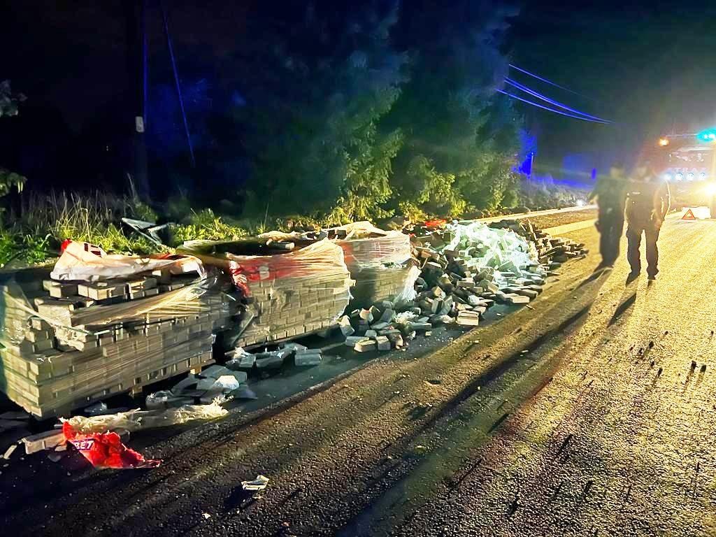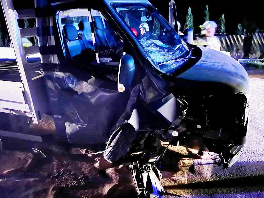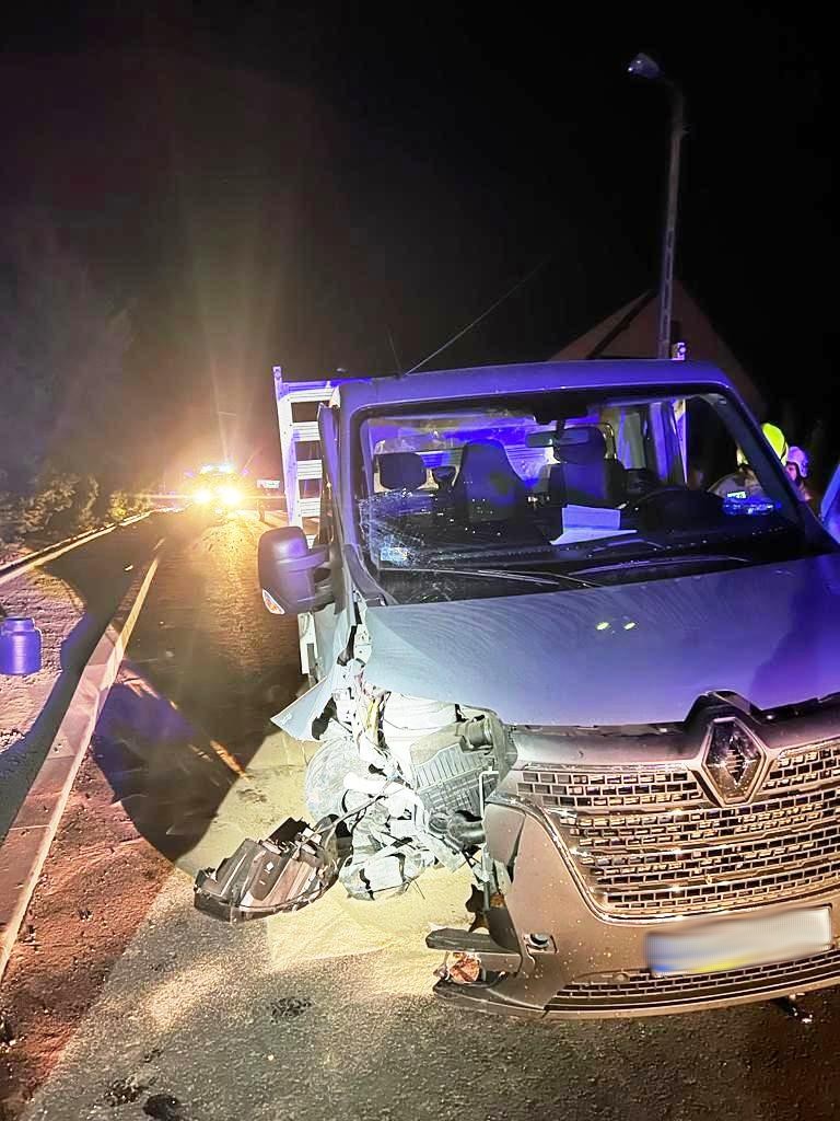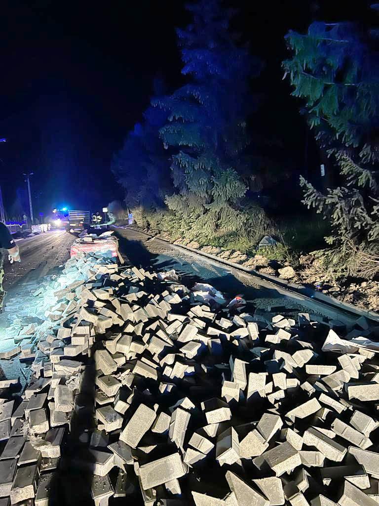 Cieniawa- samochód dostawczy uderzył w palety z kostką brukową