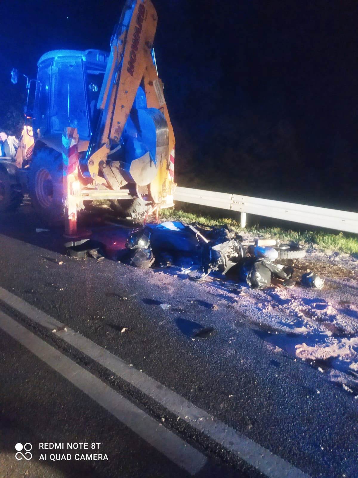 Cieniawa-śmiertelne zderzenie motocykla z koparką