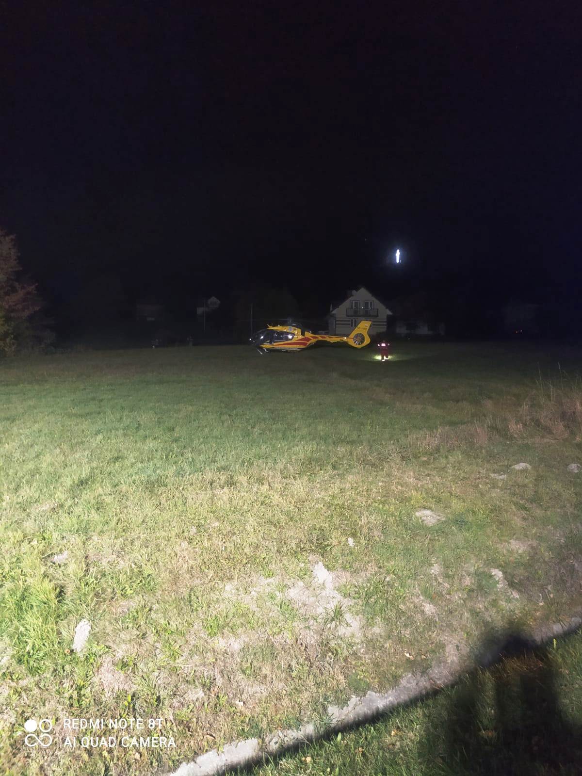18 października o godzinie 18.18 zastępy z JRG nr 1 w Nowym Sączu oraz OSP Cieniawa zadysponowane zostały do działań w Cieniawie. Po przybyciu na miejsce zdarzenia stwierdzono, że na łuku drogi krajowej nr 28 doszło do zderzenia koparko ładowarki JCB 3CX i motocykla KTM 990. Motocyklem i koparką jechali sami kierujący. Kierujący motocyklem znajdował się na jezdni z licznymi obrażeniami. Kierujący koparko ładowarką nie uskarżał się na żadne dolegliwości. Z motocykla nastąpił wyciek paliwa oraz płynów eksploatacyjnych. Działania zastępów straży pożarnej polegały na zabezpieczeniu miejsca zdarzenia, zablokowaniu całkowicie ruchu na DK 28 oraz udzieleniu pomocy osobie poszkodowanej. Osobę poszkodowaną przejęła przybyła załoga karetki Pogotowia ratunkowego. Dalsze działania strażaków polegały na pomocy ratownikom medycznym Pogotowia ratunkowego. Po wykonaniu niezbędnych czynności mężczyznę ułożono na noszach a następnie przetransportowano go do karetki. Ratownicy w karetce prowadzili resuscytacje. Po długo trwającej resuscytacji motocyklisty nie udało się go uratować, lekarz LPR stwierdził zgon. W trakcie czynności medycznych na miejsce przybyli funkcjonariusze Policji, którzy prowadzili czynności pomiarowe oraz dochodzeniowe. Po wykonaniu niezbędnych czynności przez Policję, motocykl zabrany został przez Pomoc Drogową. Wszystkie pozostałości powypadkowe usunięto na pobocze drogi. Droga DK28 doczyszczono przy użyciu sorbentu.Działania strażaków trwały ponad cztery godziny.