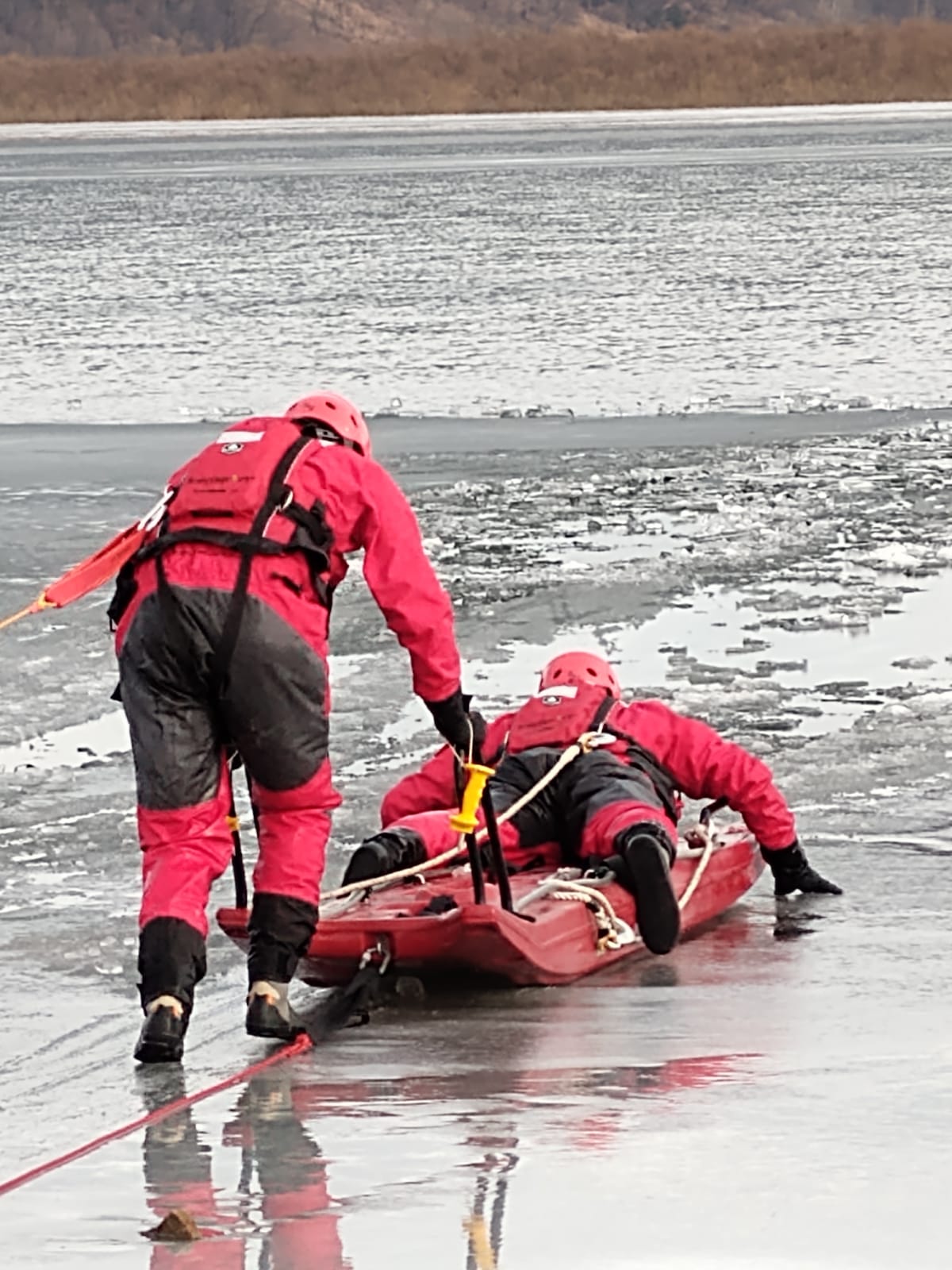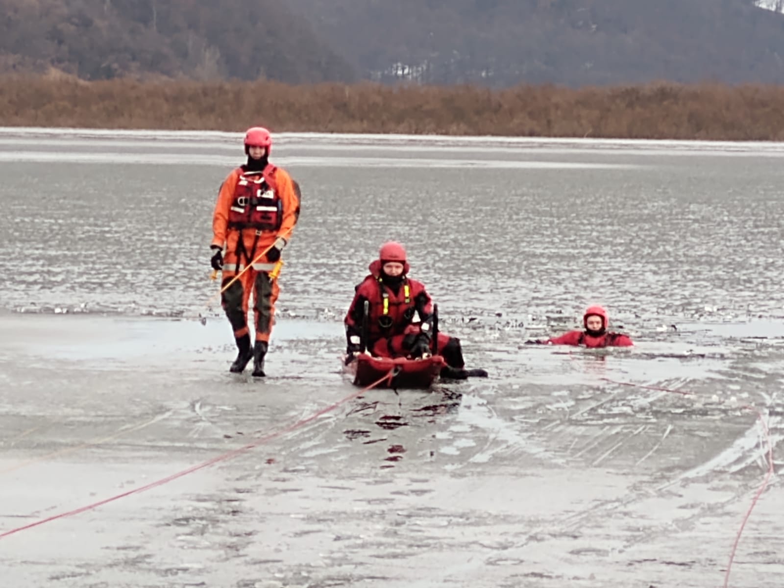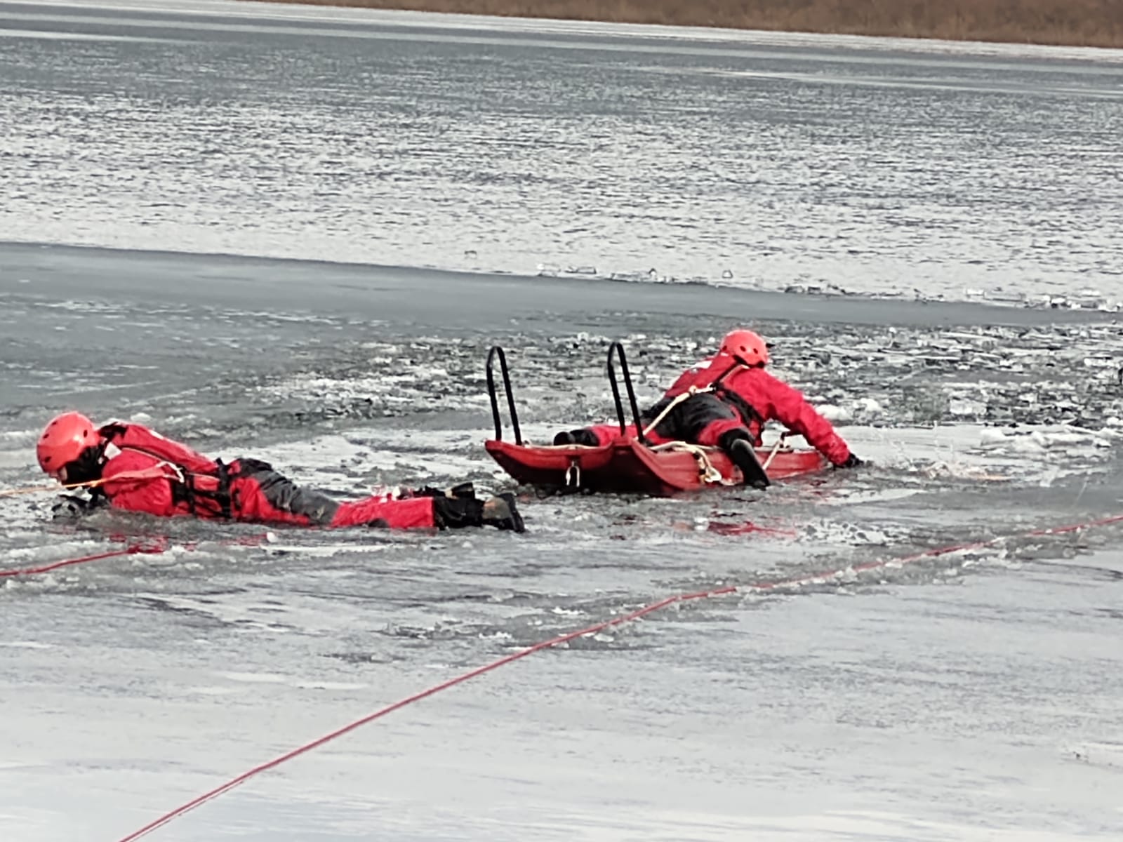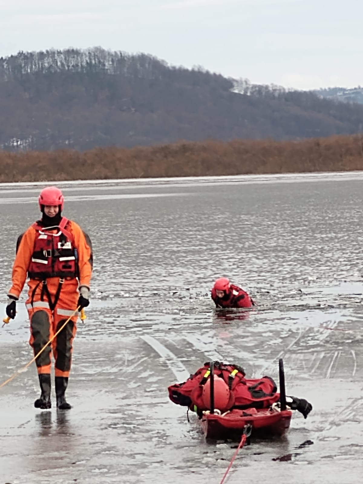 23 stycznia odbyły się zajęcia praktyczne dla jednostek OSP posiadających sanie lodowe z zakresu taktyki działań oraz obsługi sprzętu do „ratownictwa na akwenach zalodzonych”. Zajęcia prowadzone były w trzech miejscach na terenie powiatu tj. na stawach w Starym Sączu dla OSP Nowy Sącz Biegonice, OSP Czerniec, OSP Piwniczna - Zdrój oraz OSP Barcice. Na Jeziorze Rożnowskim w Tęgoborzy dla OSP Tęgoborze, OSP Łososina Dolna, OSP Rożnów, OSP Gródek nad Dunajcem oraz OSP Stróże. W Powroźniku dla OSP Łabowa i OSP Muszyna. Ćwiczenia prowadzone były w małych grupach z zachowaniem obowiązujących zasad epidemicznych.