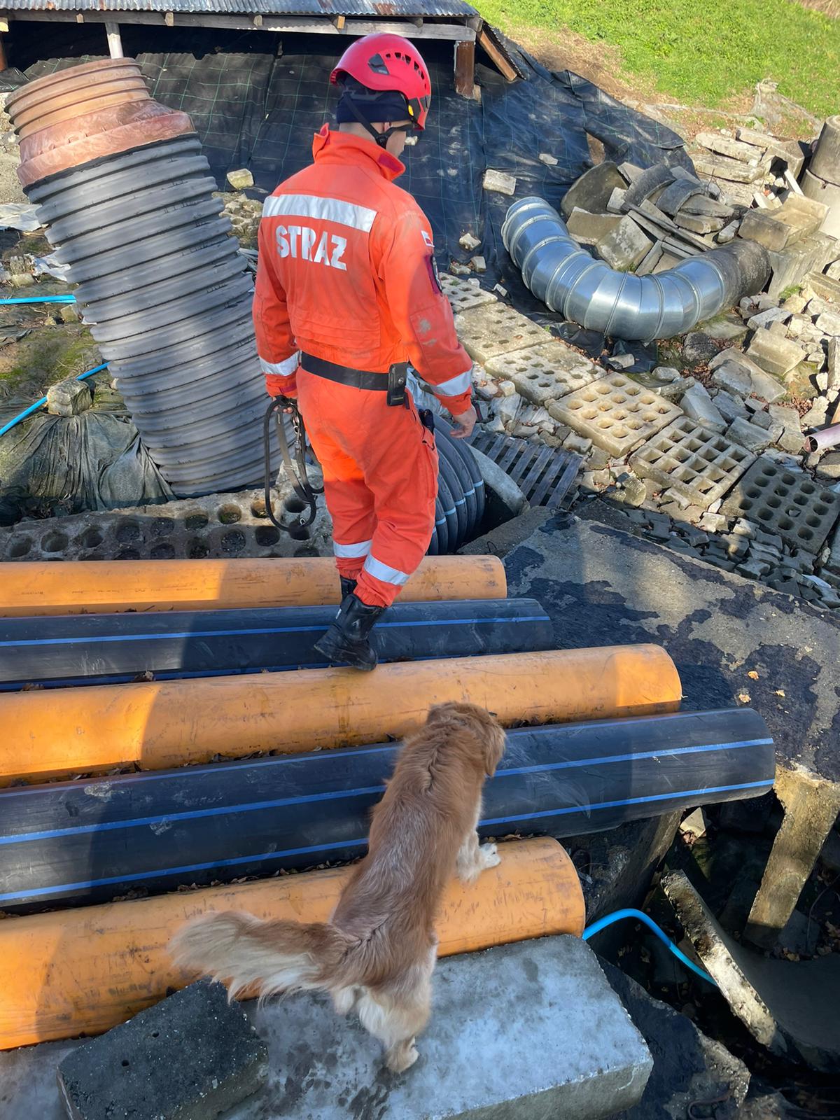 W listopadzie przewodnicy psów ratowniczych SGPR Nowy Sącz mieli okazje przeprowadzić zajęcia doskonalące z zakresu poszukiwania osób w zniszczonych obiektach budowlanych. Zajęcia odbyły się na nowopowstałym poligonie – gruzowisku w Kętach, który powstał z inicjatywy i pracy OSP Kęty.